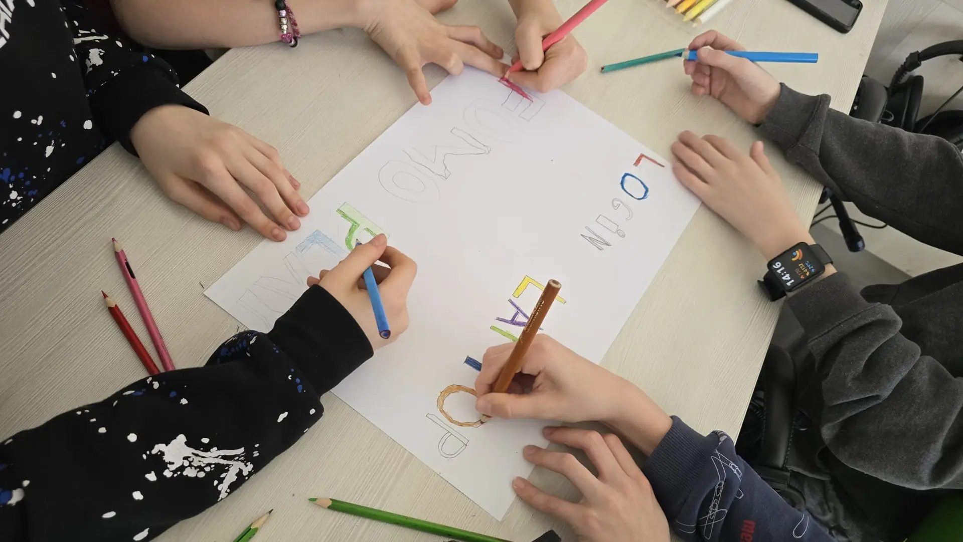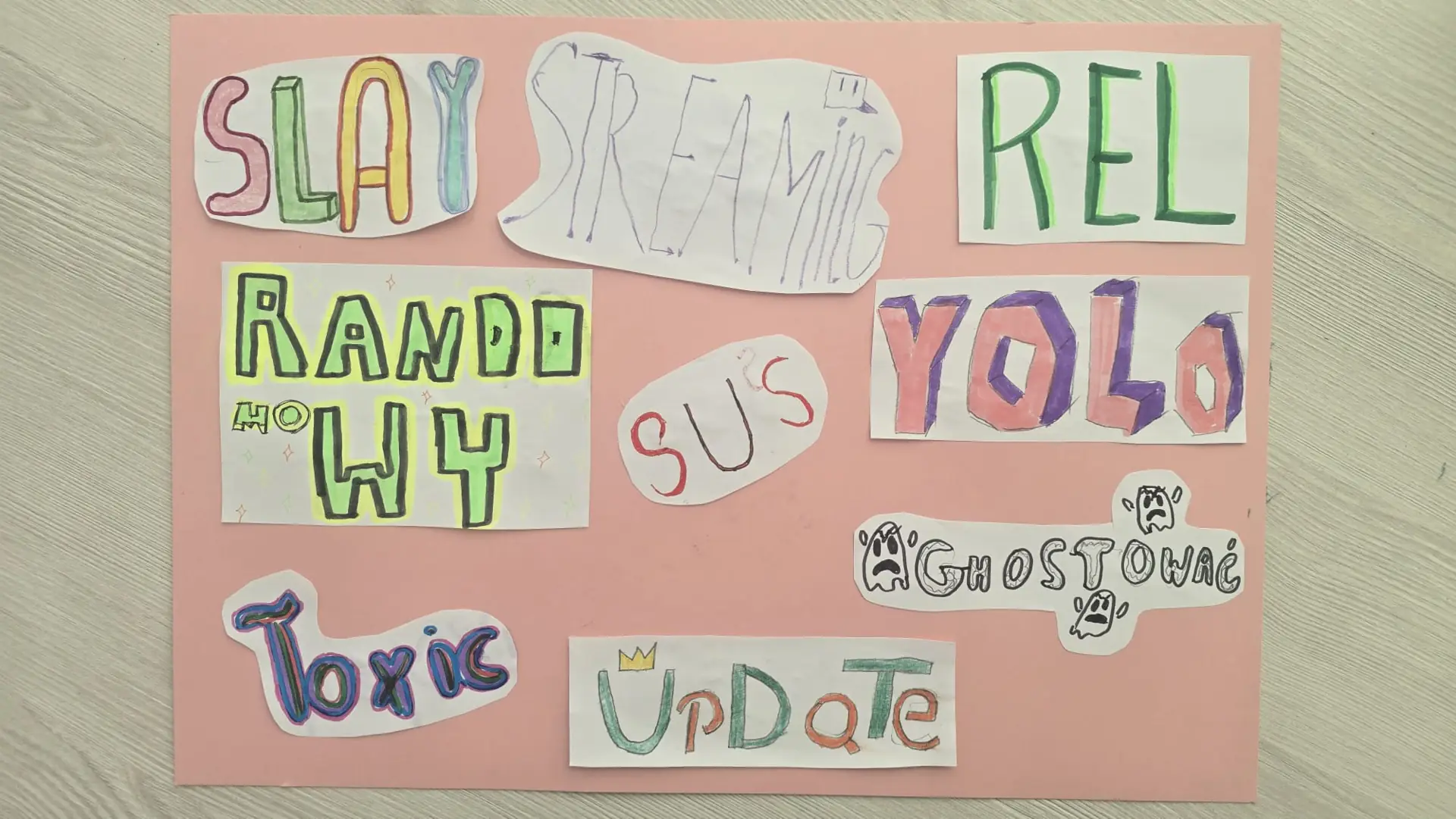 Na zakończenie lekcji klasy wykonały wspólne prace plastyczno-językowe, w których zaprezentowały wybrane anglicyzmy. Powstały kreatywne plakaty pełne kolorów i pomysłów. To była inspirująca lekcja pokazująca, że język żyje, zmienia się i łączy kultury, a każdy z nas – jak głosi hasło tegorocznych obchodów – ma swojego małego językowego bzika