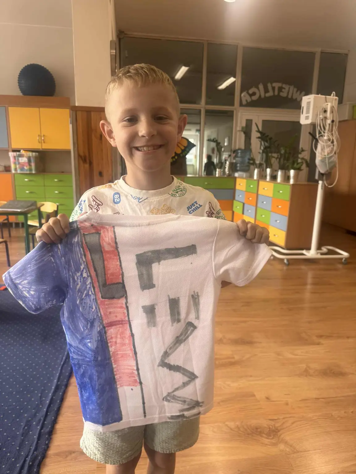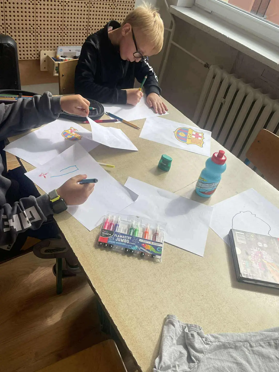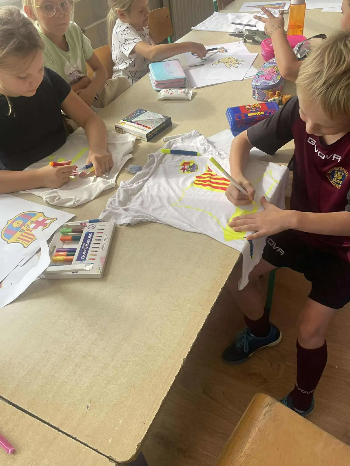 10 września obchodziliśmy Dzień Piłkarza. Z tej okazji w świetlicy zorganizowany został dzień na sportowo. Uczniowie przygotowali własne koszulki w barwach ulubionych klubów piłkarskich, które wcześniej samodzielnie pokolorowali. Na zakończenie świętowania odbył się mecz towarzyski na szkolnym boisku. Drużyny składające się ze świetliczaków zagrały pełne emocji spotkanie, a radość i sportowa atmosfera towarzyszyły wszystkim uczestnikom. To był dzień pełen ruchu, kreatywności i dobrej zabawy!