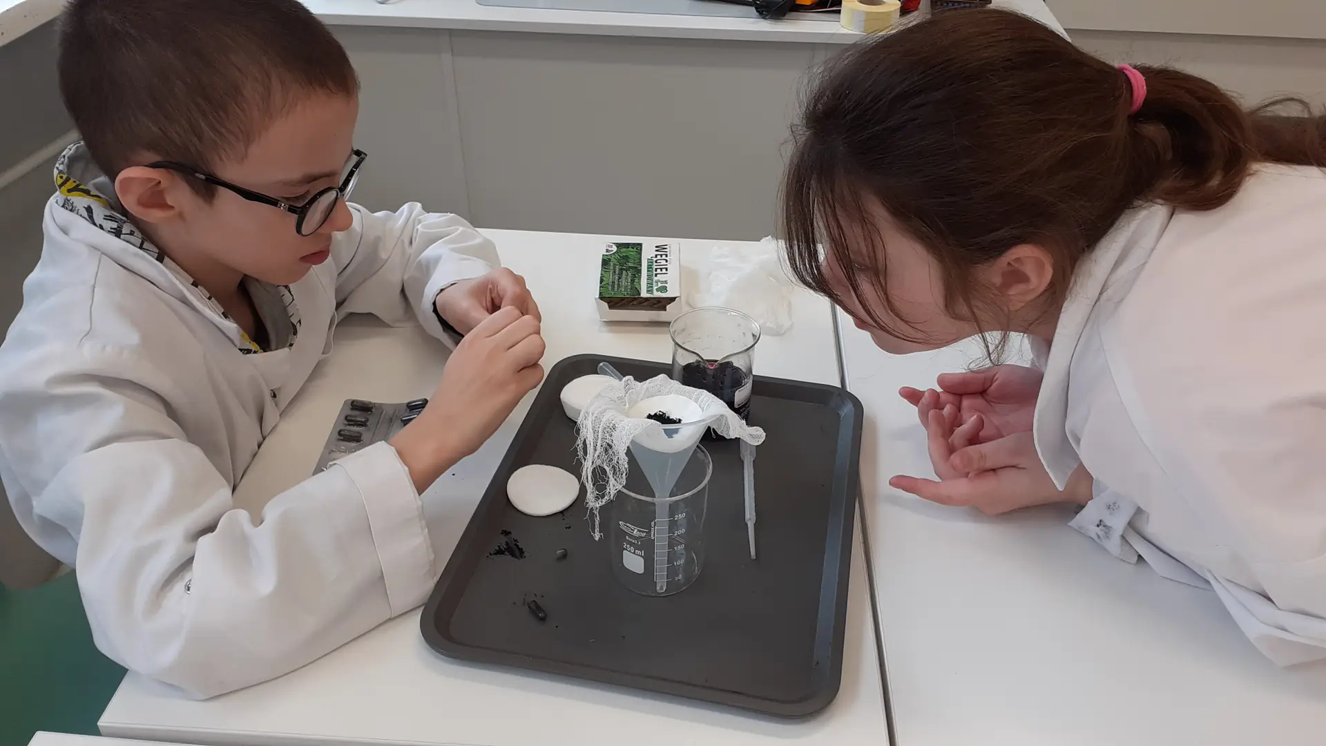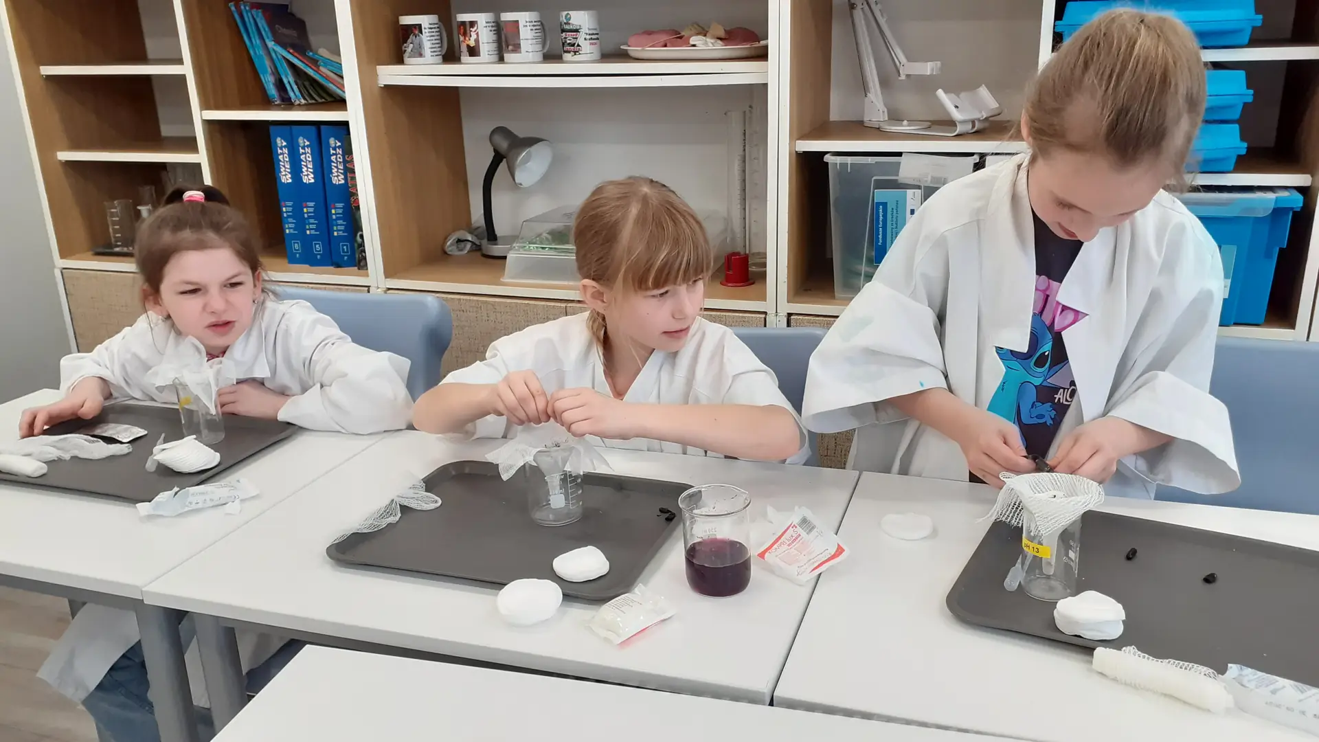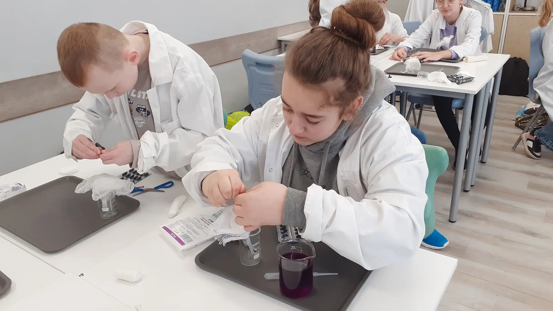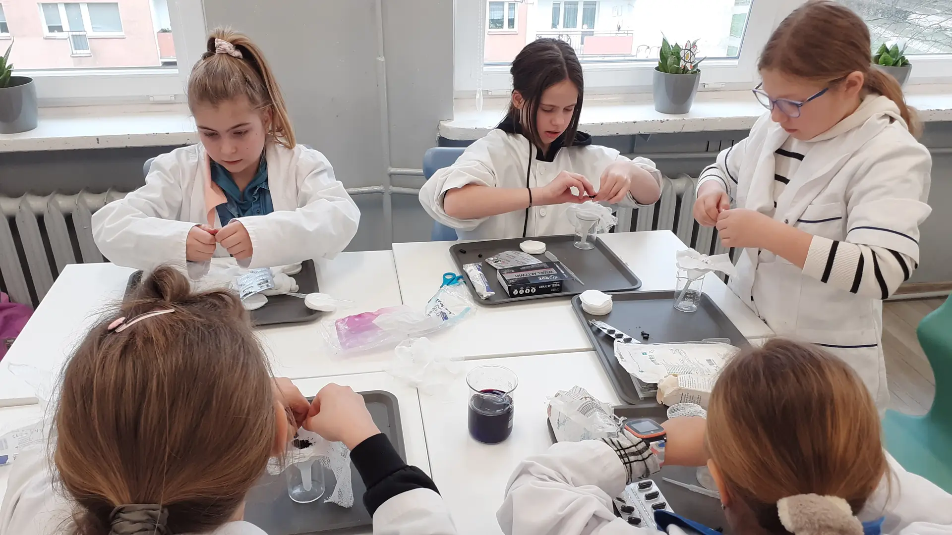 Zajęcia były nie tylko ciekawe i praktyczne, ale także pokazały, że nauka może pomagać w codziennym życiu – szczególnie, gdy chodzi o dbanie o naszą planetę. Uczniowie z ogromnym zaangażowaniem uczestniczyli w eksperymencie, pracowali zespołowo i świetnie się przy tym bawili.