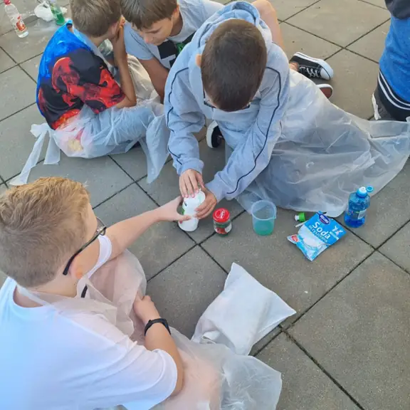 W ramach zajęć "Doświadczenia i eksperymenty" uczniowie przeprowadzili praktyczne doświadczenie — samodzielne wykonanie gaśnicy pianowej z prostych, bezpiecznych składników.