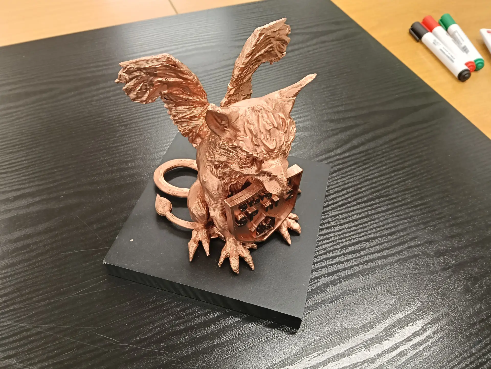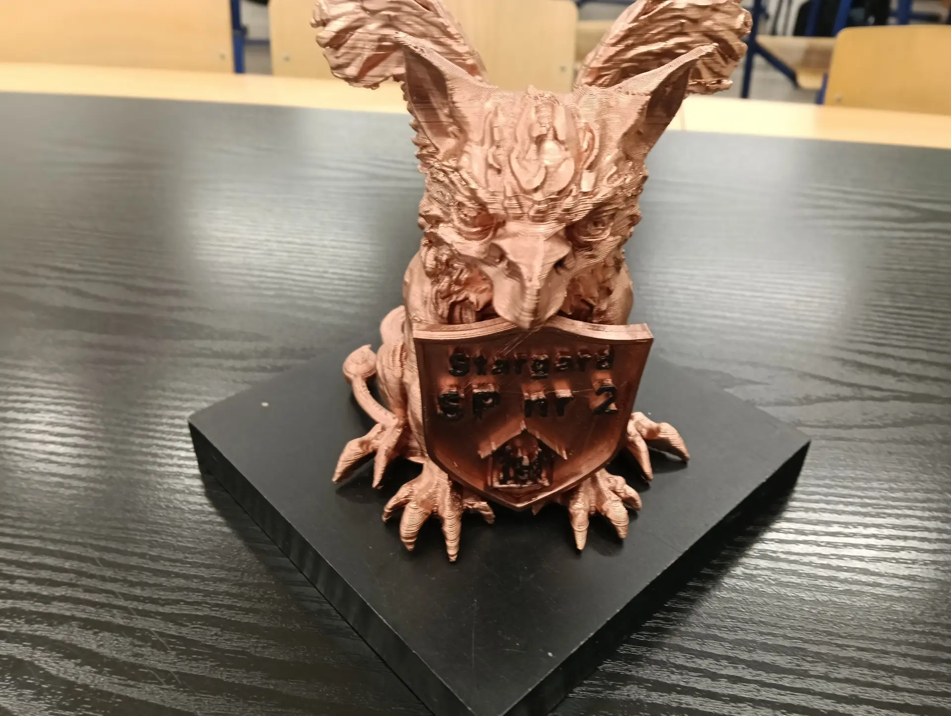 Podczas zajęć udało się nam wydrukować na drukarce 3D, 10 sztuk takich samych, małych szkolnych Gryfików (zaprojektowanych przez nas wcześniej), w ramach wspólnego projektu historyczno-informatycznego, realizowanego z p. Renatą Pruską-Nierodą. W ramach tego projektu udało się również zakończyć pomyślnie druk dużego, szkolnego Gryfika (zaprojektowanego przez nas wcześniej), pieszczotliwie zwanego przez uczniów i nauczycieli „Integruskiem”, który ostatecznie w przepiękny sposób został pomalowany przez p. Iloną Szymańską. Zostanie on wkrótce wystawiony w gablocie w holu szkoły, obok sekretariatu.