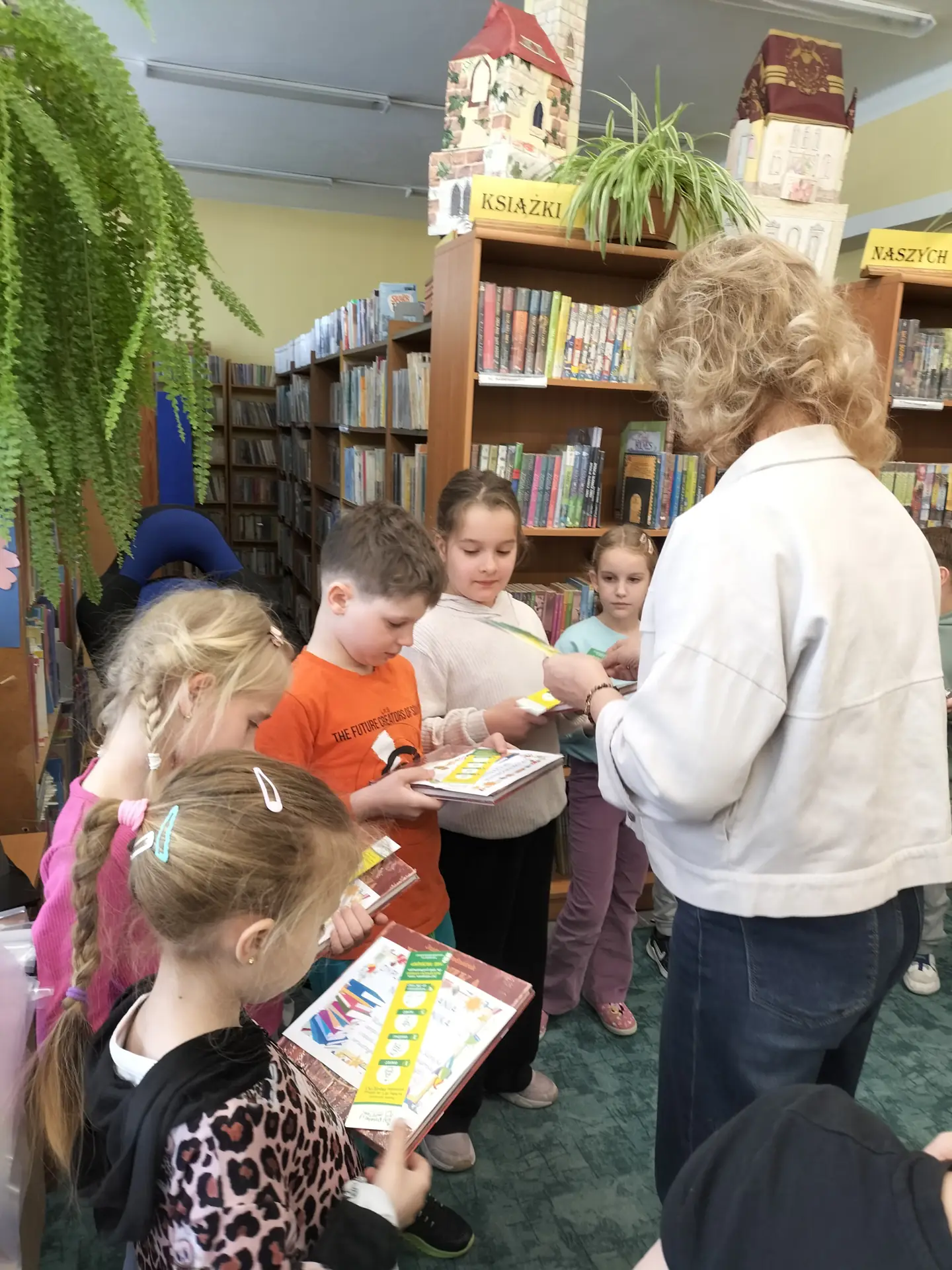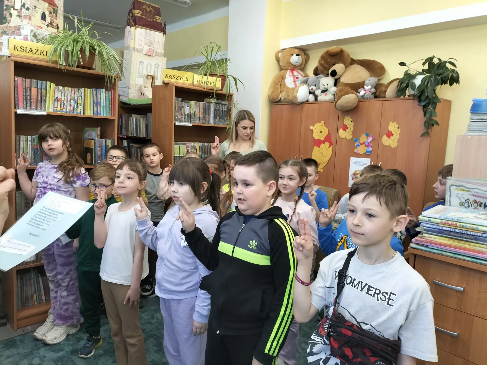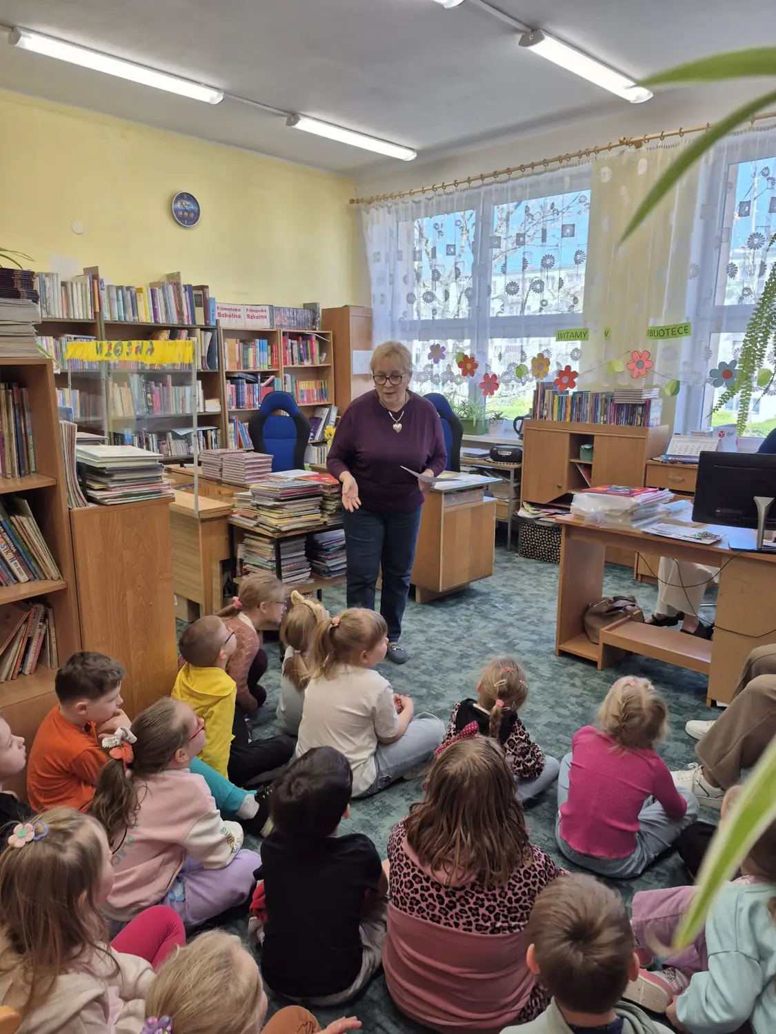 W ostatnim tygodniu kwietnia odbyły się spotkania bibliotekarek z pierwszoklasistami. Podczas tych spotkań odbyły się pasowania uczniów klas I na czytelników. Na początku pani bibliotekarka w przystępny sposób wyjaśniała dzieciom proces powstawania książki – od pomysłu autora, przez etapy jej tworzenia, aż po moment, gdy trafia do księgarni i biblioteki. Omawiała także zasady wypożyczania książek oraz właściwego zachowania w bibliotece. Uczniowie aktywnie uczestniczyli w przygotowanych zabawach. Brali udział w grze „Prawda czy Fałsz” oraz uzupełniali zakończenia wersów znanych wierszy. Po wysłuchaniu utworu „Skargi książki” odbywała się dyskusja na temat konieczności dbania o książki i ich poszanowania. Kulminacyjnym punktem spotkań było złożenie przez dzieci uroczystego przyrzeczenia, po którym następowało ich pasowanie na czytelników. Na pamiątkę uczniowie otrzymali dyplomy, książkę „Wnuczka antykwariusza” oraz broszurkę dla rodziców „Kochasz? Czytaj razem z dzieckiem!” w ramach ogólnopolskiego projektu „Mała książka – wielki człowiek”. Na zakończenie spotkań dzieci otrzymały również zakładki do książek.