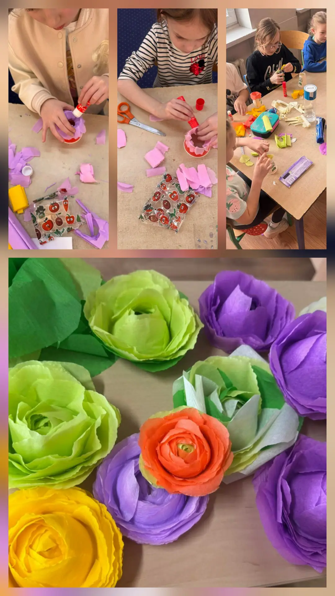 Ostatnie tygodnie upłynęły nam bardzo twórczo - dzieci z ogromnym zaangażowaniem przygotowywały kolorowe kwiaty z papieru i bibuły, tworzyły prace
