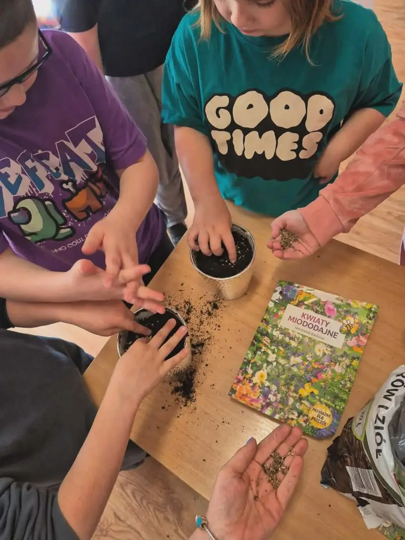 plastyczne inspirowane wiosną (bociany, przebiśniegi), a także wysiewały nasiona kwiatów miododajnych.