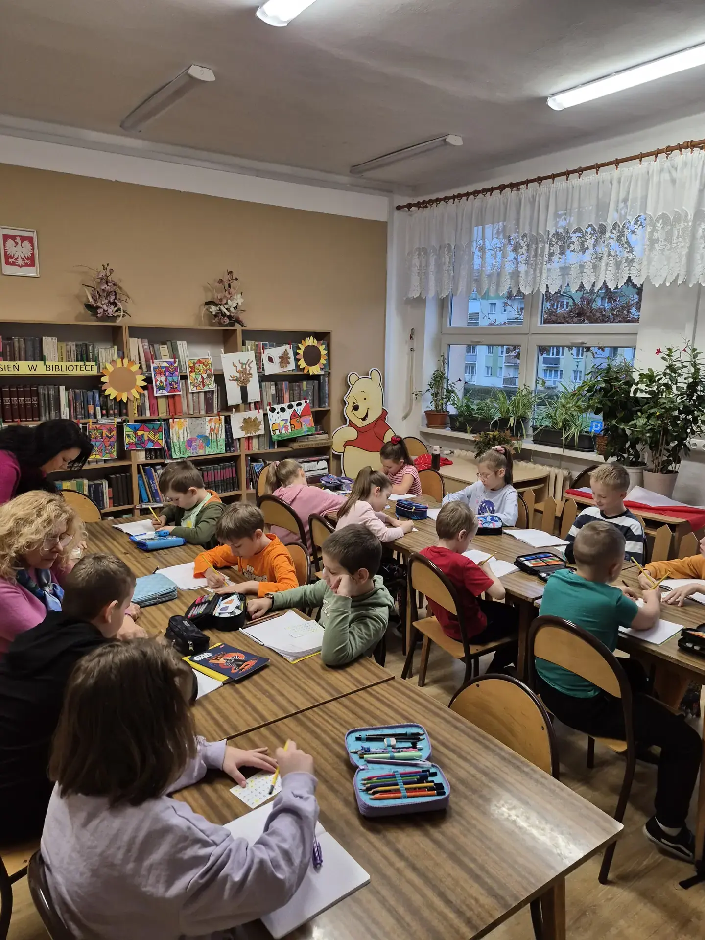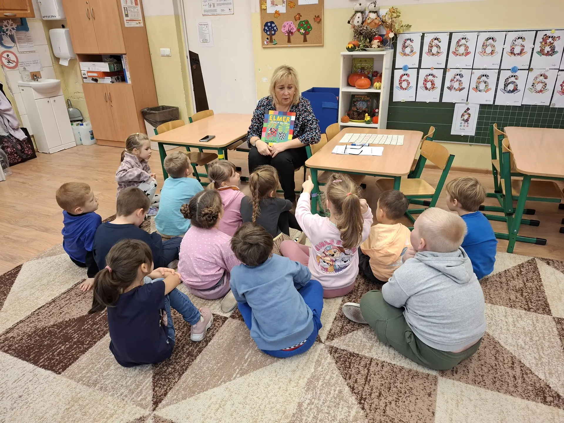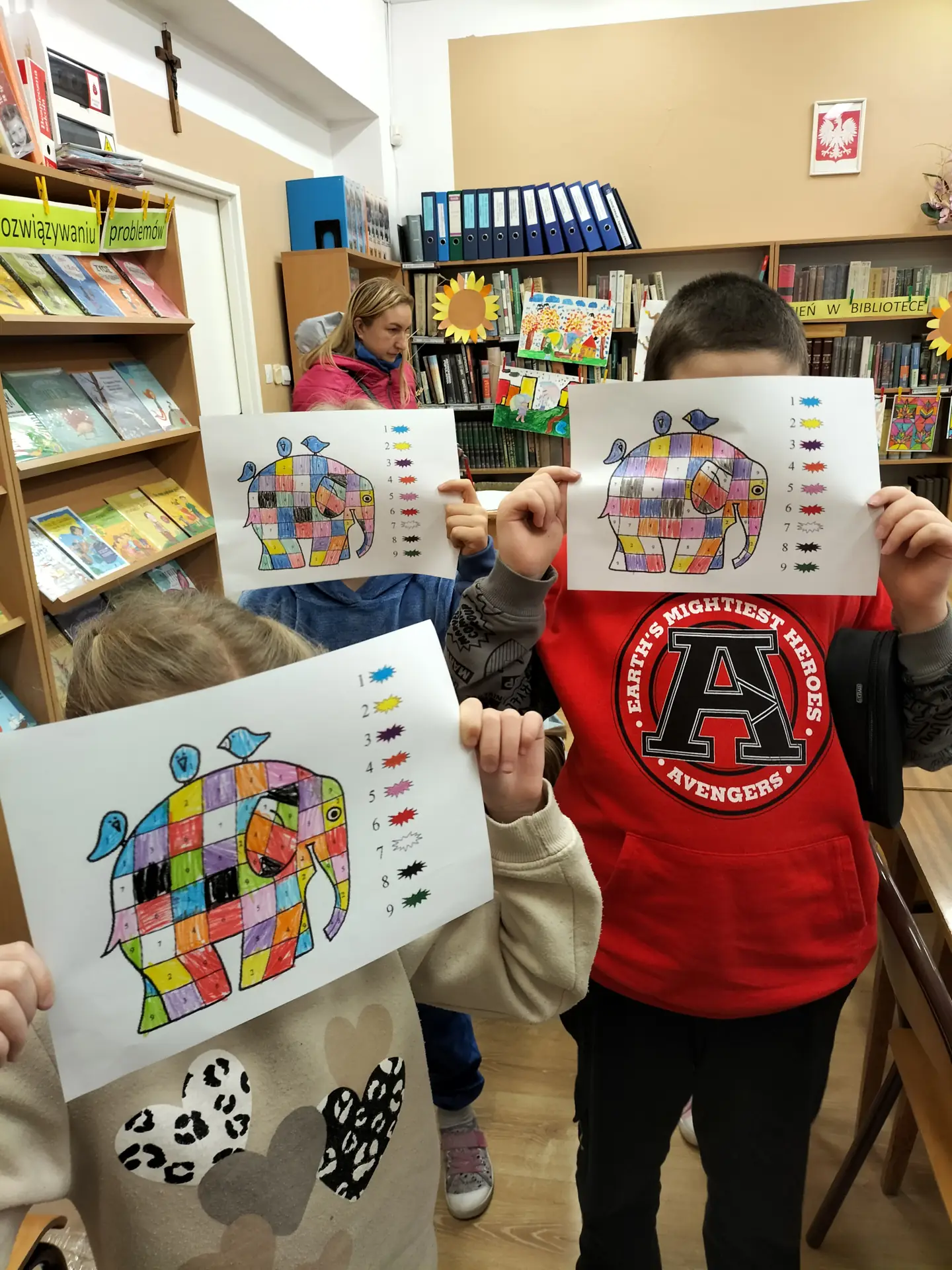 W ramach obchodów Ogólnopolskiego Dnia Biblioterapii w naszej bibliotece w dniach 18-21 listopada odbyły się zajęcia biblioterapeutyczne dla uczniów kl. 0-II: „Elmer – akceptacja inności”. Podczas zajęć panie bibliotekarki rozmawiały z dziećmi o tolerancji. Dzieci szukały odpowiedzi na pytania: Co to jest tolerancja? Czy wszyscy ludzie są tacy sami? Czym się różnimy między sobą? Następnie wysłuchały opowiadania „Elmer – słoń w kratkę” autorstwa Davida McKee. Lektura stała się punktem wyjścia do rozmowy o inności, wyjątkowości oraz akceptacji siebie i innych. Po przeczytaniu opowiadania panie bibliotekarki zachęcały uczniów do dyskusji na temat przeczytanej historii i obejrzanych ilustracji. Dzieci rozmawiały więc o tym, czym Elmer różnił się od pozostałych słoni, jak się czuł z powodu swojej odmienności, dlaczego w pewnym momencie chciał wyglądać jak wszyscy oraz co sprawiło, że zrozumiał wartość swojej wyjątkowości. Panie bibliotekarki omawiały z dziećmi ich odpowiedzi. Tłumaczyły, że inności nie należy wyśmiewać. Wszyscy ludzie zasługują na szacunek i akceptację. W części twórczej część dzieci kolorowało słonia Elmera według podanego kodu kolorów, druga część kolorowała słonie według własnych pomysłów, wybierając kolory, które najlepiej podkreślały ich osobowość. Ćwiczenie miało na celu wzmacnianie poczucia własnej wartości, uświadomienie, że każdy z nas jest jedyny w swoim rodzaju oraz akceptacji różnorodności w grupie.