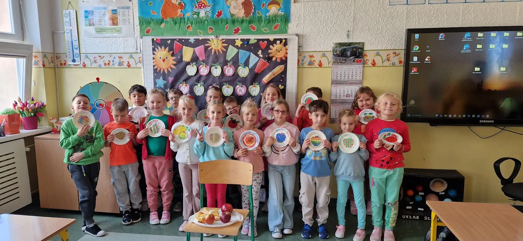 Dodatkowo w klasach I-III uczniowie pod kierunkiem wychowawczyń wykonywali piękne prace plastyczne, zdrowe talerze, ilustrujące jabłka, było również jabłko w plenerze. Nauczyciele oraz uczniowie włączyli się w akcję, której celem było zachęcanie uczniów do spożywania jabłek, jako źródła witamin, oraz wyrabianie nawyku zdrowego odżywiania. To był pyszny dzień dla wszystkich.