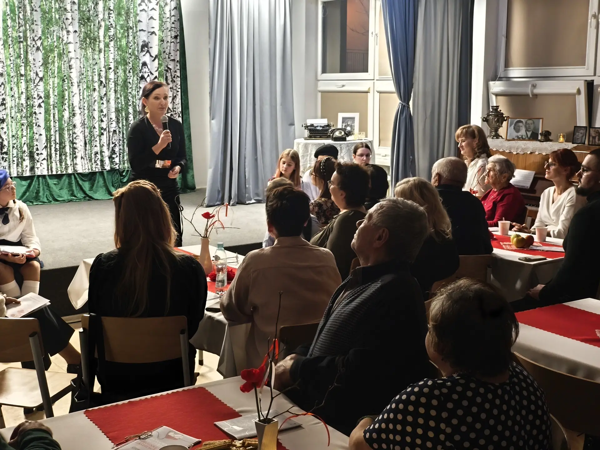 Czwartkowy wieczór w naszej szkole pachniał makami, brzmiał dźwiękiem pianina, akordeonu i szeptem brzozowych gałązek. W blasku świec, pośród białych obrusów i ciepłych świateł, zabrzmiały słowa i melodie, które niosły w sobie pamięć – o tych, którzy śpiewali, gdy wolność była marzeniem.