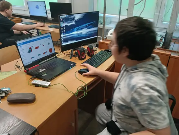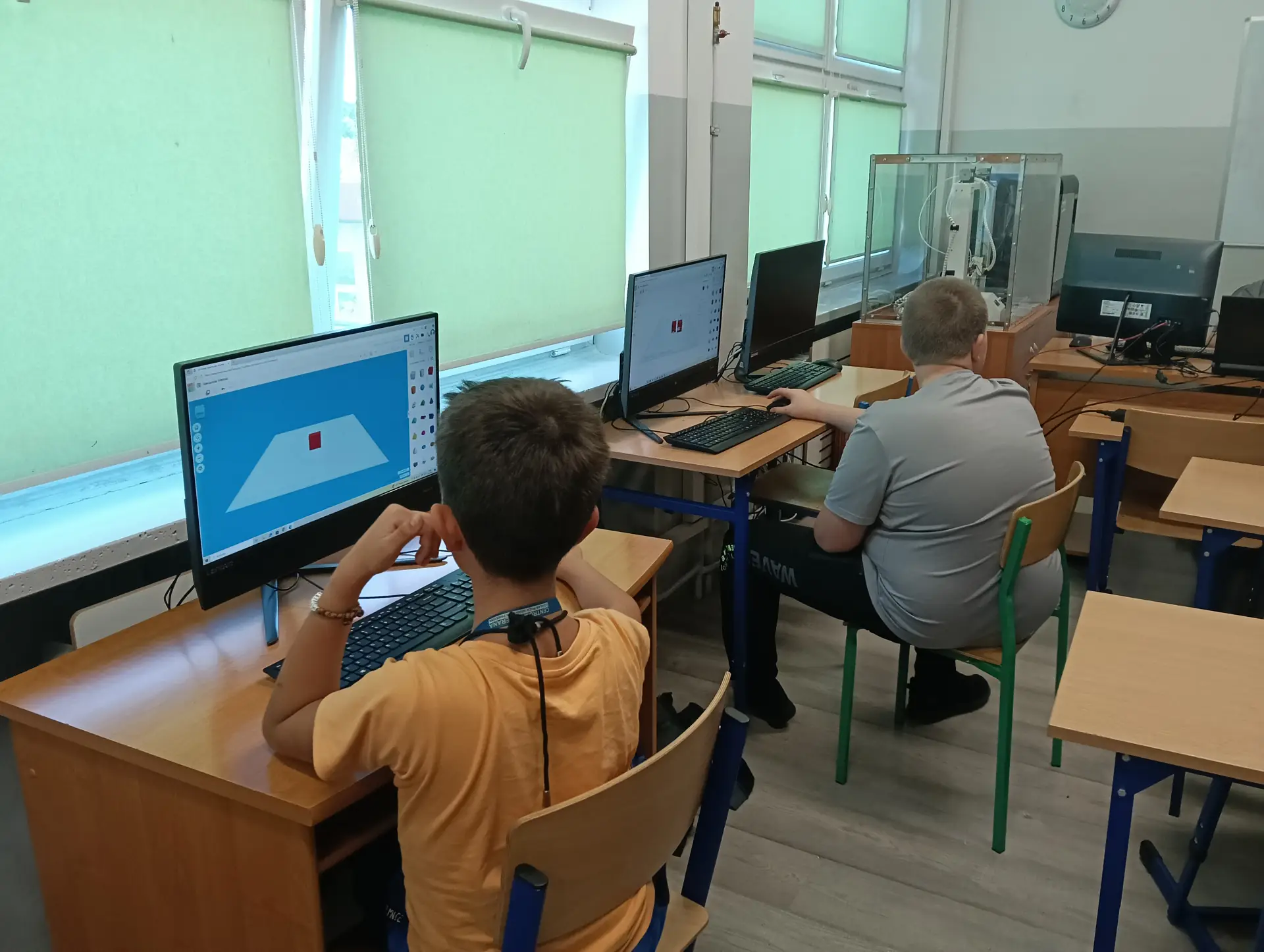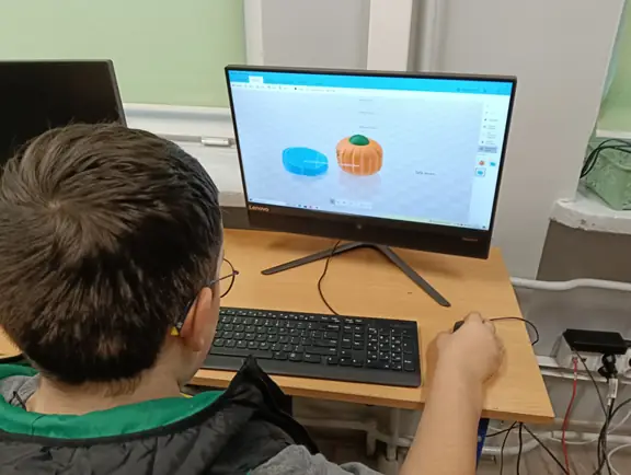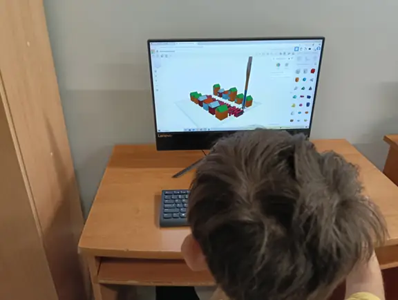 Na zajęciach uczniowie mieli również możliwość wykonywania i drukowania własnych modeli 3D, np. modułowego robota, zbudowanego z łączonych części.