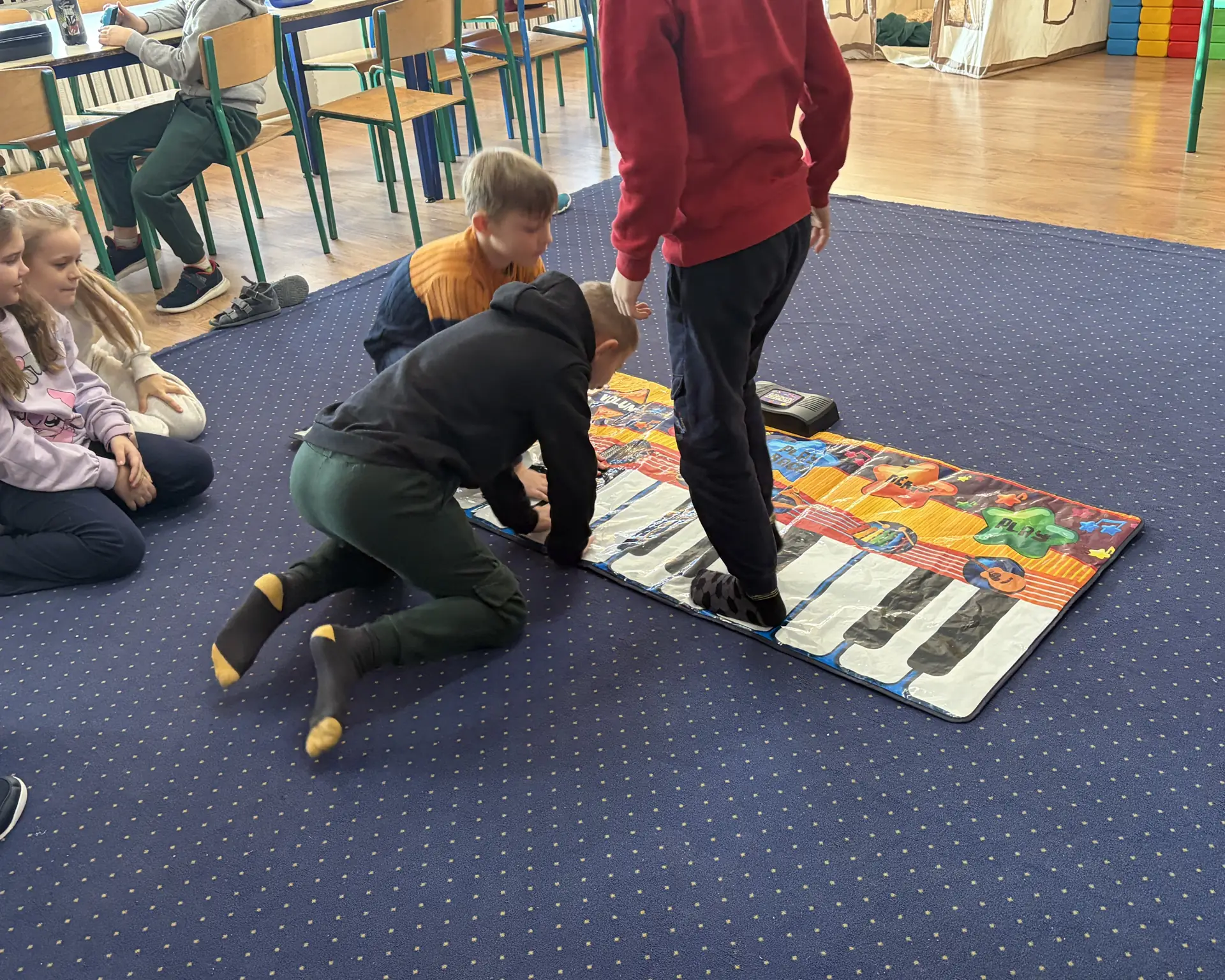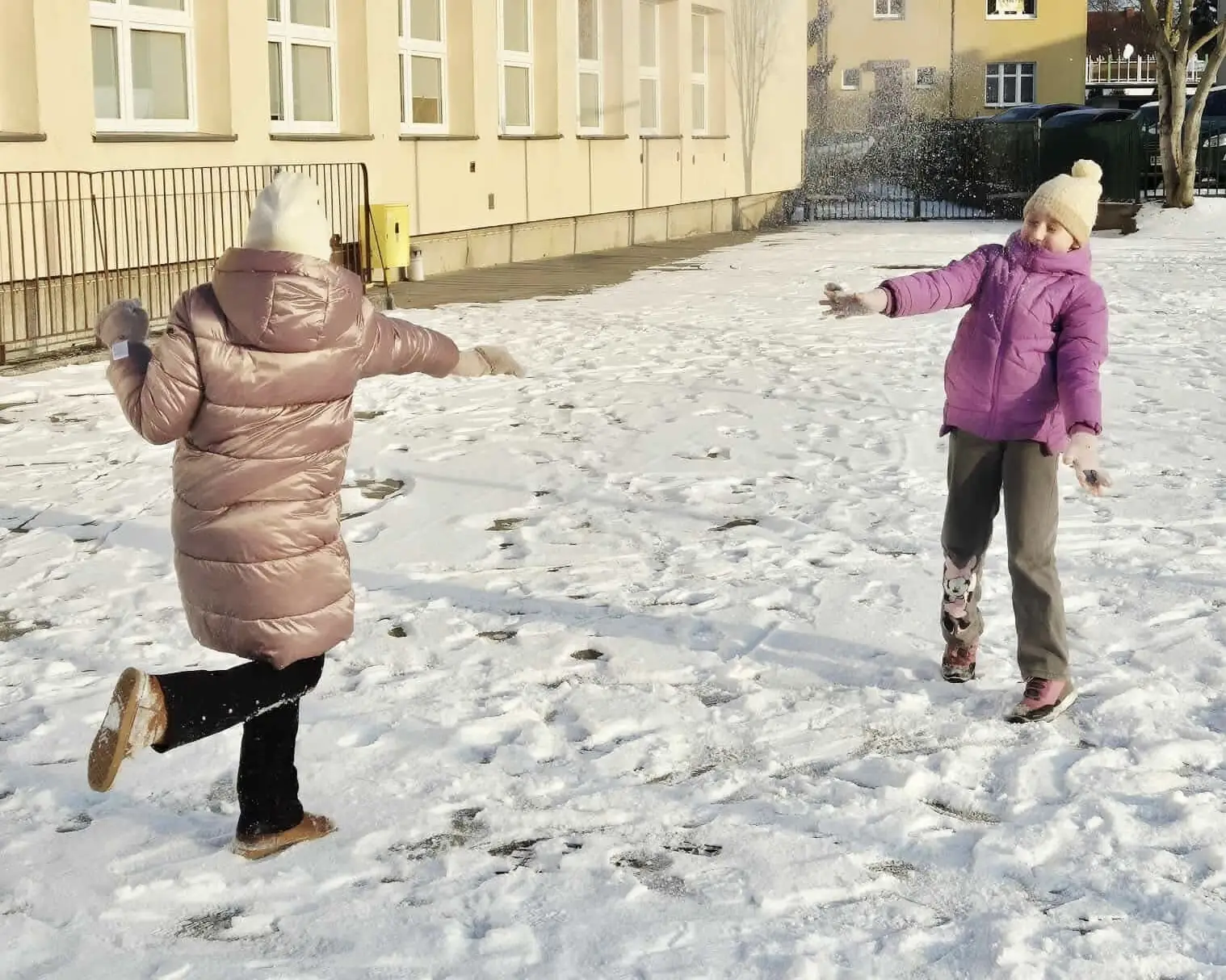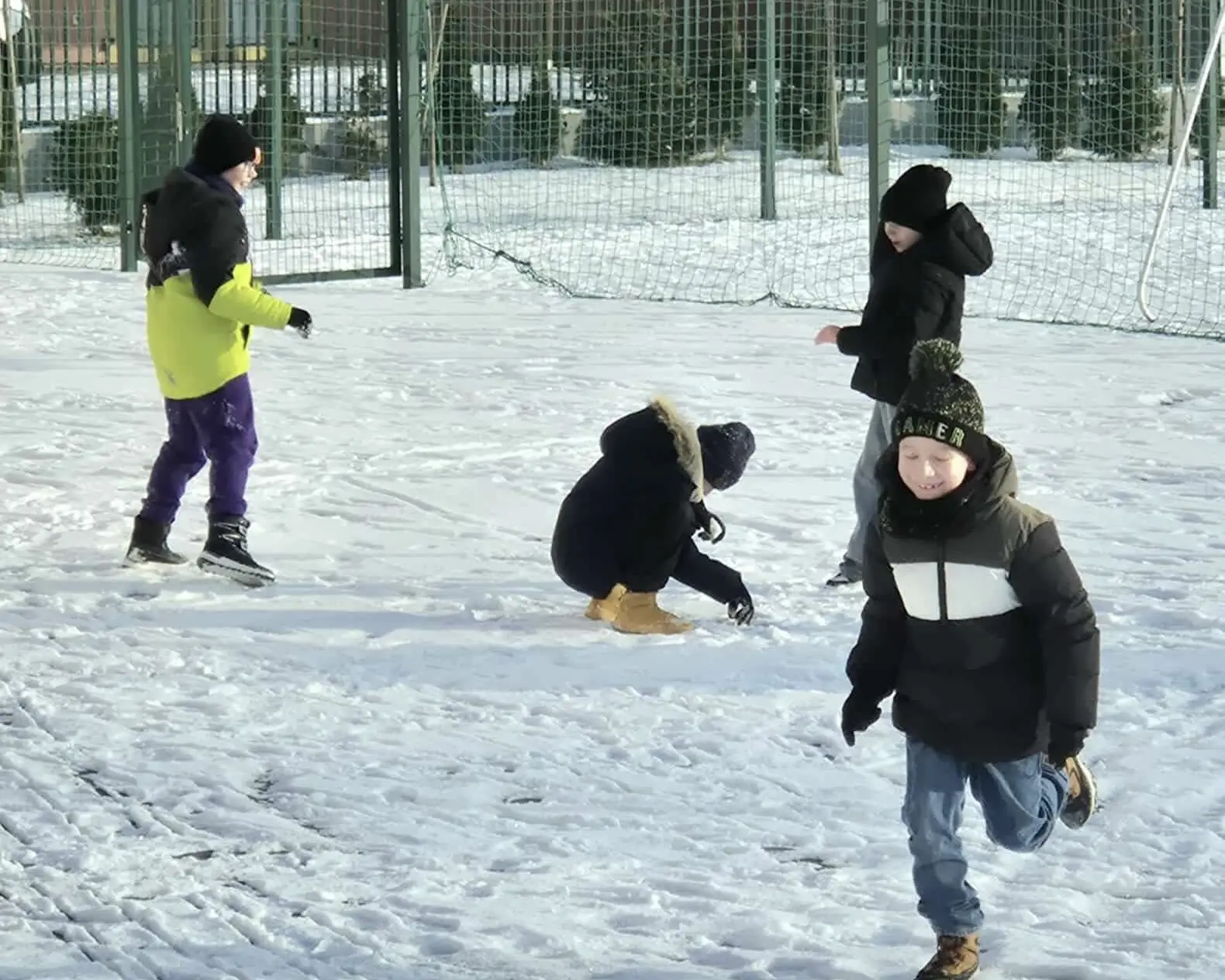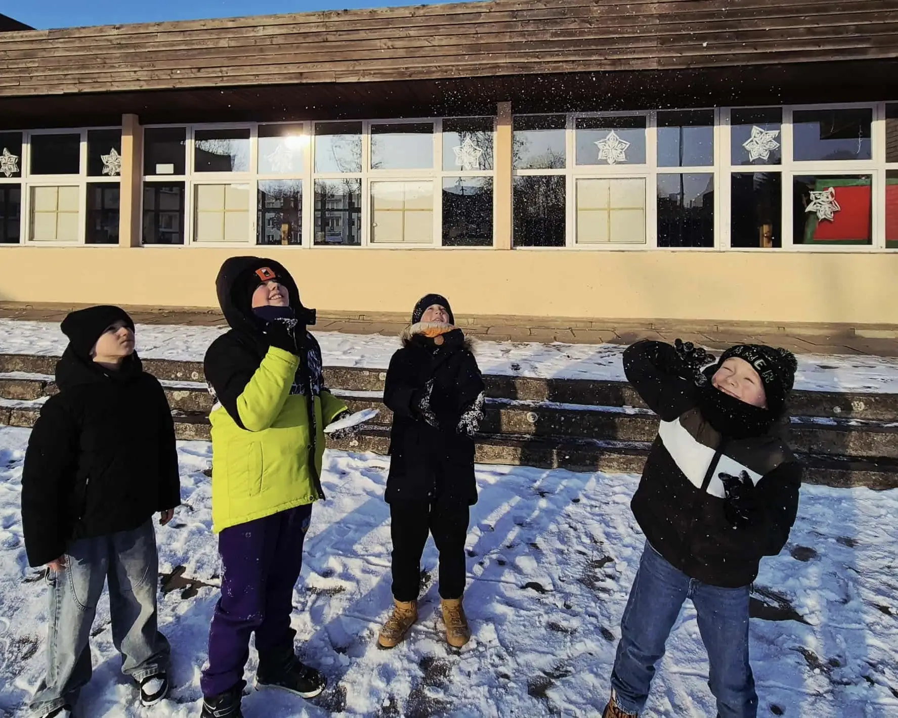 Korzystając z pięknej pogody, uczniowie bawili się również na świeżym powietrzu. Zabawy na śniegu, gry ruchowe oraz twórcze rysowanie na białym puchu dostarczyły im mnóstwo uśmiechu i pozytywnej energii. Był to czas pełen śmiechu, ruchu i dziecięcej wyobraźni.