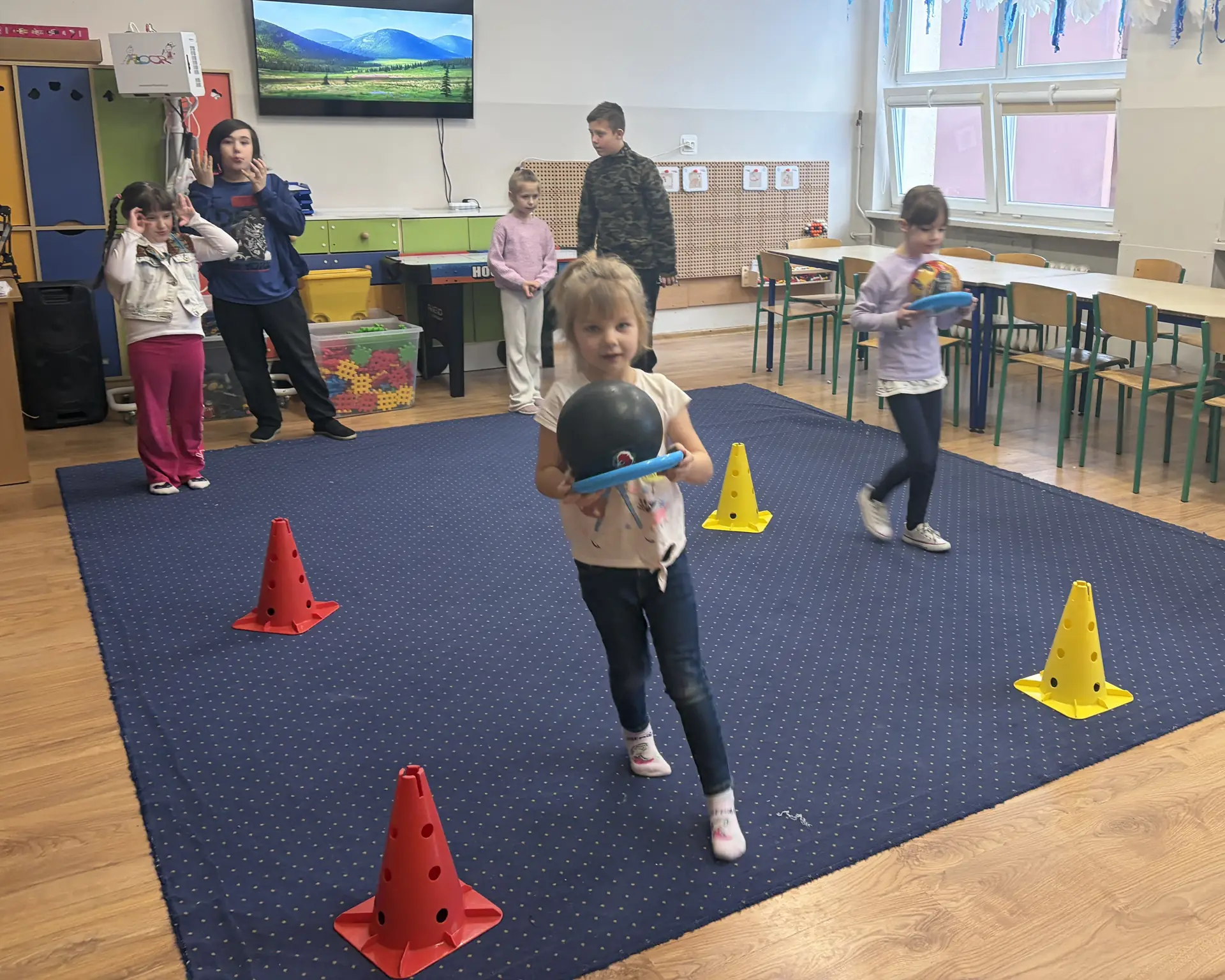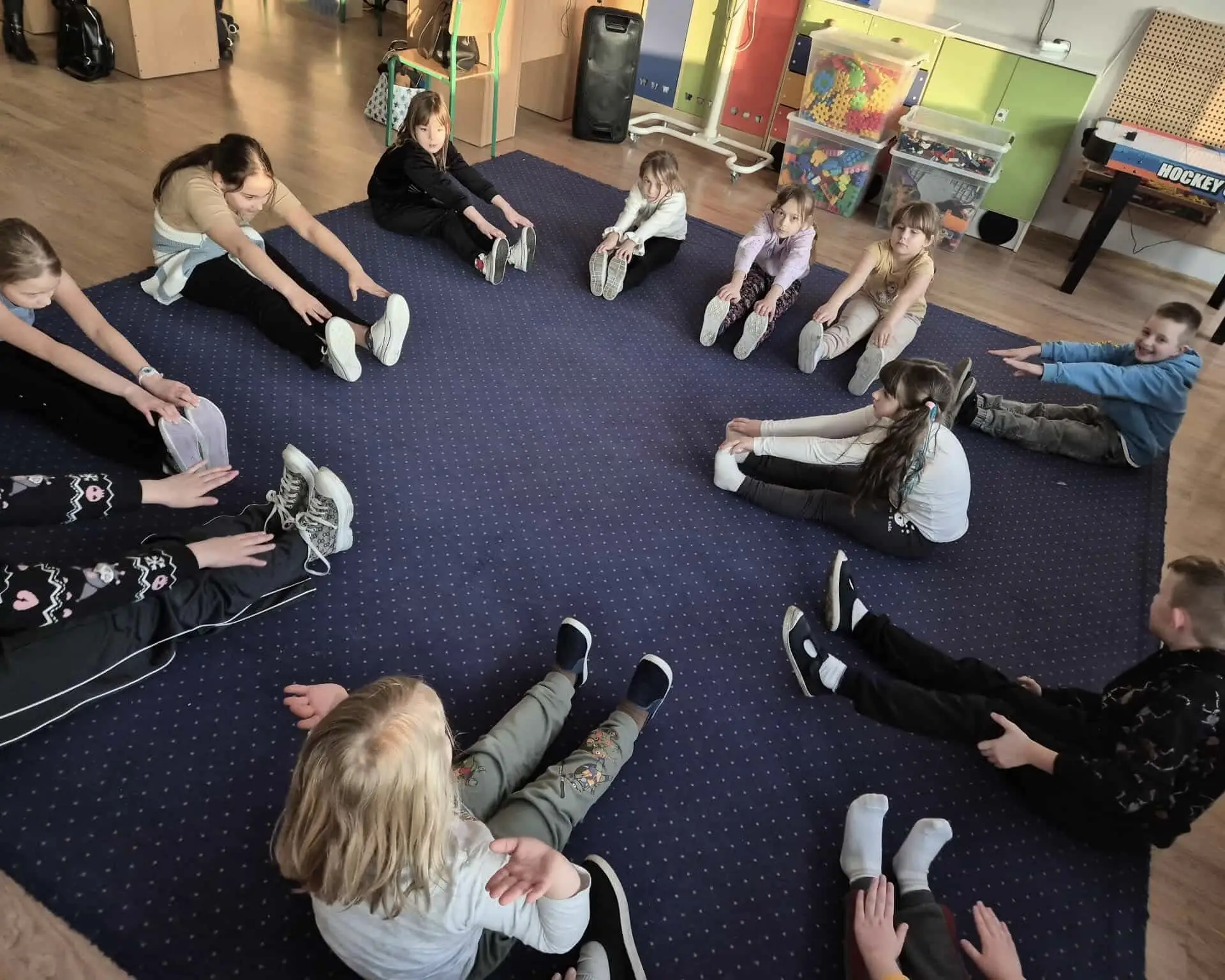 Czwartek upłynął w naszej świetlicy pod znakiem radości, ruchu i zimowej zabawy. Dzieci rozpoczęły dzień od ćwiczeń i wspólnej rozgrzewki, rozwijając sprawność, koordynację oraz ucząc się współpracy w przyjaznej atmosferze.
