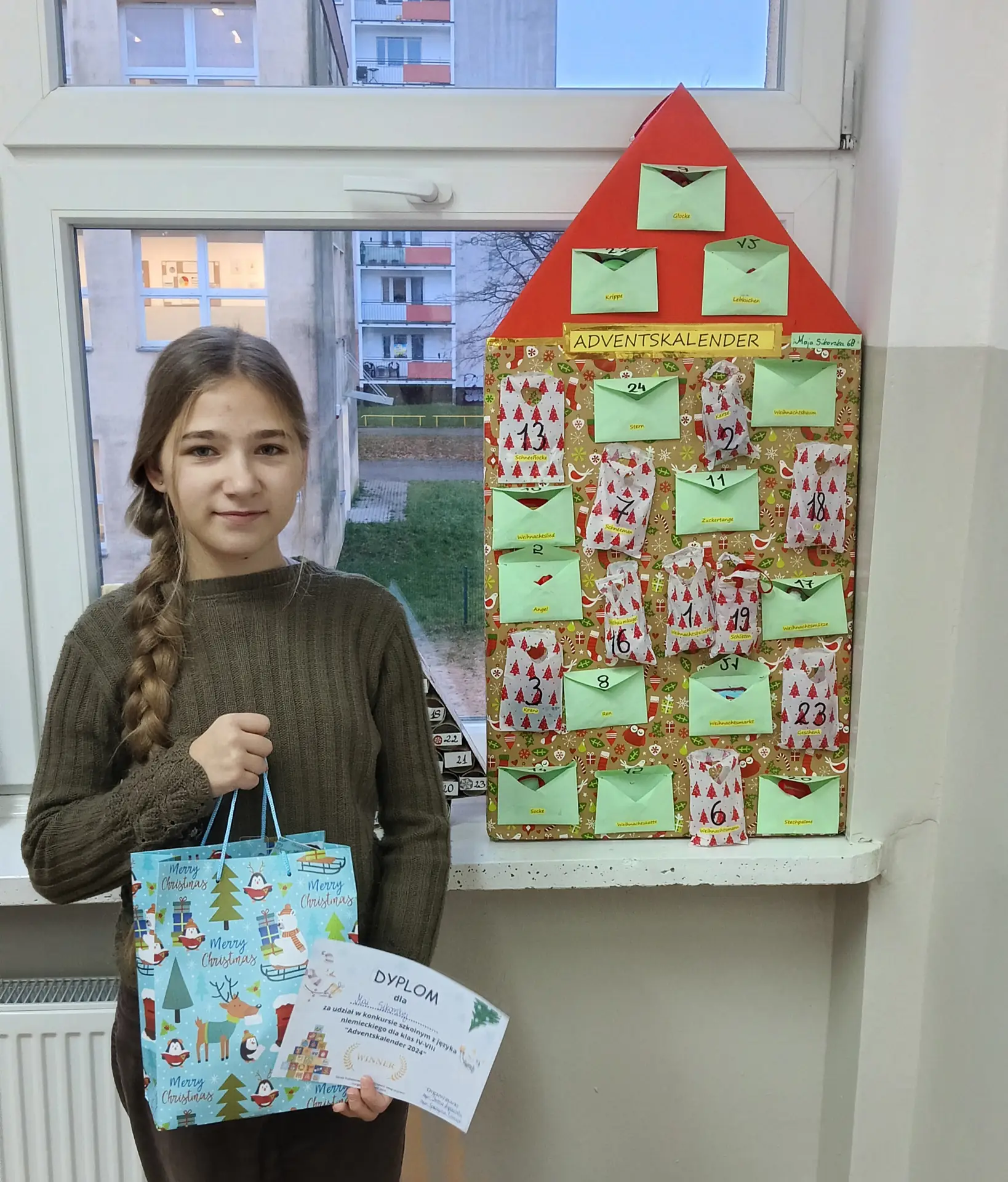 Kalendarz adwentowy to wyjątkowy sposób na odliczanie dni do świąt Bożego Narodzenia. Jego historia sięga XIX-wiecznych Niemiec, gdzie powstał jako symboliczne przygotowanie do świąt. Dziś kojarzy się nam głównie z drobnymi upominkami ukrytymi za otwieranymi okienkami. Takie kalendarze przygotowali nasi uczniowie na konkurs z języka niemieckiego, gdzie w okienkach pojawiły się zwroty i słówka związane ze świętami Bożego Narodzenia. Prace okazały się tak piękne i wyjątkowe, że wszyscy zostali zwycięzcami!