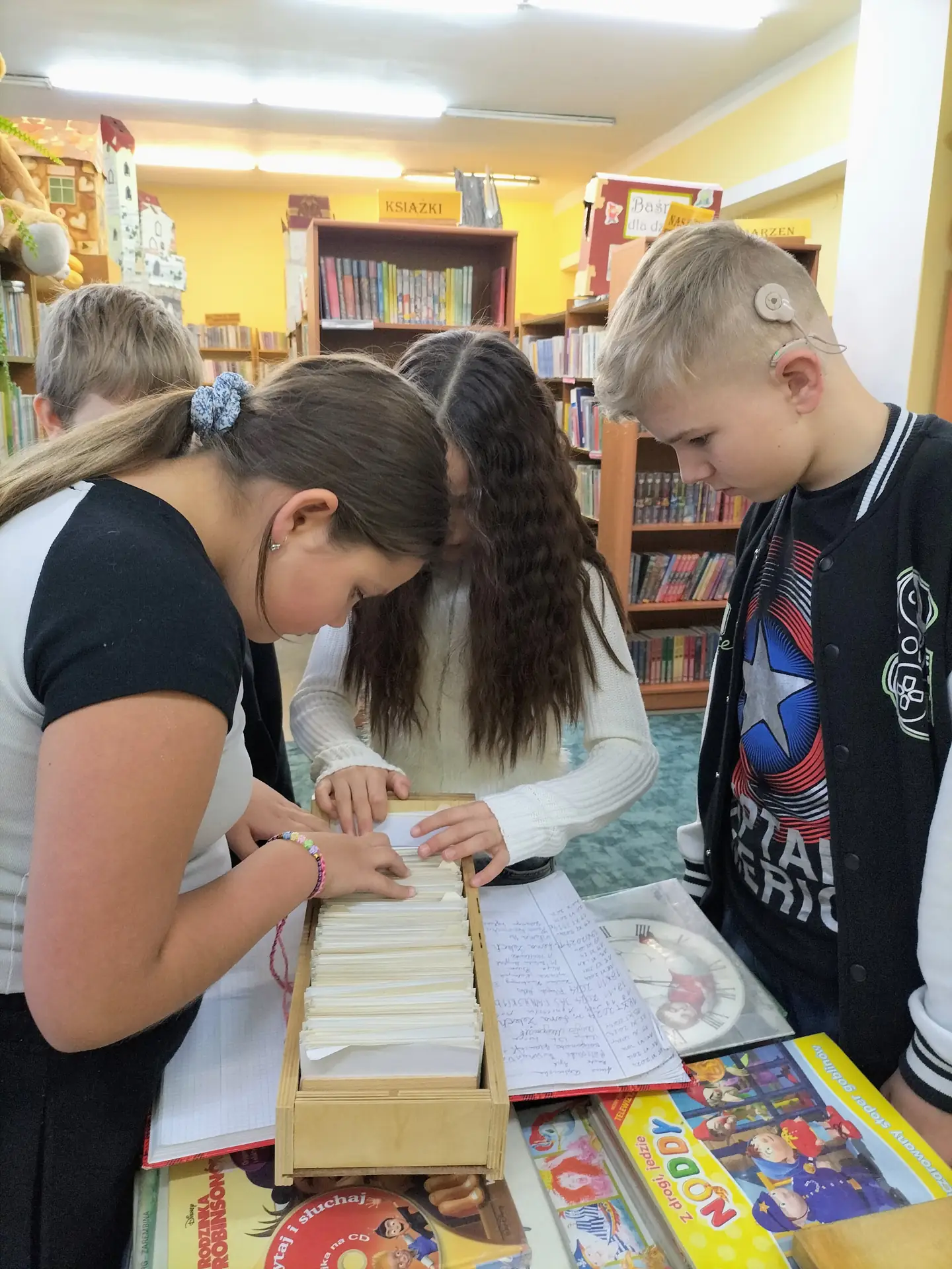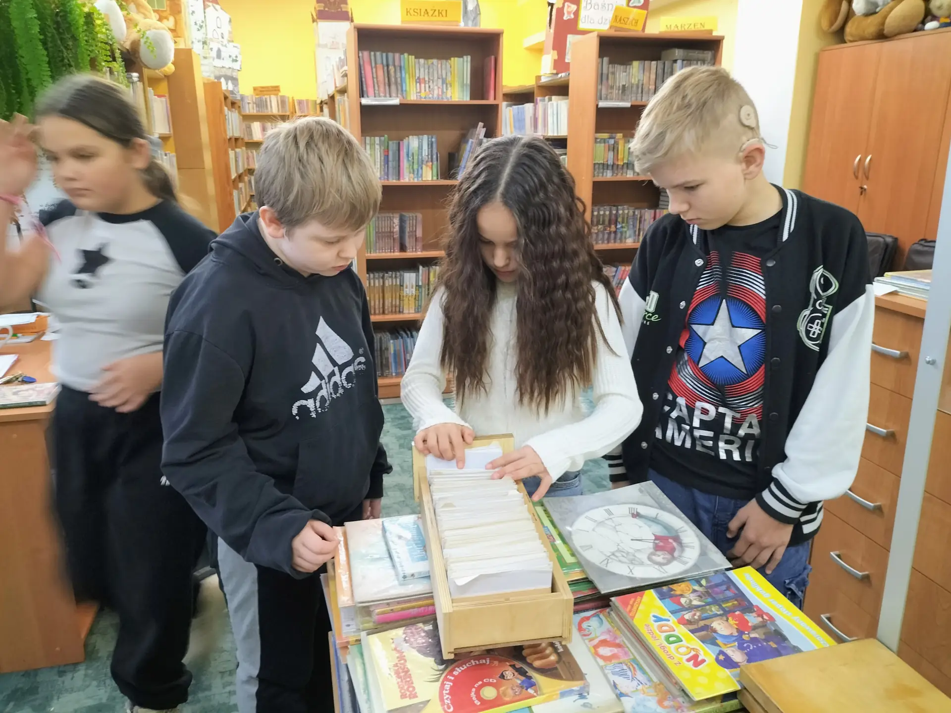 skrzynkowe znajdujące się w naszej bibliotece: alfabetyczne, tytułowe oraz rzeczowe. Podczas zajęć praktycznych pracując w małych grupach wspaniale poradzili sobie z wyszukiwaniem wybranych pozycji książkowych wśród bibliotecznego księgozbioru oraz w katalogach: alfabetycznym i tytułowym. Gratulacje!