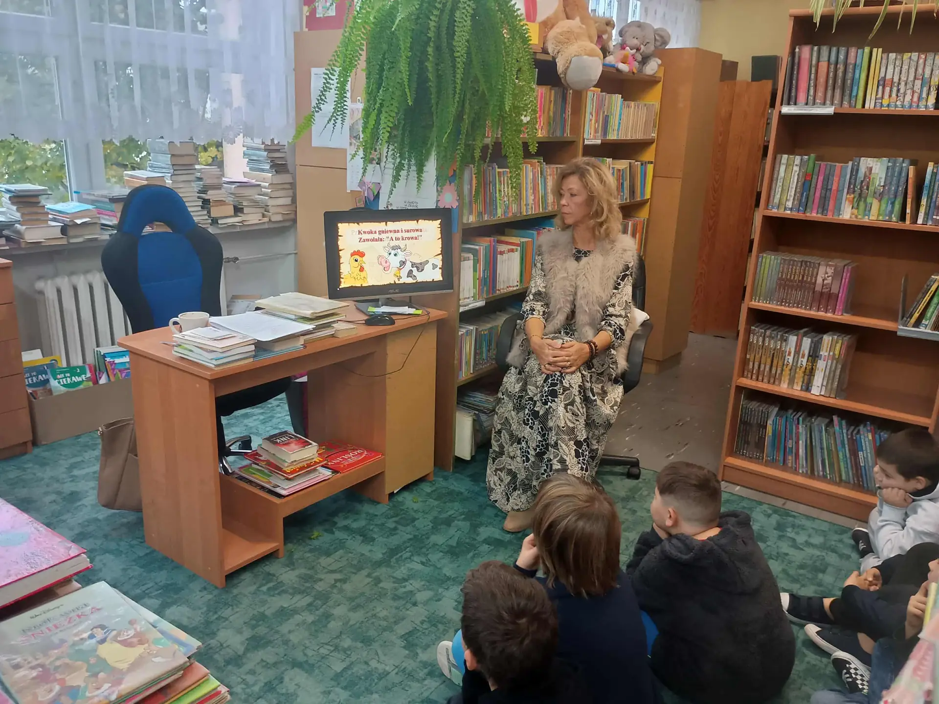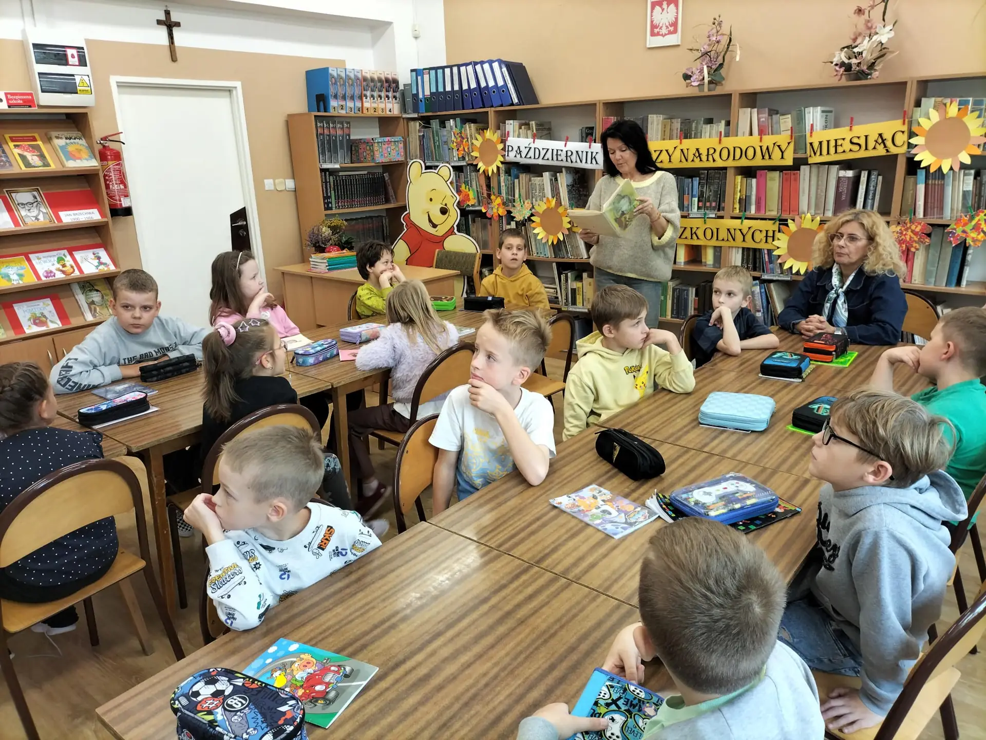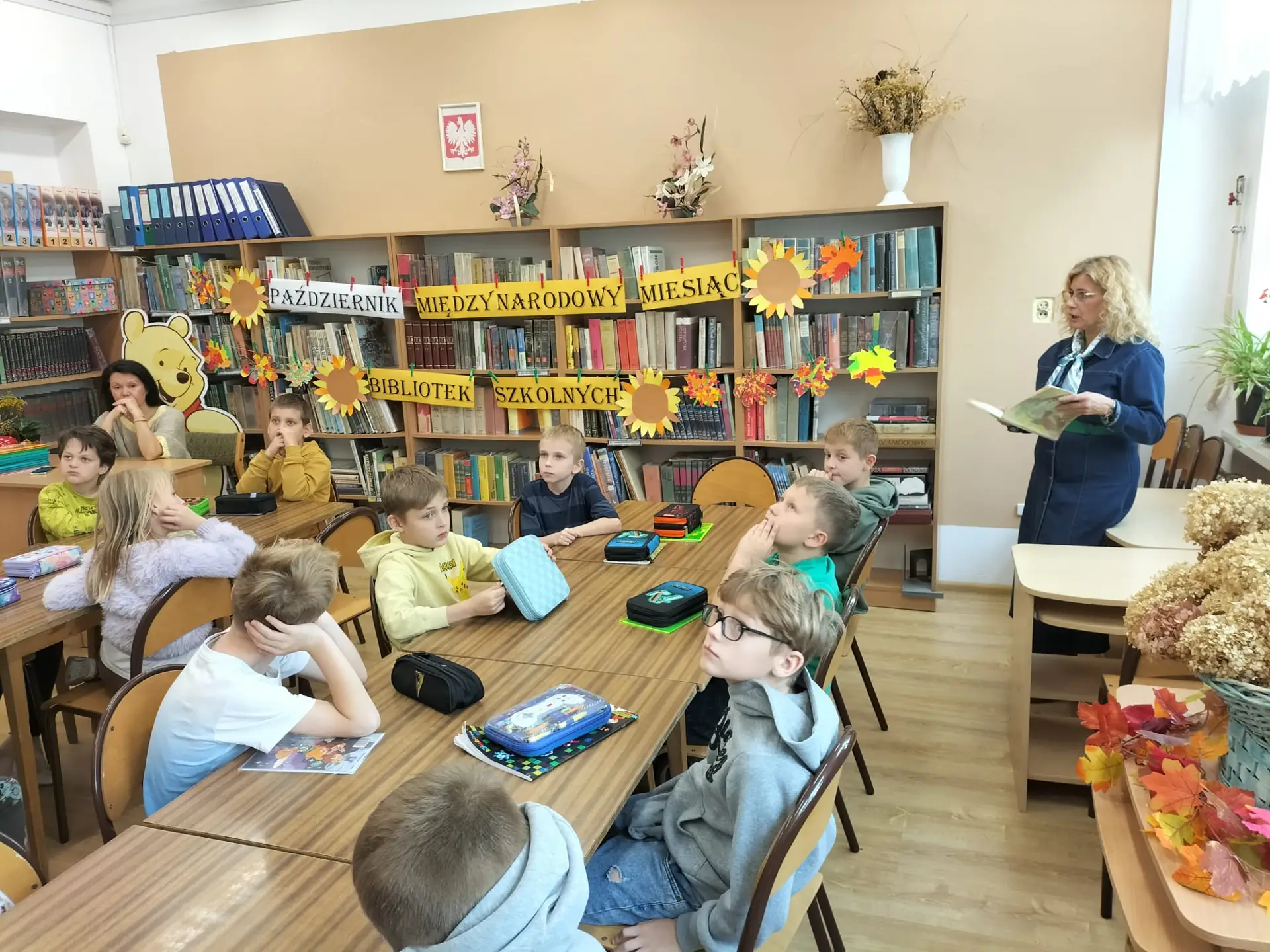 W ramach obchodów Międzynarodowego Miesiąca Bibliotek Szkolnych w dniach 21 i 22 października 2025 r. odbyły się spotkania szkolnych bibliotekarek z drugoklasistami. Uczniowie kl. IIa, IIb oraz IIc wzięli udział w zajęciach „Poznajemy wiersze Jana Brzechwy”, których celem było przybliżenie uczniom postaci i twórczości Jana Brzechwy, rozwijanie zainteresowań czytelniczych poprzez poznawanie poezji przez dzieci oraz przygotowanie uczniów do udziału w szkolnym konkursie czytelniczym. Podczas zajęć zaprezentowane zostały dzieciom książki autora dostępne w naszej bibliotece. Uczniowie wysłuchali czytanych przez p. bibliotekarki, aktora oraz wychowawczynie wierszy Jana Brzechwy z tomiku „Brzechwa dzieciom”: „Leń”, „Samochwała”, „Skarżypyta”, „Tydzień”, „Mucha”, „Na straganie”, „Kwoka”, „Kłamczucha” oraz „ZOO”. Po wysłuchaniu każdego wiersza toczyła się rozmowa z dziećmi o treści, postaciach i humorze w wierszach ulubionego poety. Uczniowie chętnie uczestniczyli w zajęciach. Poznali najbardziej znane utwory Jana Brzechwy, świetnie poradzili sobie z wykonaniem przygotowanych dla nich zadań związanych z tymi wierszami. Reprezentanci klas II zostali zaproszeni do udziału w Szkolnym Konkursie Czytelniczym pod hasłem „Wiersze Jana Brzechwy”, który odbędzie się 28 października.
