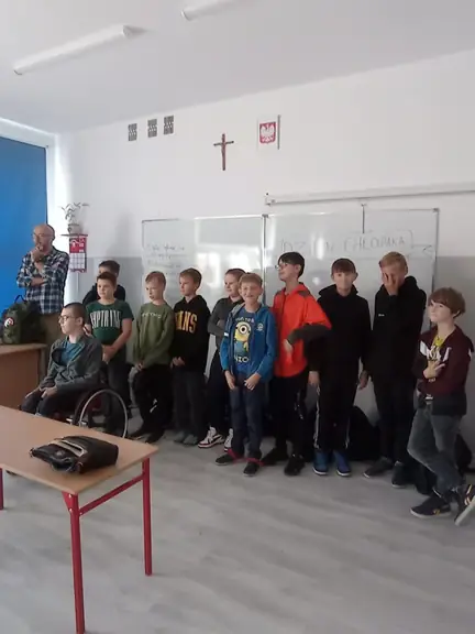 W tym roku, w klasie 5b , dziewczynki zorganizowały Dzień Chłopaka. Chłopcy, aby otrzymać tytuł Super Chłopaka musieli wykonać kilka niełatwych zadań. Rozwiązywali różne zagadki, m.in.: zgadywali nazwy przedmiotów , które wyciągali z woreczka , mając zamknięte oczy albo jedli cytrynę, bez skwaszonej miny. Wszyscy chłopcy wypadli znakomicie. Po wykonaniu wszystkich zadań dziewczynki złożyły chłopcom życzenia i rozdały upominki, słodycze oraz medale dla Super Chłopaków. Wspólna zabawa wszystkim uczniom dała dużo radości i sprawiła, że to był naprawdę wspaniały dzień.