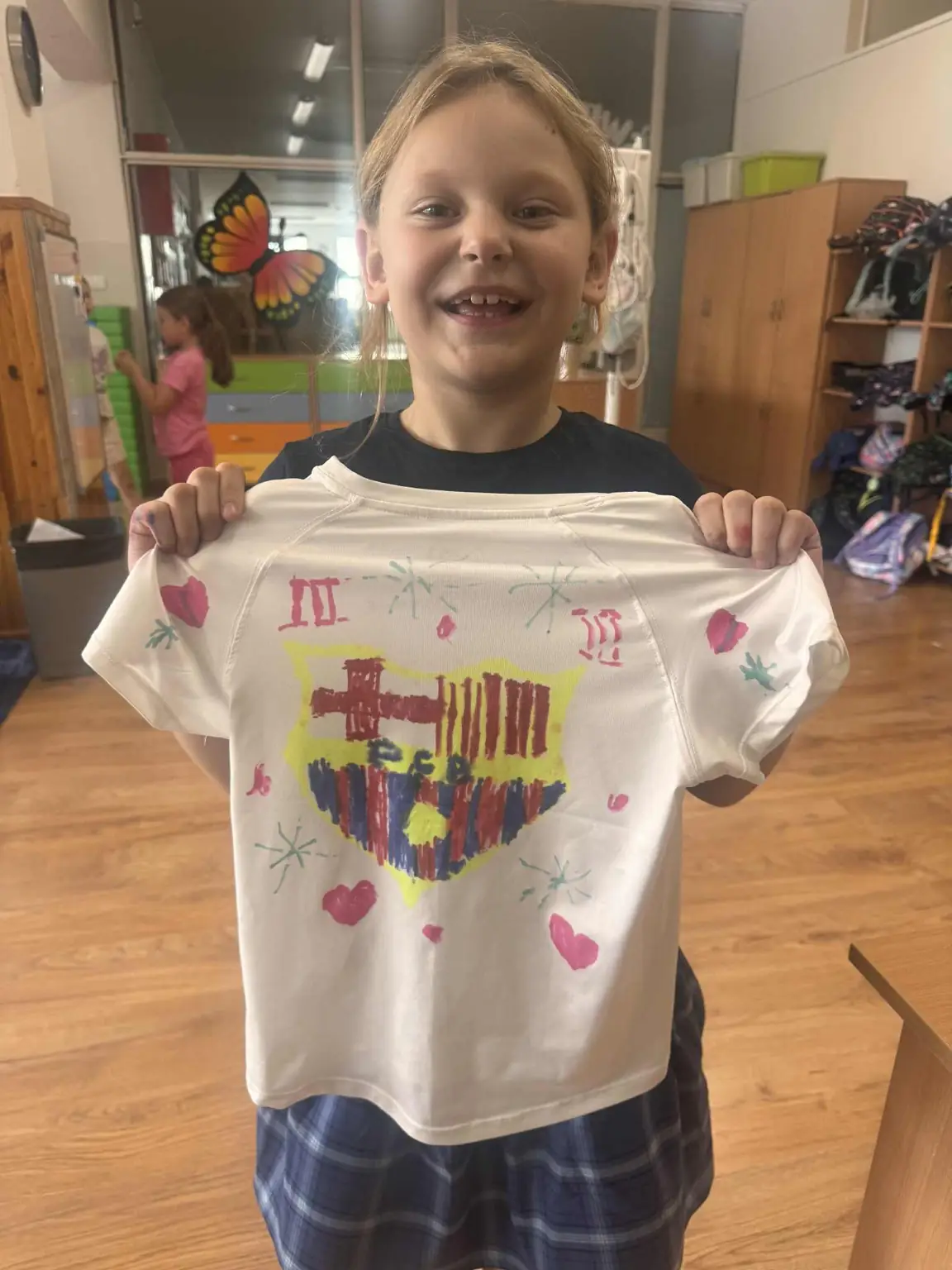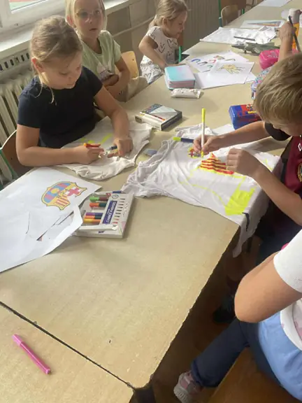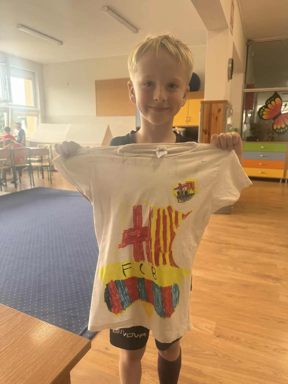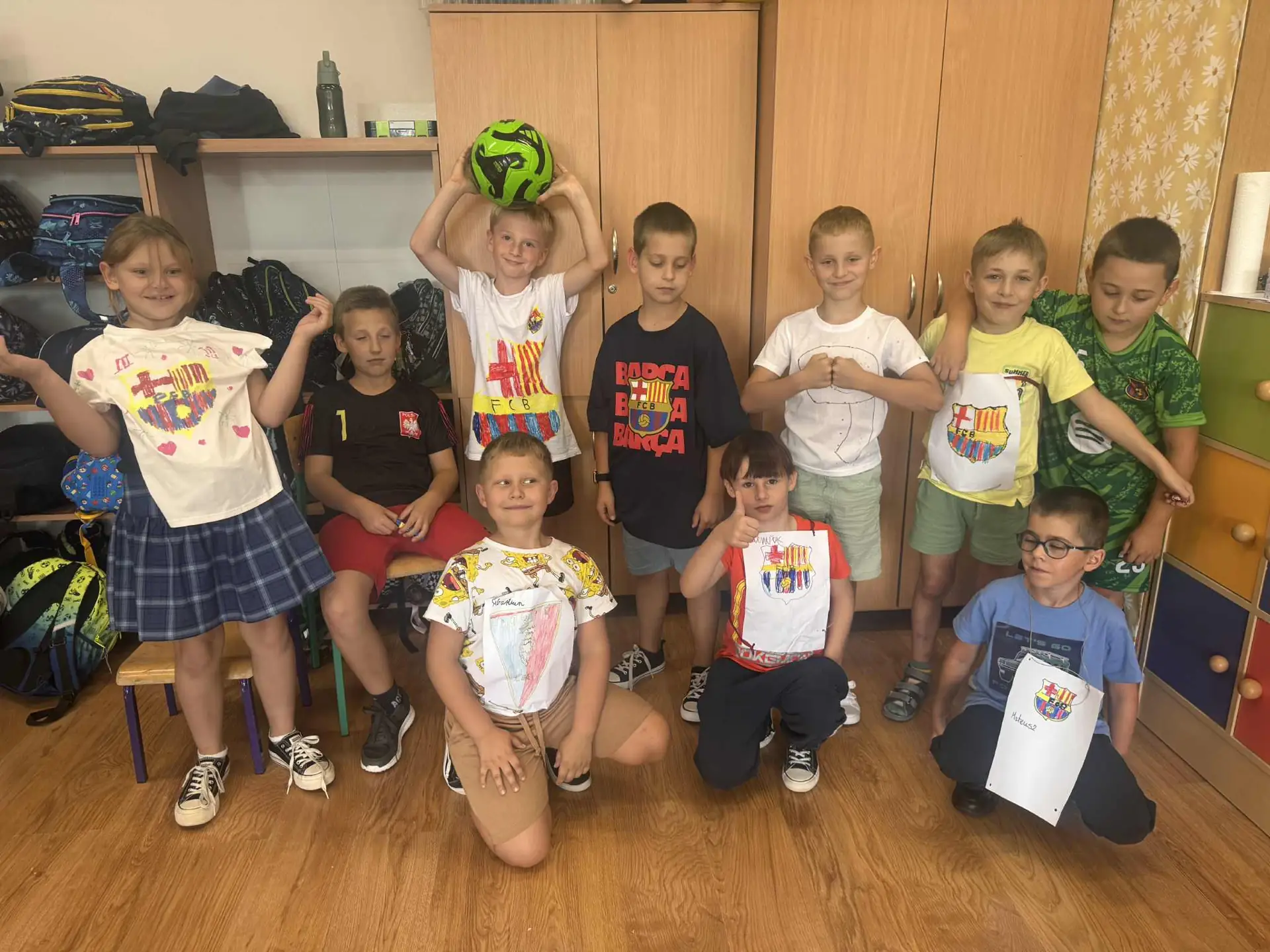 10 września obchodziliśmy Dzień Piłkarza. Z tej okazji w świetlicy zorganizowany został dzień na sportowo. Uczniowie przygotowali własne koszulki w barwach ulubionych klubów piłkarskich, które wcześniej samodzielnie pokolorowali. Na zakończenie świętowania odbył się mecz towarzyski na szkolnym boisku. Drużyny składające się ze świetliczaków zagrały pełne emocji spotkanie, a radość i sportowa atmosfera towarzyszyły wszystkim uczestnikom. To był dzień pełen ruchu, kreatywności i dobrej zabawy!