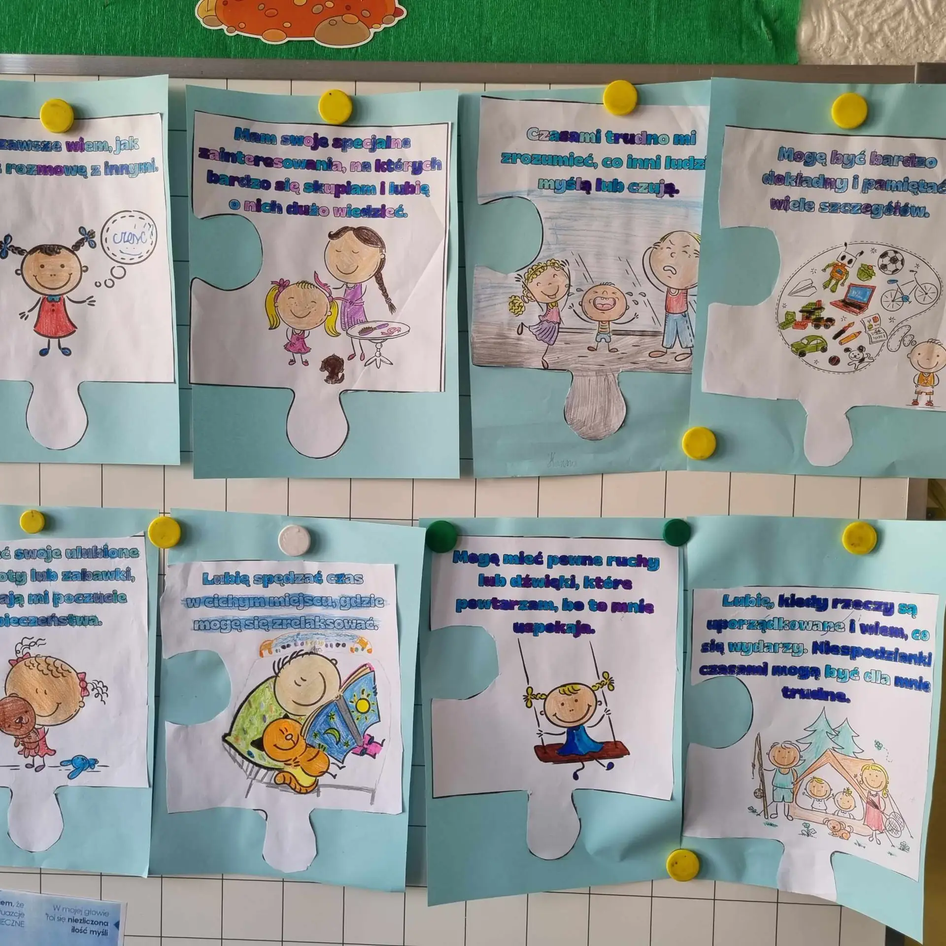 • zajęcia edukacyjne - rozmowy o autyzmie, oglądanie filmów edukacyjnych, czytanie książek o tematyce neuroatypowości;