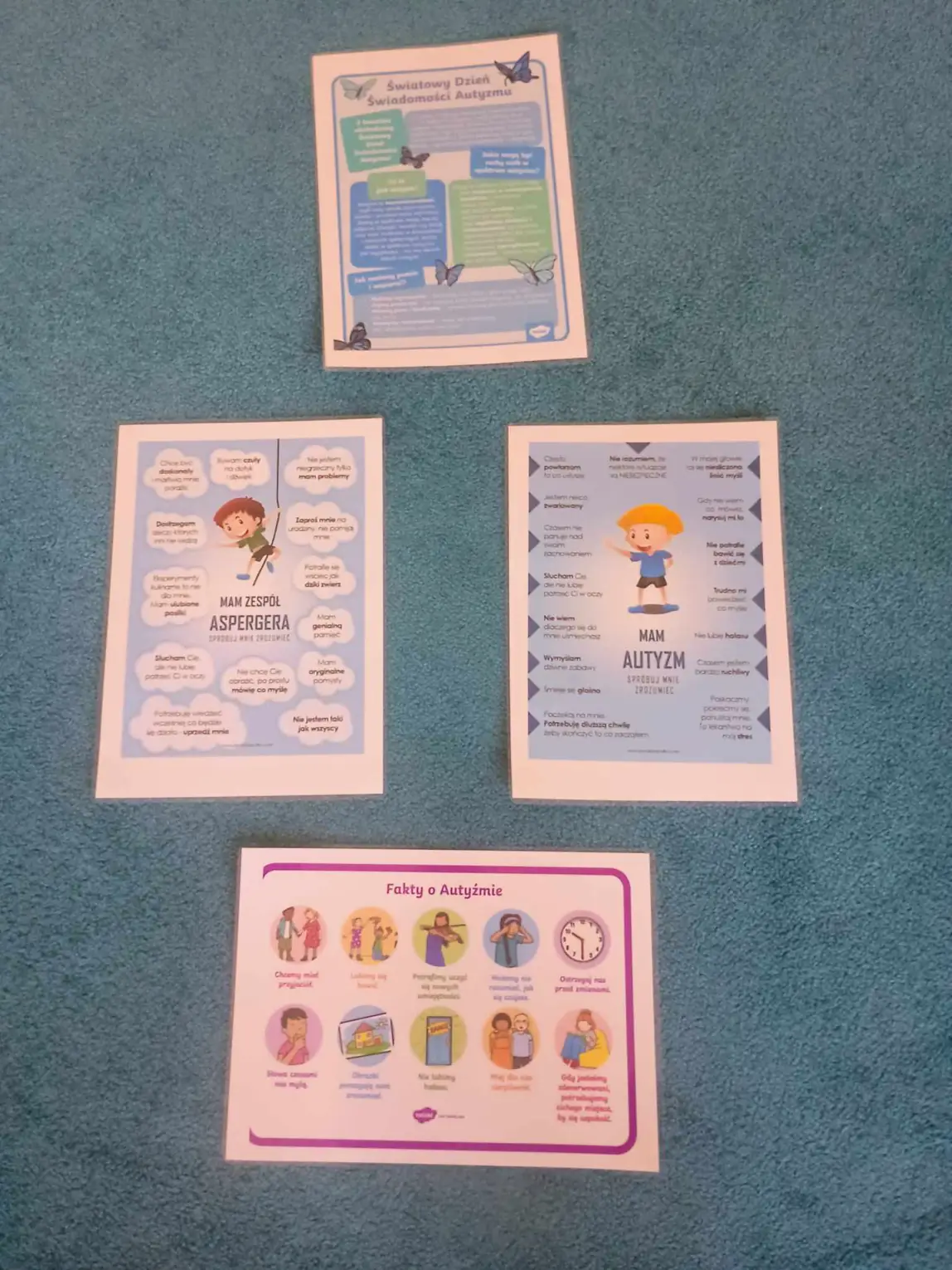 • twórczość plastyczna - wspólne tworzenie niebieskich motyli, puzzli, plakatów i dekoracji;