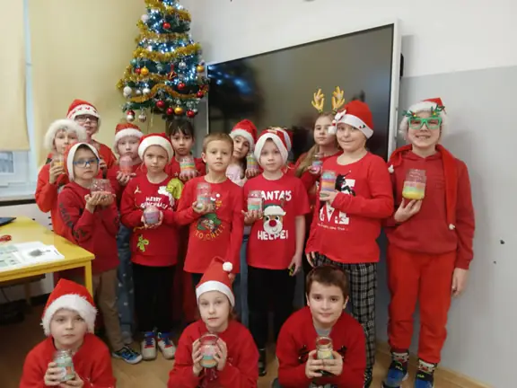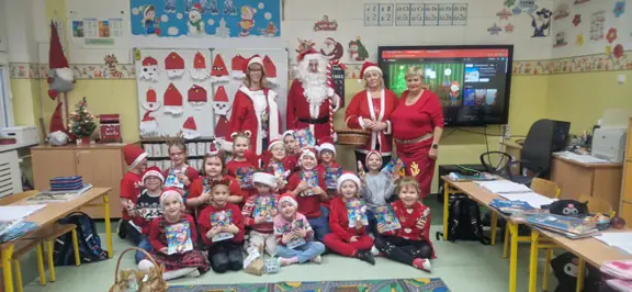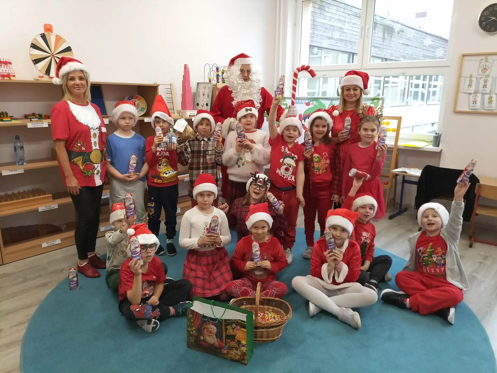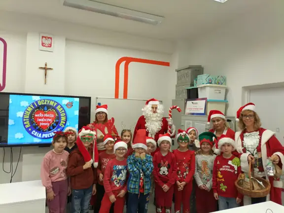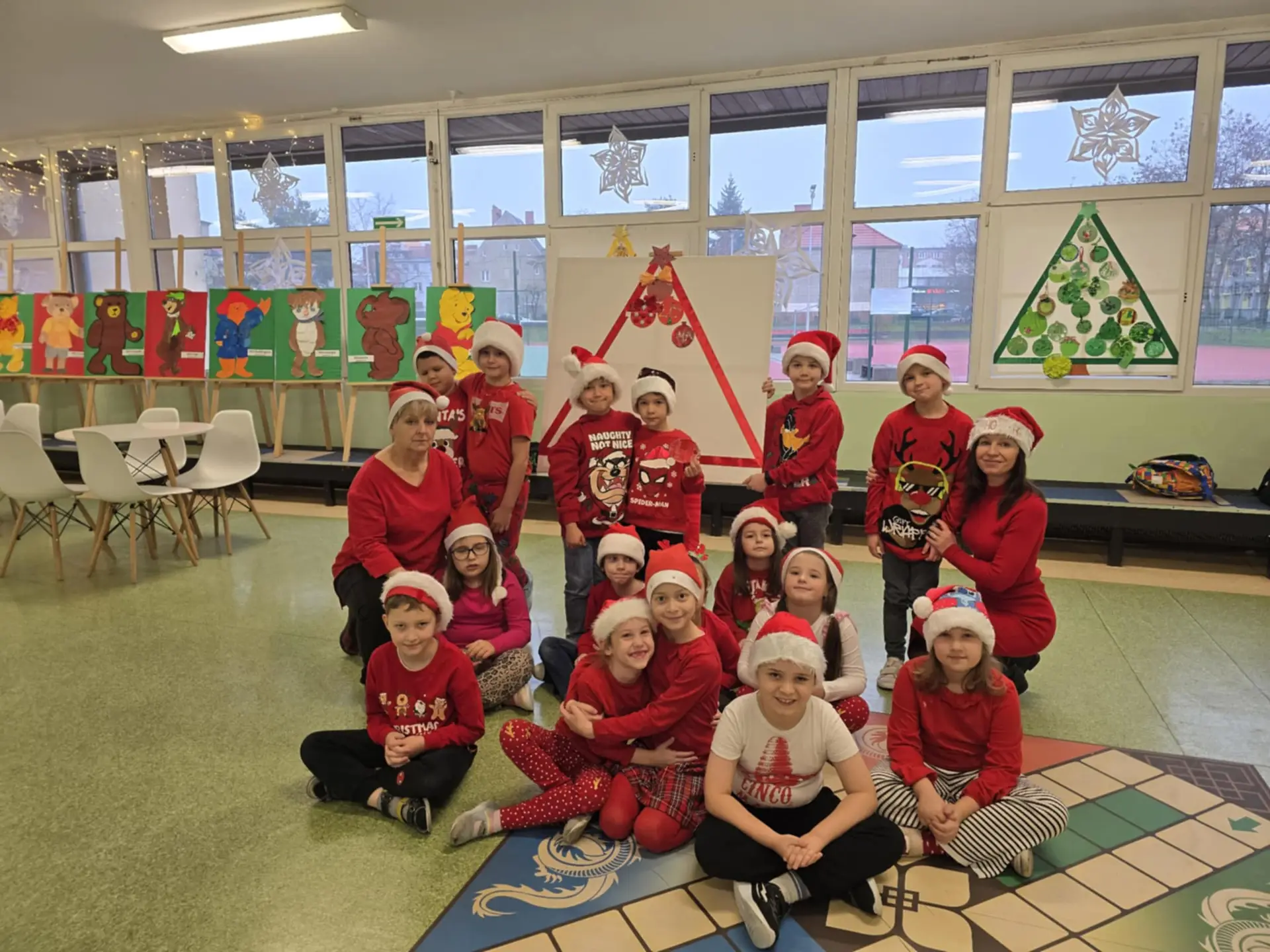 Największą atrakcją dnia była wizyta Świętego Mikołaja, który pojawił się z pełnym workiem prezentów i dwiema pomocnicami. Każda klasa miała okazję porozmawiać z Mikołajem i zrobić pamiątkowe zdjęcie. Dzieci otrzymały drobne upominki w postaci słodyczy oraz świątecznych pierniczków. Dzieci podziękowały Mikołajowi i jego pomocnicom za słodką niespodziankę i obiecały, że przez cały rok będą grzeczne.