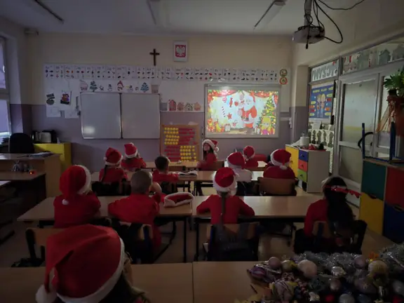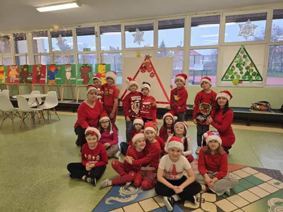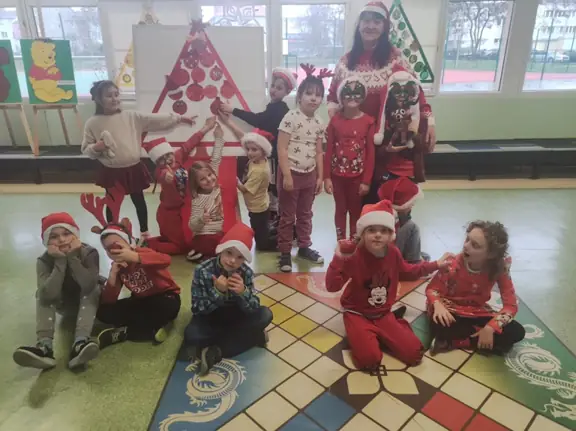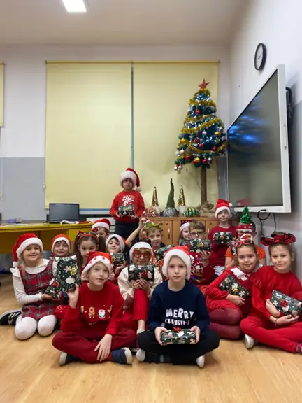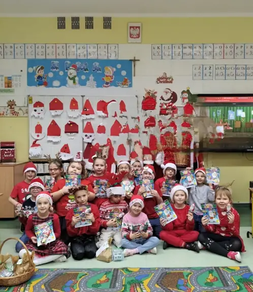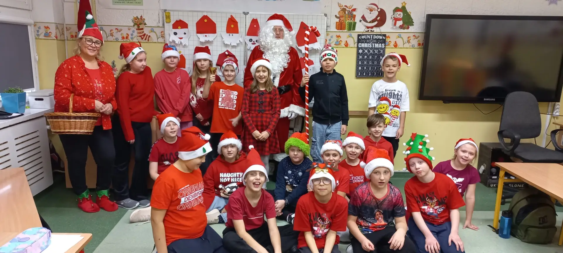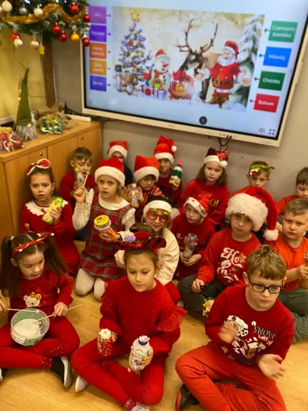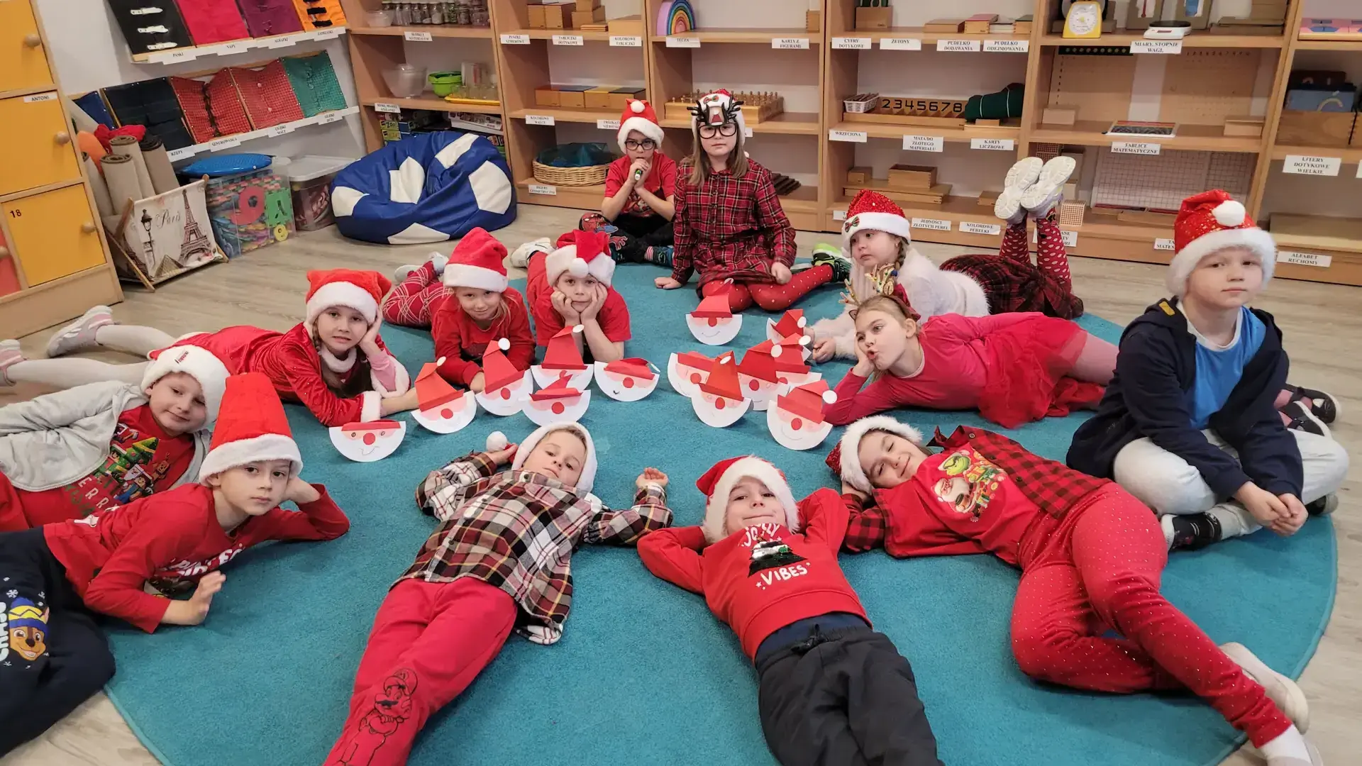 5 grudnia w naszej szkole odbyły się uroczyste obchody Mikołajek. Już od rana w szkolnych korytarzach panowała radosna atmosfera – dzieci przyszły ubrane w czerwone czapki, reniferowe opaski oraz mikołajkowe stroje, co nadało całemu wydarzeniu wyjątkowy, świąteczny charakter.
