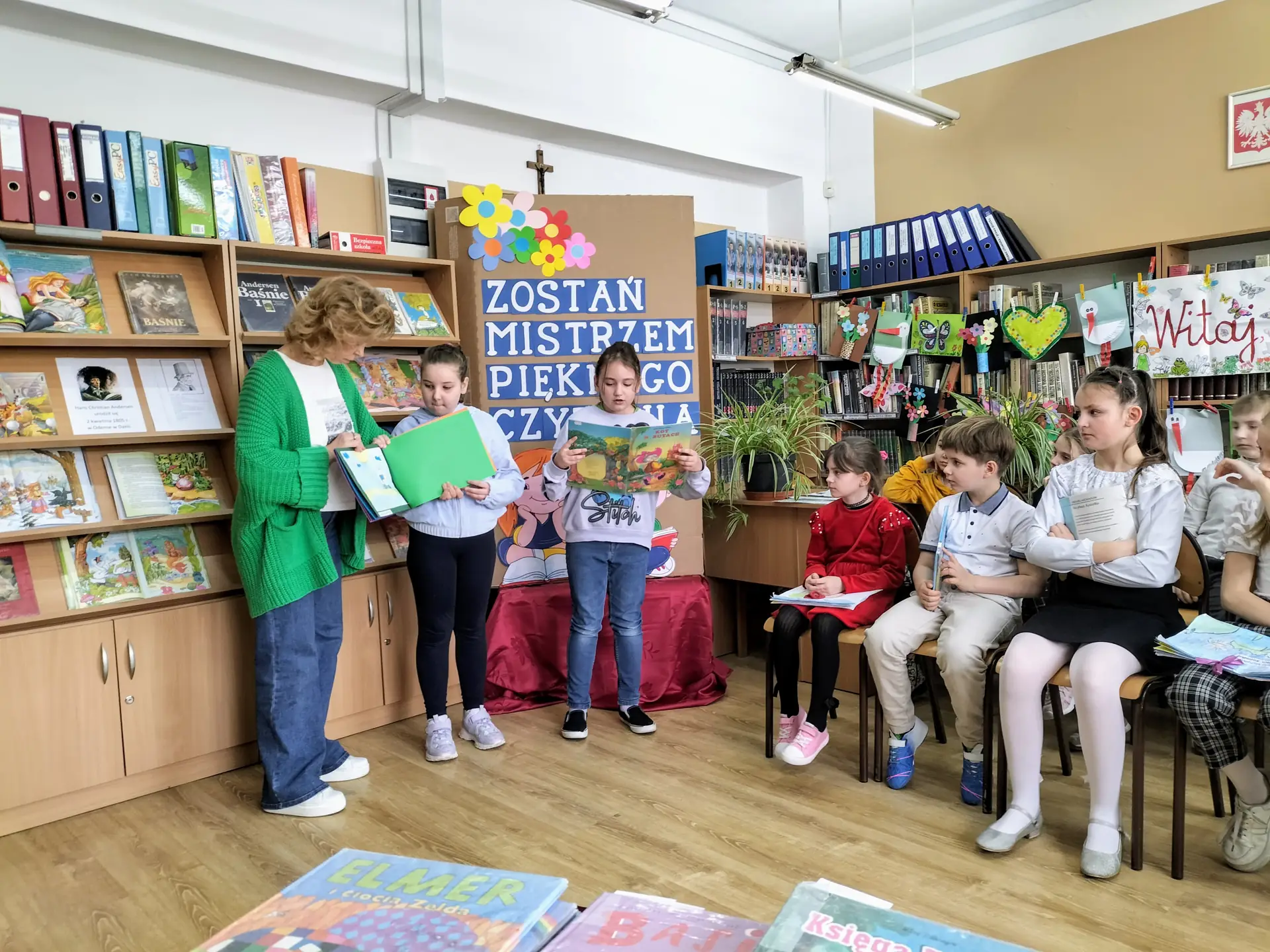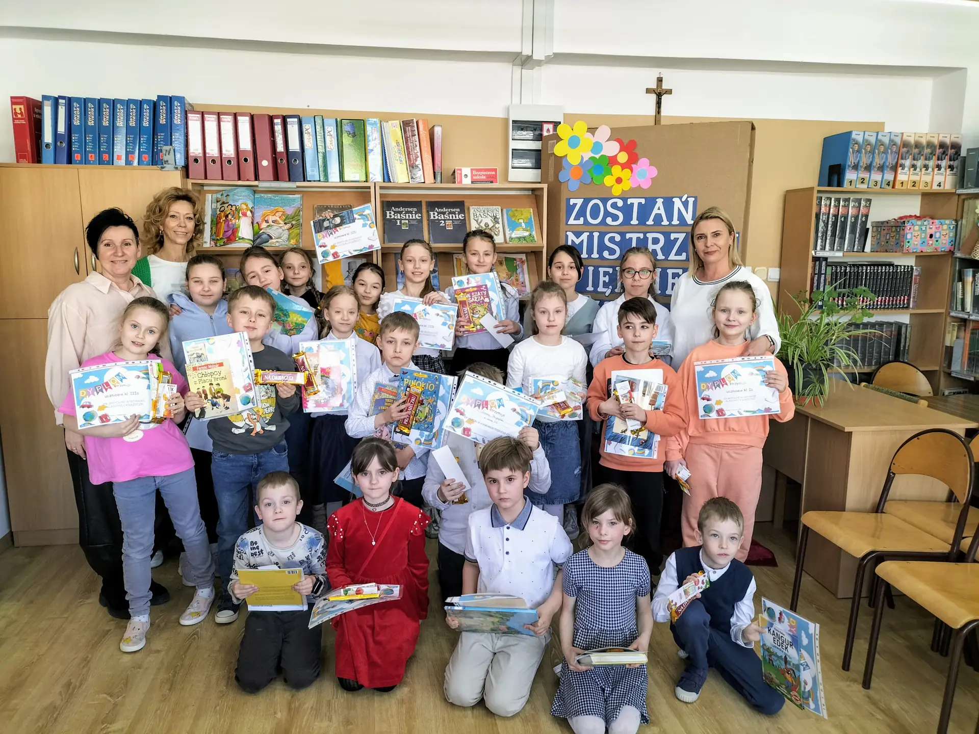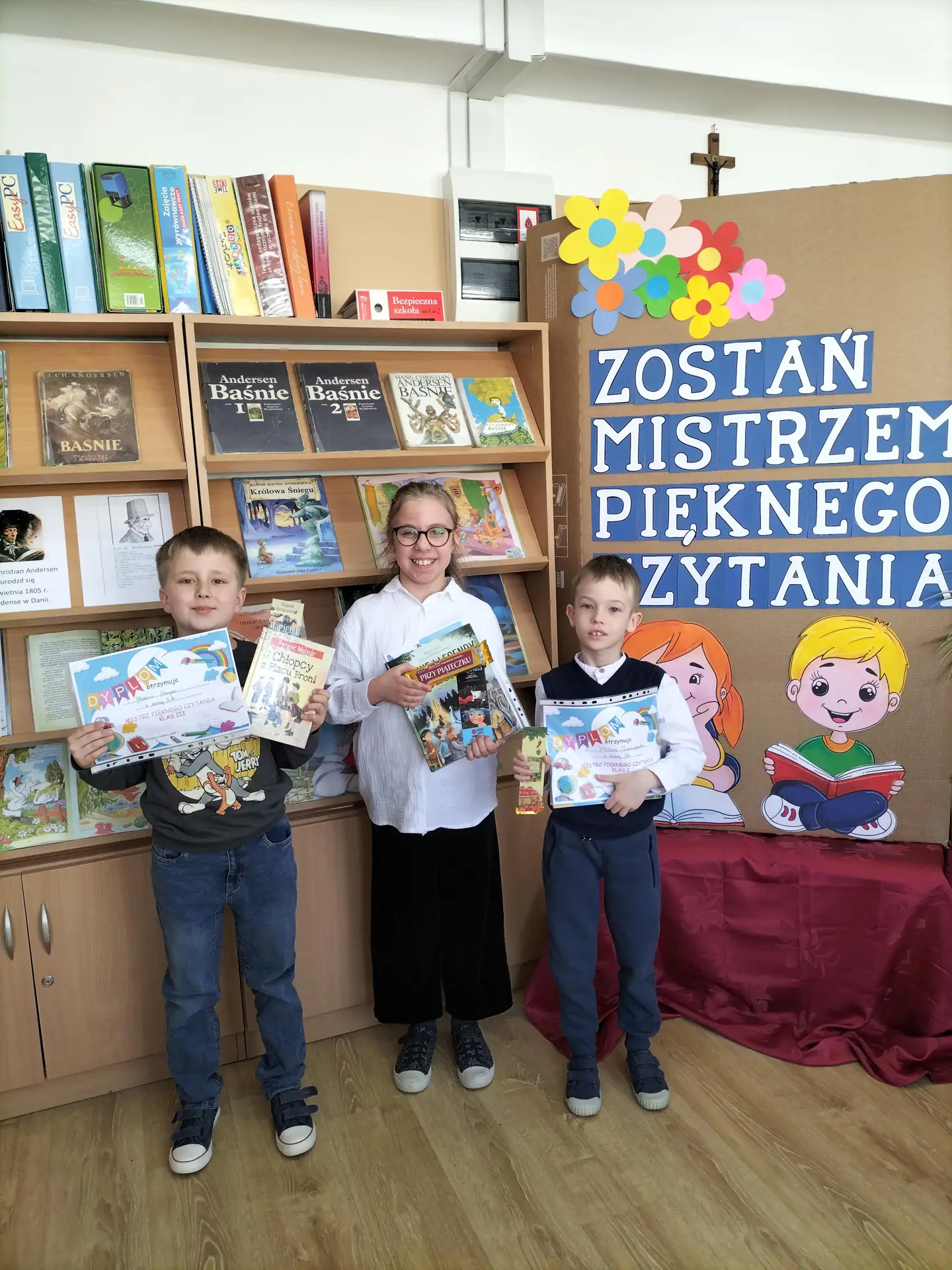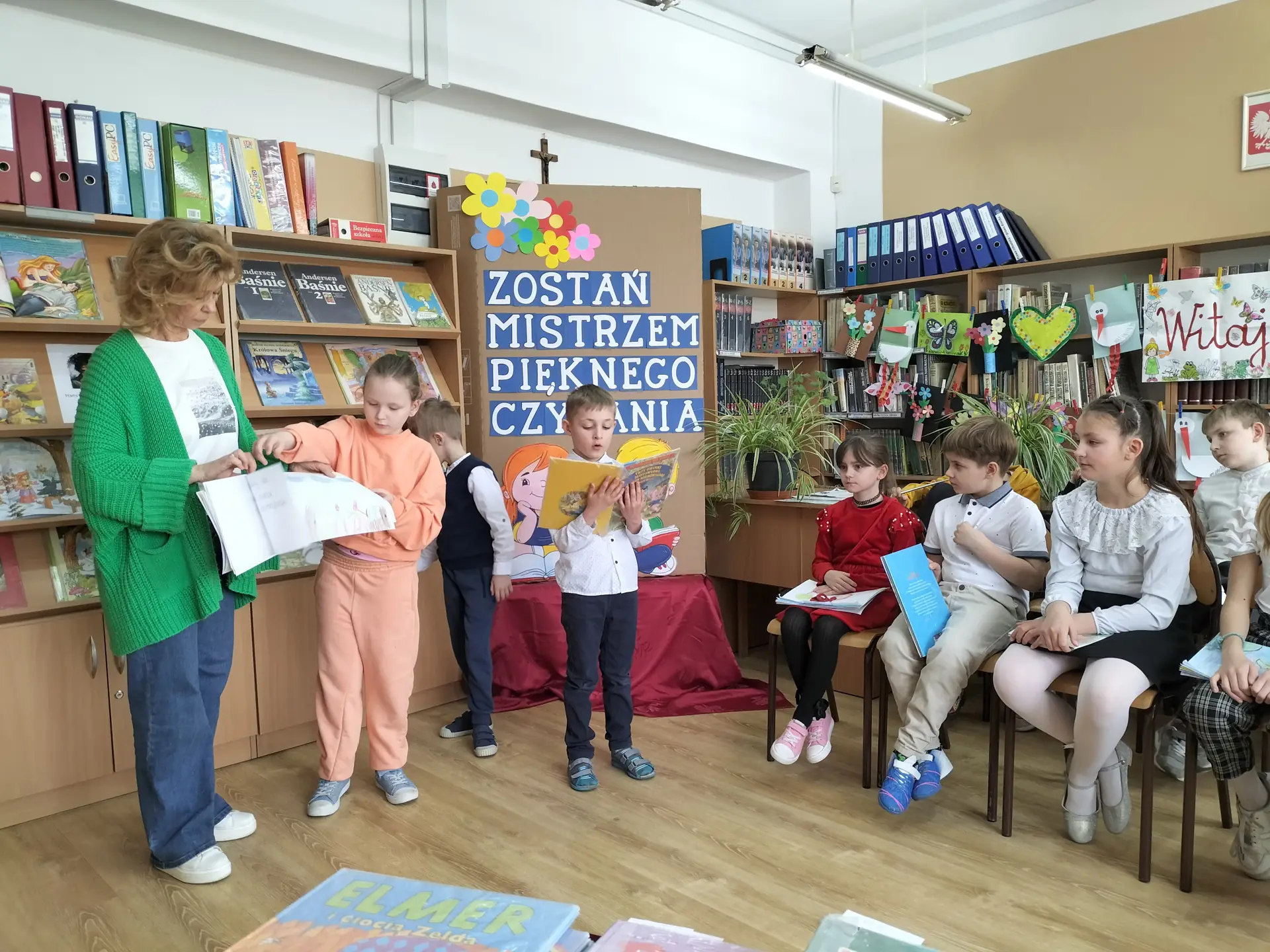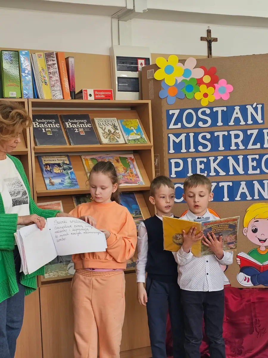 Dnia 9 kwietnia 2025 r. w ramach obchodów Święta Książki dla Dzieci w bibliotece szkolnej odbył się konkurs pod hasłem „Zostań Mistrzem Pięknego Czytania” przeznaczony dla uczniów klas I-III. Celem konkursu było: kształcenie umiejętności pięknego czytania, rozwijanie dbałości o piękno języka polskiego, promocja czytania, budzenie zainteresowania wartościową literaturą dziecięcą, popularyzacja wśród uczniów książek znajdujących się w zbiorach naszej biblioteki, wyrabianie nawyku czytania jako formy spędzania czasu wolnego, wyłonienie Mistrzów Pięknego Czytania.