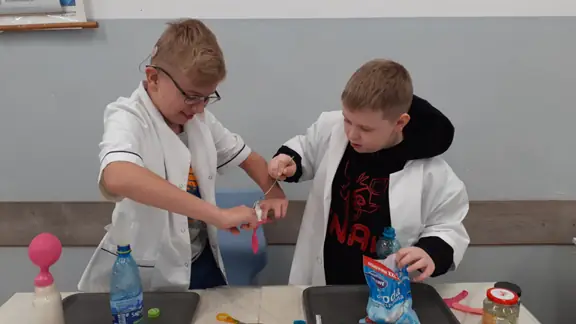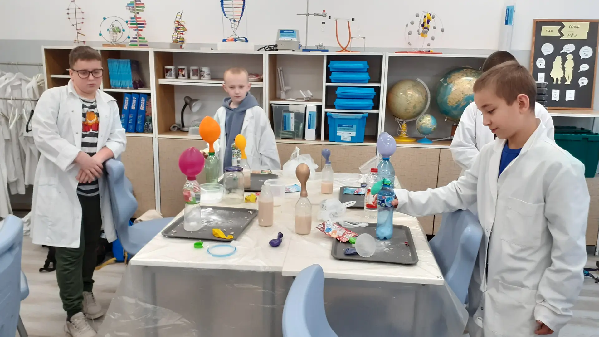Młodzi przyrodniczy w ramach koła przyrodniczego odbyli cykl warsztatów z efektownymi doświadczeniami: