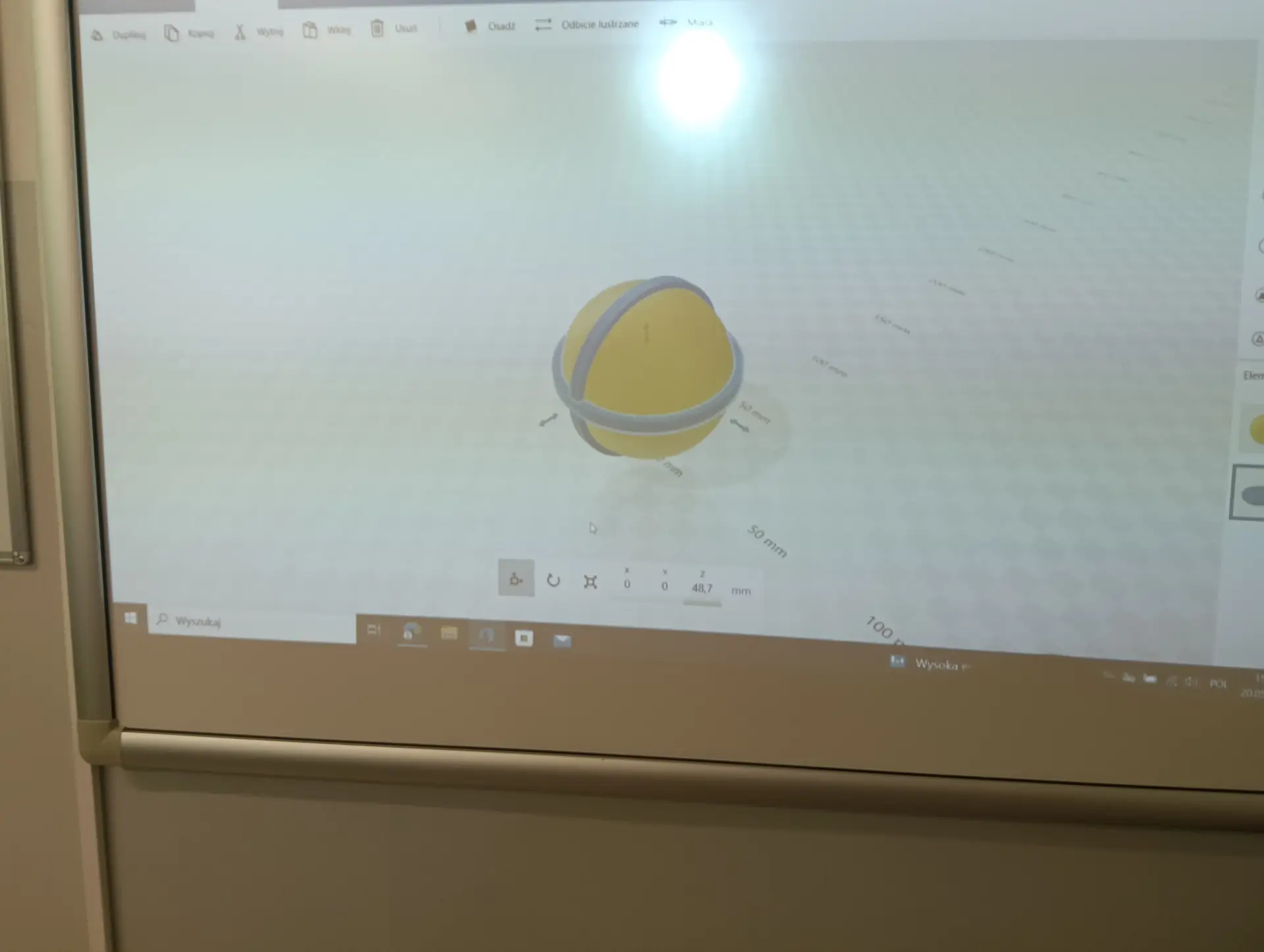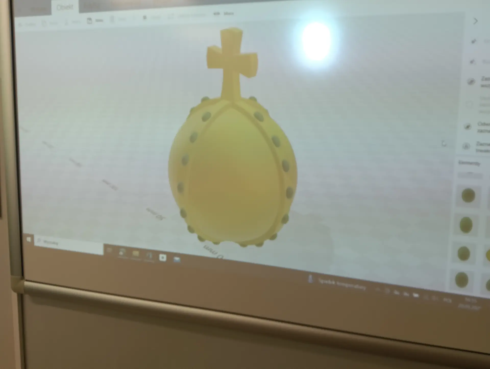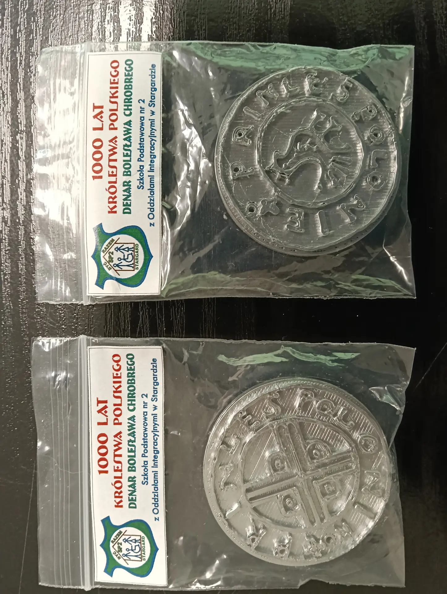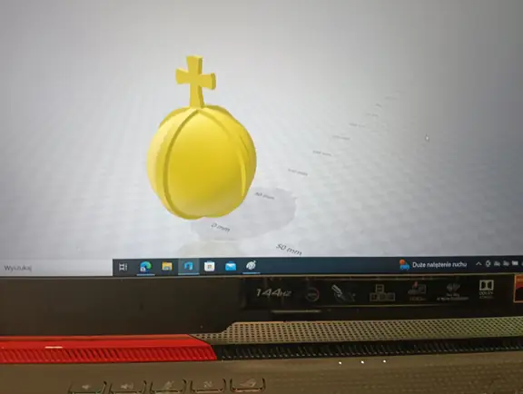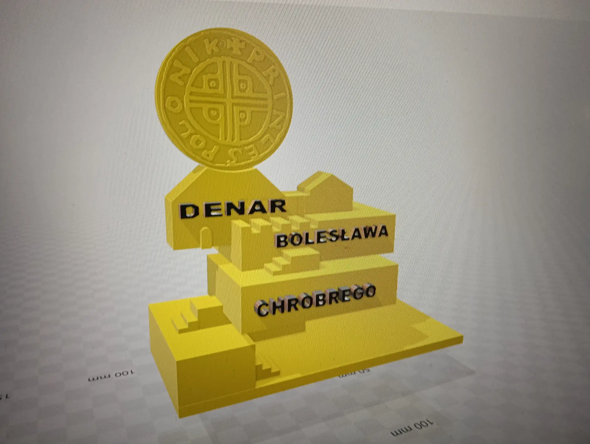 Miesiące maj i czerwiec przede wszystkim obfitowały w tworzenie i drukowanie projektów 3D. Kontynuowaliśmy drukowanie zaprojektowanych dwustronnych denarów z czasów Bolesława Chrobrego. W sumie koło informatyczne przy wsparciu druku przez p. Marcina Kolany, wydrukowało 34 denary. Każdy wydrukowany dwustronnie denar, był pięknie pomalowany na kolor srebrny przez p. Ilonę Szymańską z Pracowni Stolarskiej. Zaprojektowaliśmy również w środowisku 3D Builder, a potem wydrukowaliśmy, statuetkę 3D z denarem, jako trofeum w konkursie historycznym. Konkurs odbył się w naszej szkole dnia 10 czerwca. Powstał także projekt 3D jabłka królewskiego, które również zostało wydrukowane. Jabłko królewskie wraz z wcześniejszymi drukami koron królewskich, stanowiły projekt insygniów królewskich, które przepięknie pomalowała p. Ilona Szymańska. Całość naszych działań wpisywała się w szersze historyczno-informatyczne przedsięwzięcie pt. „Denar Bolesława Chrobrego”. Była to nasza odpowiedź na ogólnopolskie świętowanie Tysiąclecia Królestwa Polskiego i koronacji Bolesława Chrobrego. Podczas pracy cały czas wspierali nas swoją wiedzą historyczną p. Renata Pruska-Nieroda oraz uczniowie z koła historycznego.