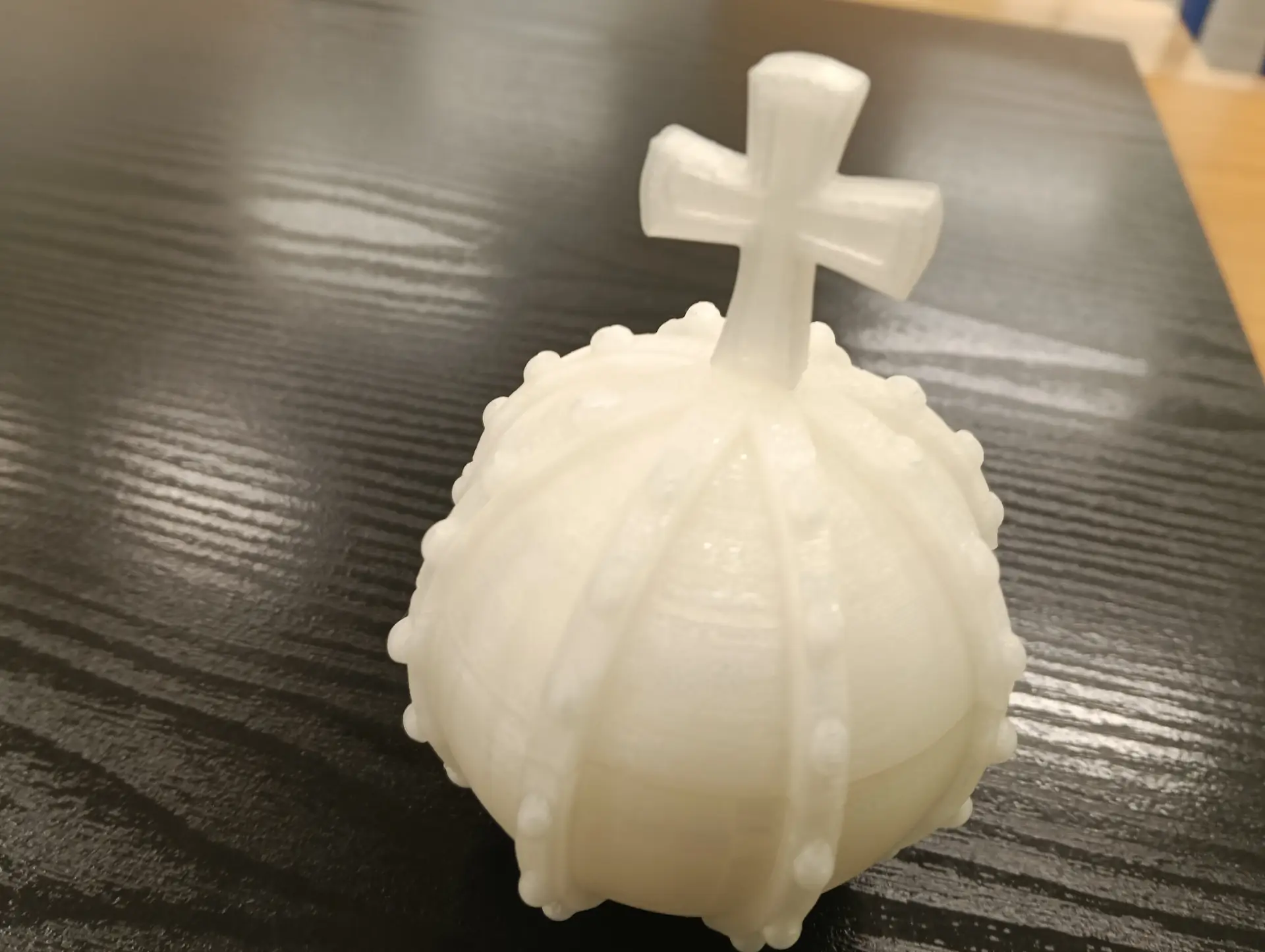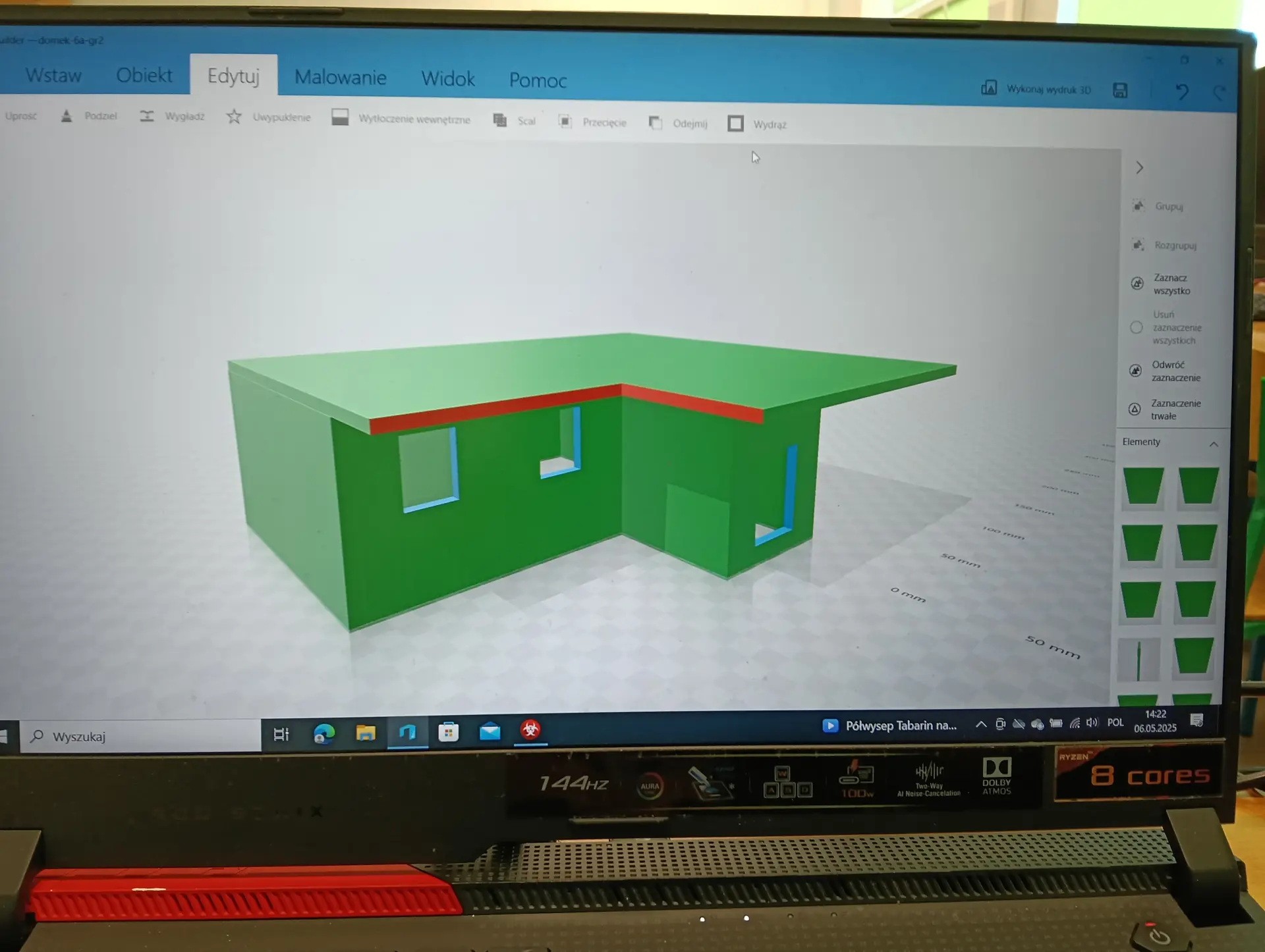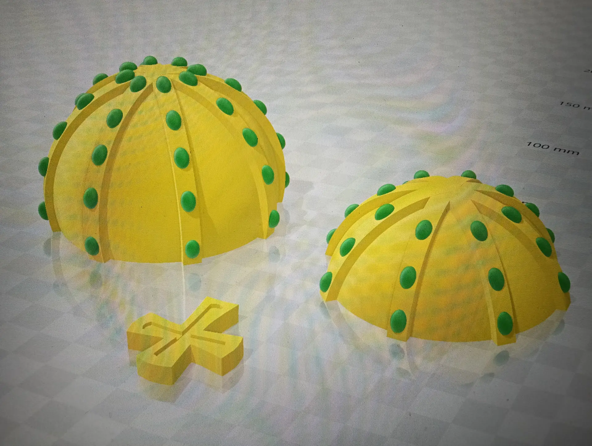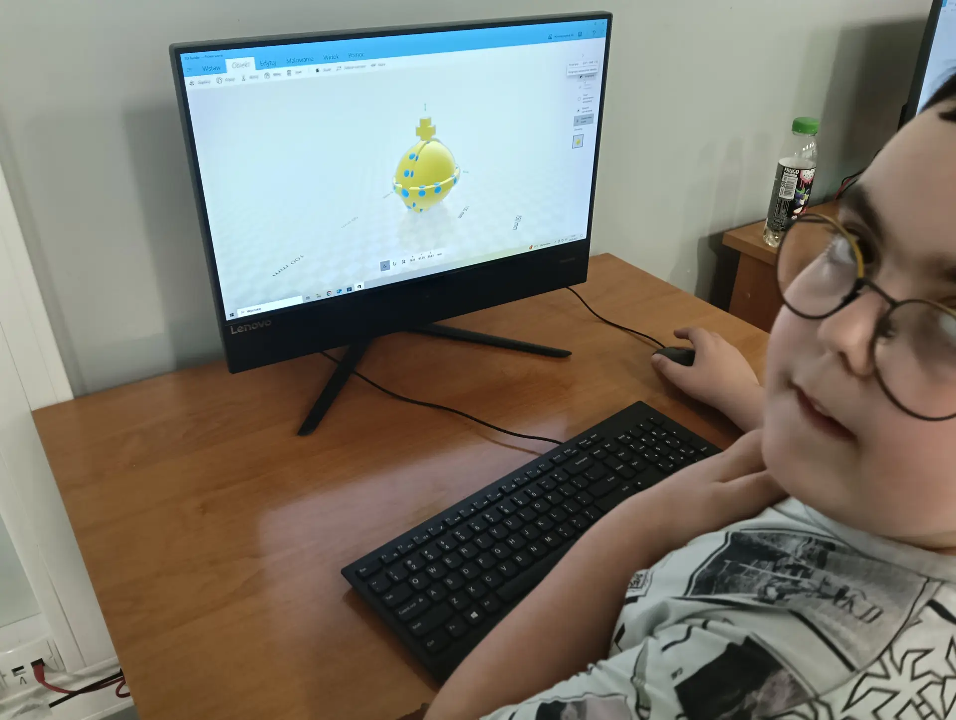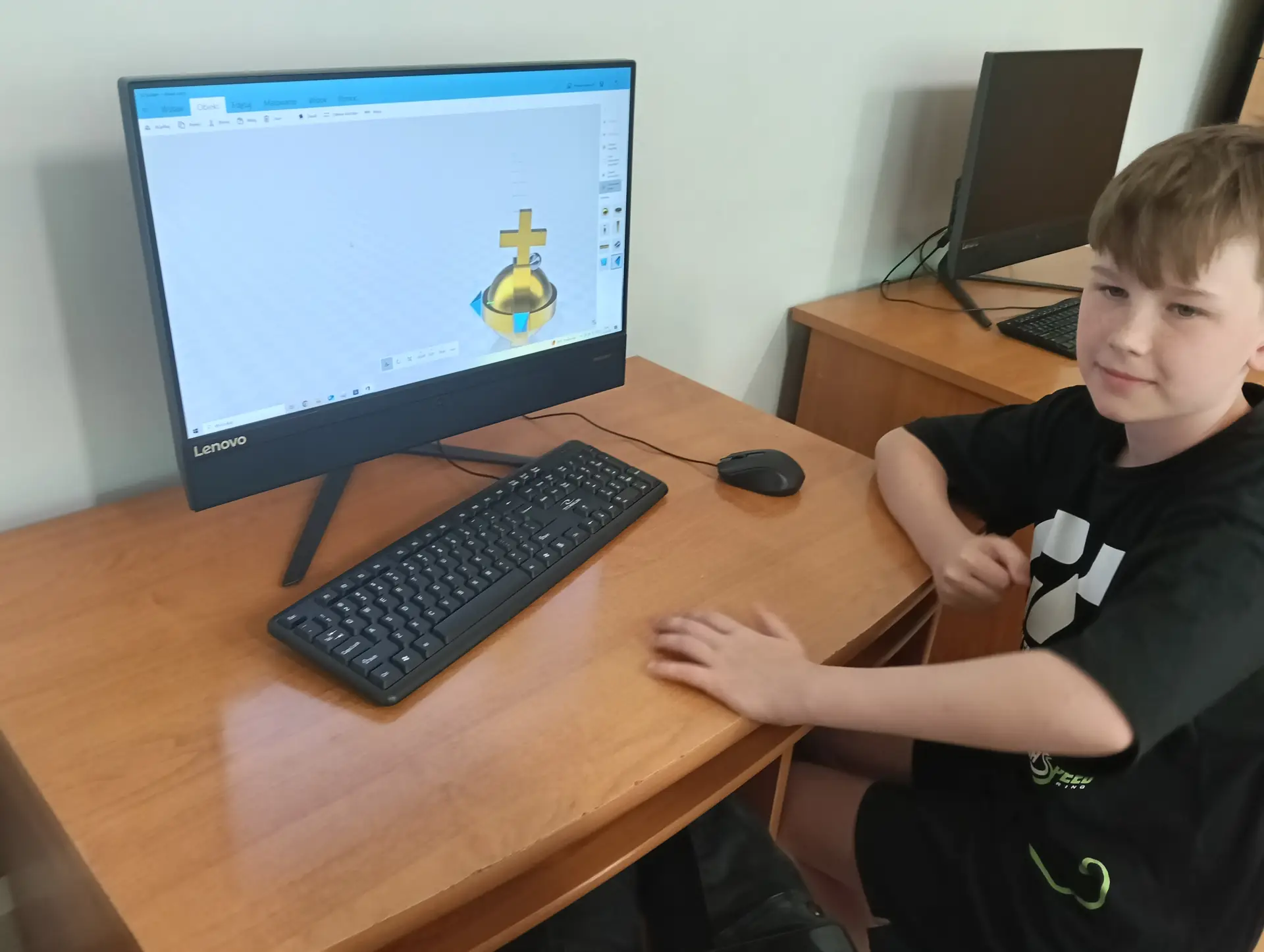 Miesiące maj i czerwiec przede wszystkim obfitowały w tworzenie i drukowanie projektów 3D. Kontynuowaliśmy drukowanie zaprojektowanych dwustronnych denarów z czasów Bolesława Chrobrego. W sumie koło informatyczne przy wsparciu druku przez p. Marcina Kolany, wydrukowało 34 denary. Każdy wydrukowany dwustronnie denar, był pięknie pomalowany na kolor srebrny przez p. Ilonę Szymańską z Pracowni Stolarskiej. Zaprojektowaliśmy również w środowisku 3D Builder, a potem wydrukowaliśmy, statuetkę 3D z denarem, jako trofeum w konkursie historycznym. Konkurs odbył się w naszej szkole dnia 10 czerwca. Powstał także projekt 3D jabłka królewskiego, które również zostało wydrukowane. Jabłko królewskie wraz z wcześniejszymi drukami koron królewskich, stanowiły projekt insygniów królewskich, które przepięknie pomalowała p. Ilona Szymańska. Całość naszych działań wpisywała się w szersze historyczno-informatyczne przedsięwzięcie pt. „Denar Bolesława Chrobrego”. Była to nasza odpowiedź na ogólnopolskie świętowanie Tysiąclecia Królestwa Polskiego i koronacji Bolesława Chrobrego. Podczas pracy cały czas wspierali nas swoją wiedzą historyczną p. Renata Pruska-Nieroda oraz uczniowie z koła historycznego.
