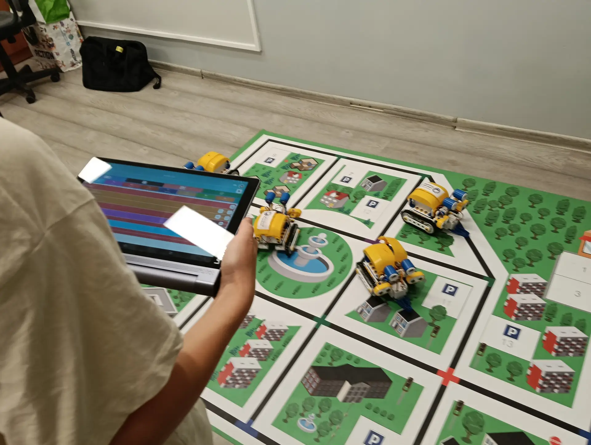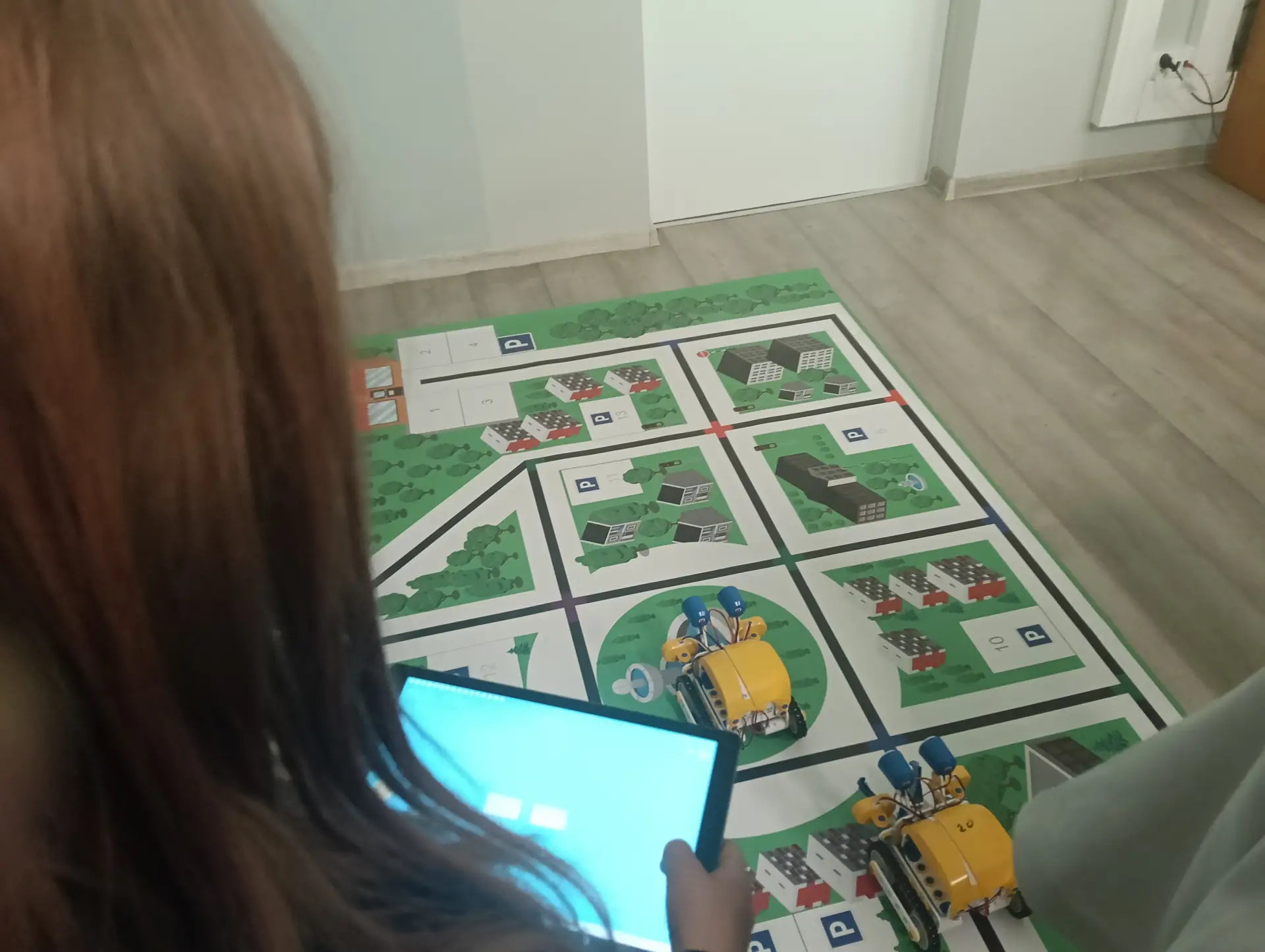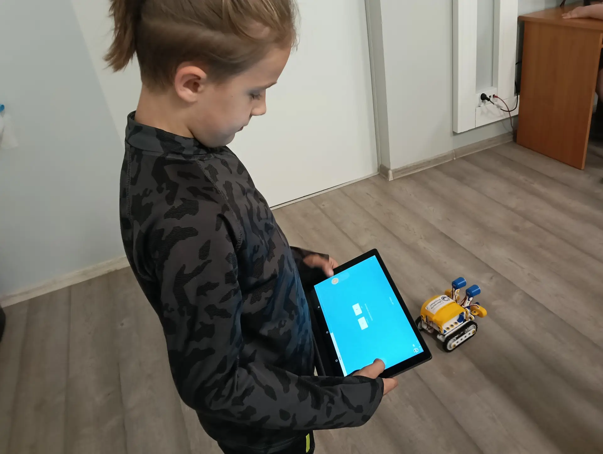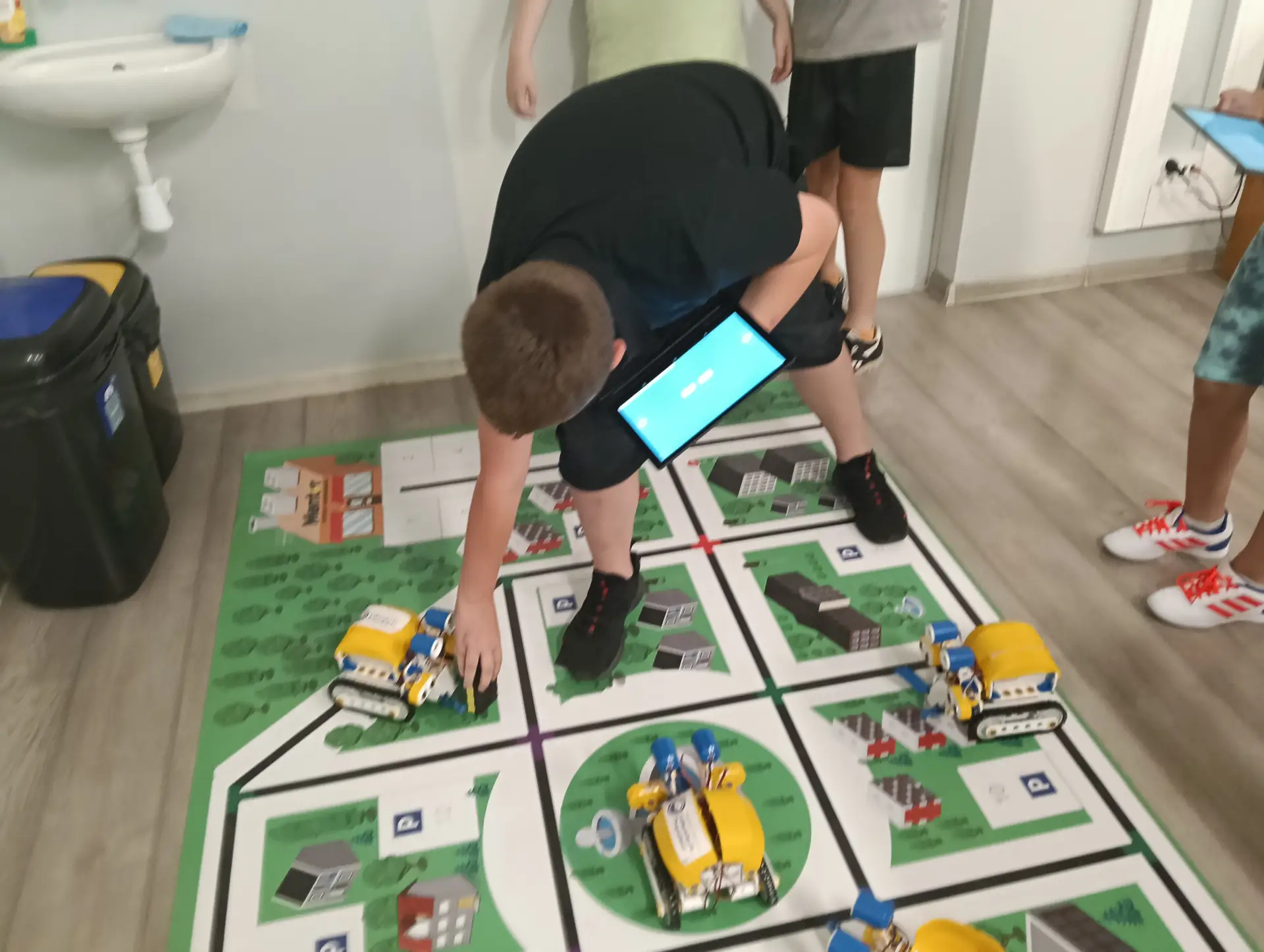 Klasy IVa i IVb próbowały na lekcjach techniki i informatyki swoich sił w sterowaniu robotami SkriBot w środowisku SkriApp. Używając szkolnych tabletów uczniowie starali się poruszać robotami wzdłuż określonych krawędzi na specjalnej edukacyjnej macie oraz łapać i przenosić (za pomocą chwytaka robota) lekkie przedmioty w określone miejsca. Była też możliwość tworzenia prostych programów w tym środowisku. Karty z objaśnieniami do programowania, dołączone do robotów SkriBot, były świetną pomocą podczas kodowania.