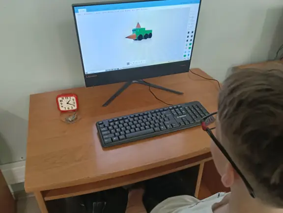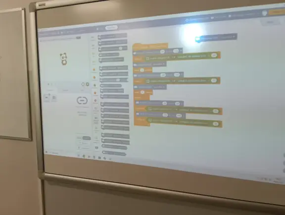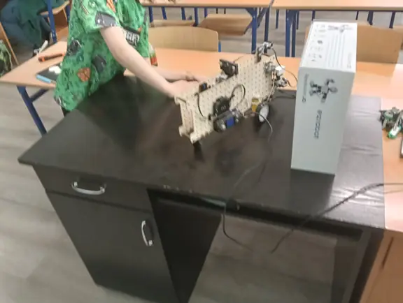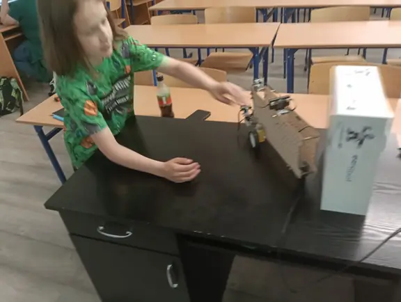 Na zajęciach koła informatycznego próbowaliśmy również doskonalić zadanie omijania przeszkody przez robota zbudowanego w oparciu o zestawy CyberPi wraz z podłączonymi czujnikami. Zadanie okazało się dość trudne, jednakże częściowo udało nam się je zrealizować. Projekt tworzyliśmy w oparciu o znane nam już środowisko mBlock z wbudowanymi bloczkami poleceń, które były dostępne w różnych kategoriach.