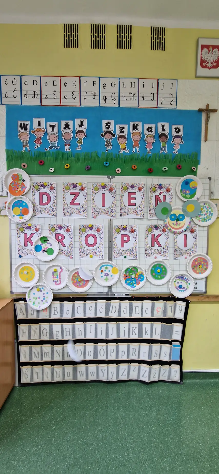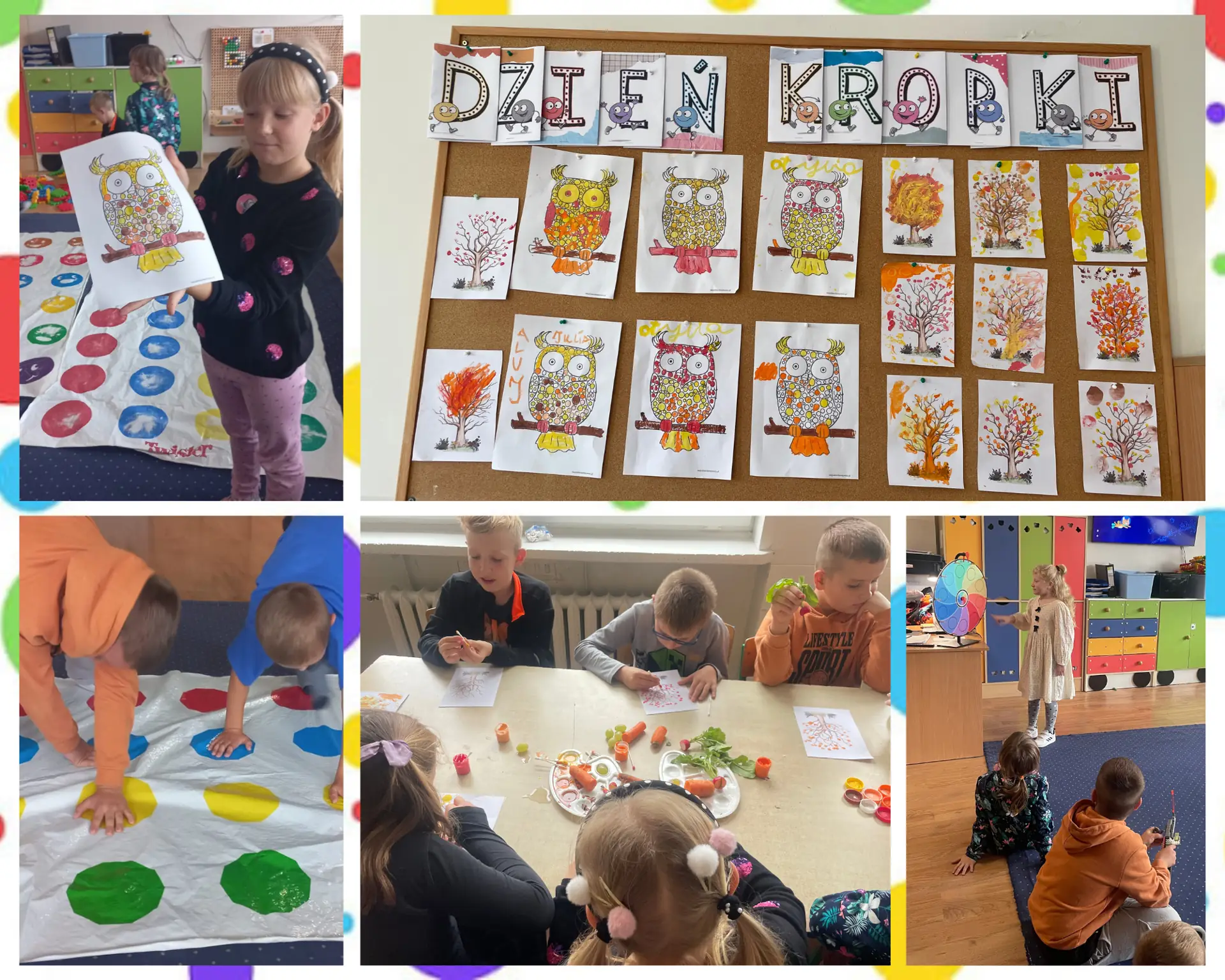 A w świetlicy? Kropki nadal w akcji! Dzieci malowały przy użyciu naprawdę nietypowych „pędzli”: patyczków higienicznych, marchewek, rzodkiewek, a nawet… winogron! Nie zabrakło też ruchowych szaleństw – biegaliśmy, skakaliśmy i zamieniliśmy salę w prawdziwe kropkowe pole do zabawy.