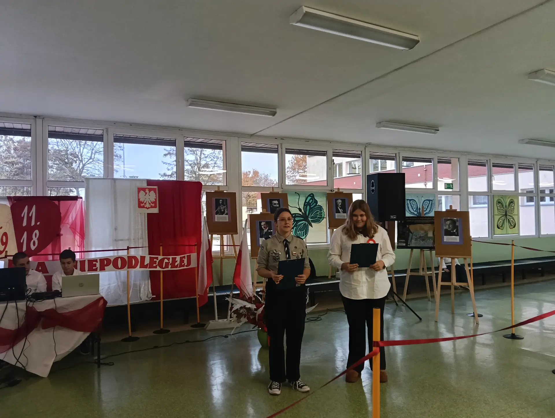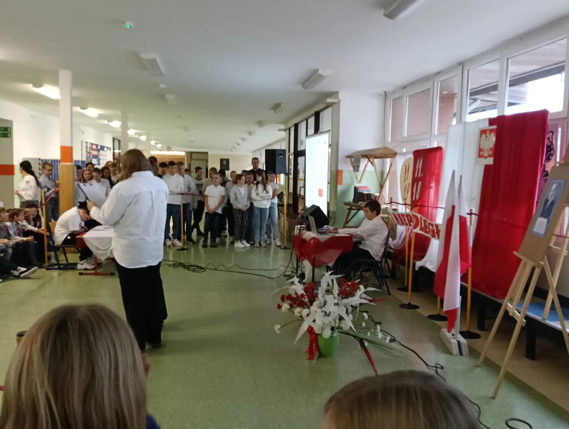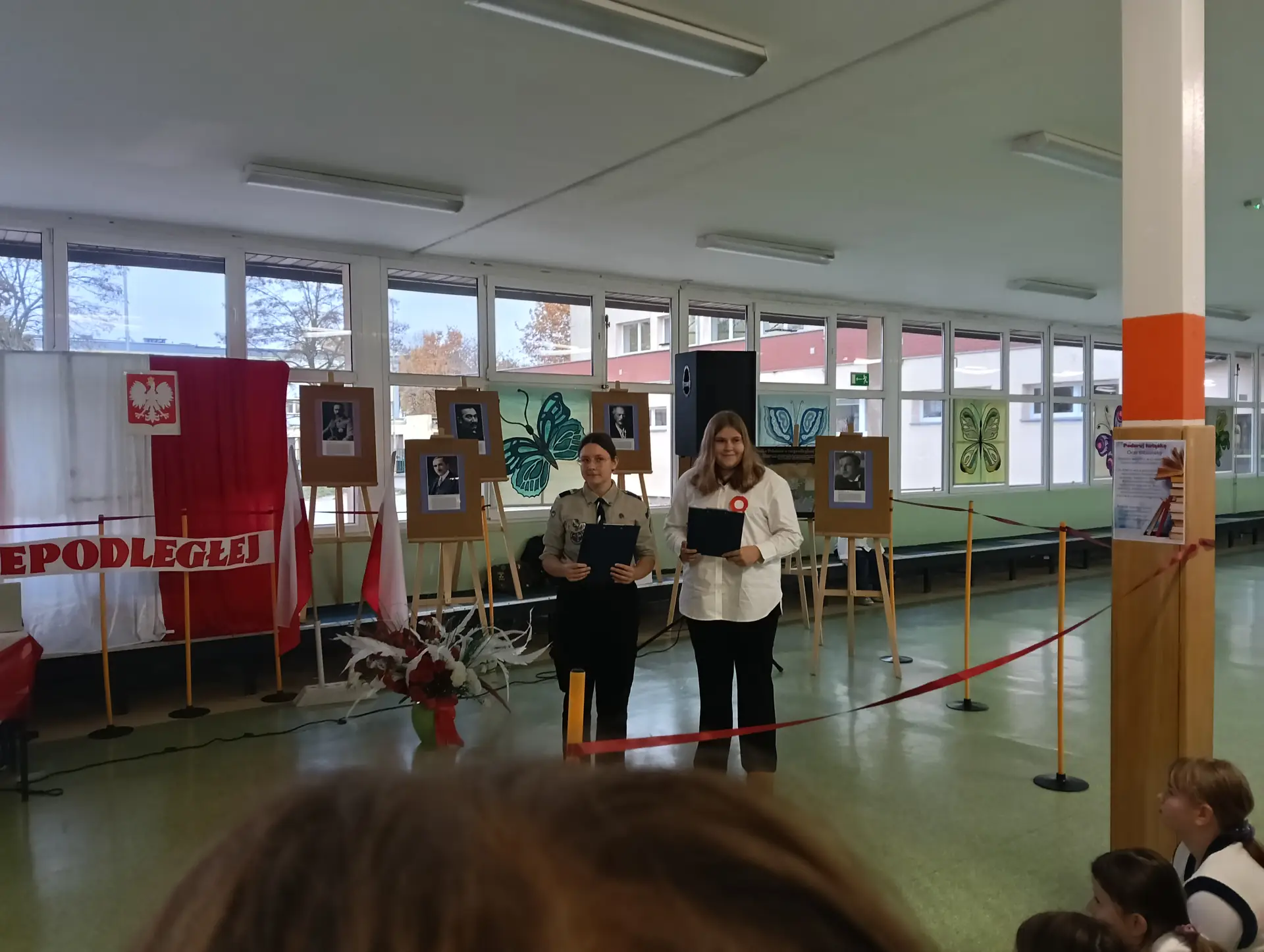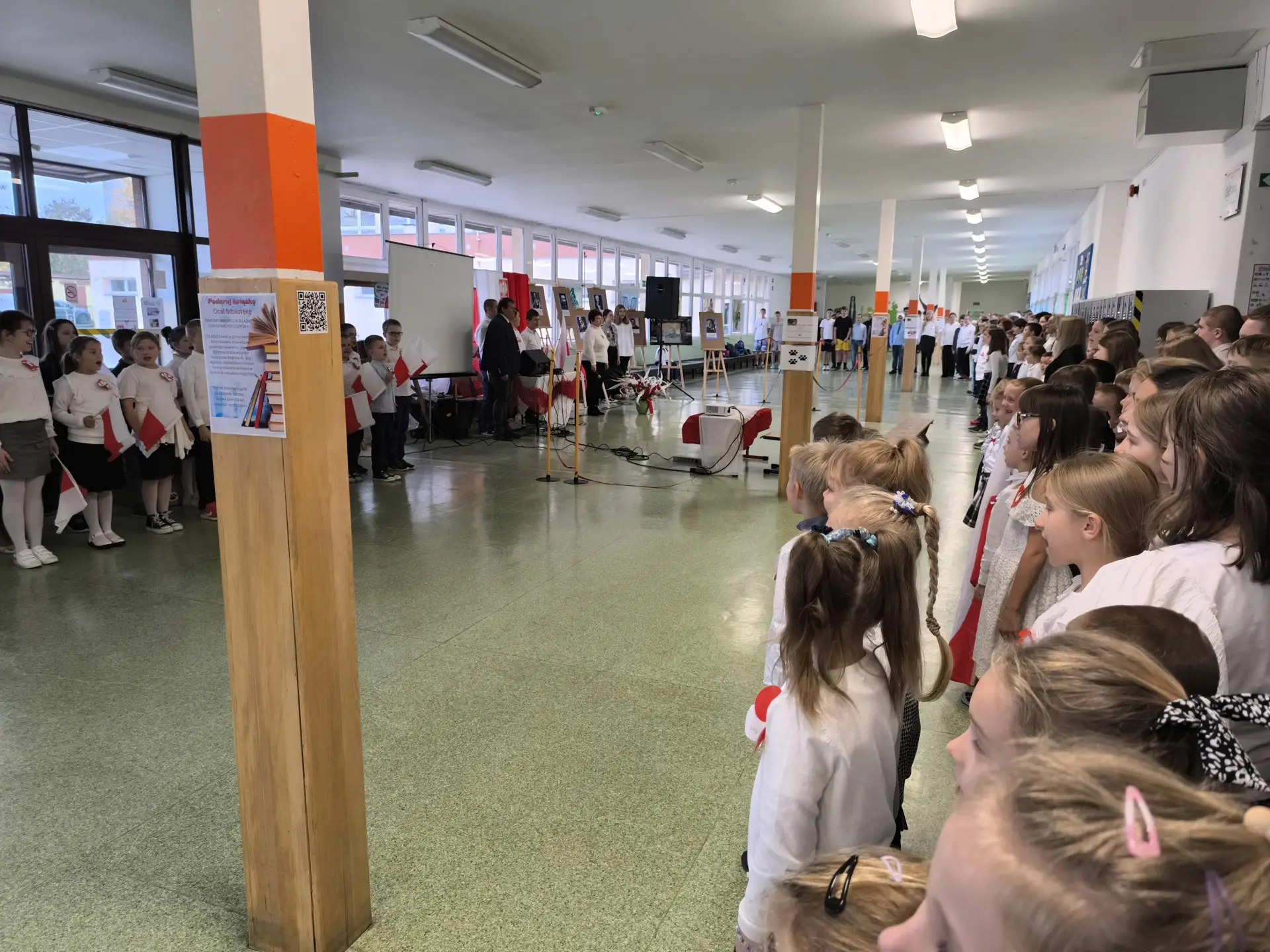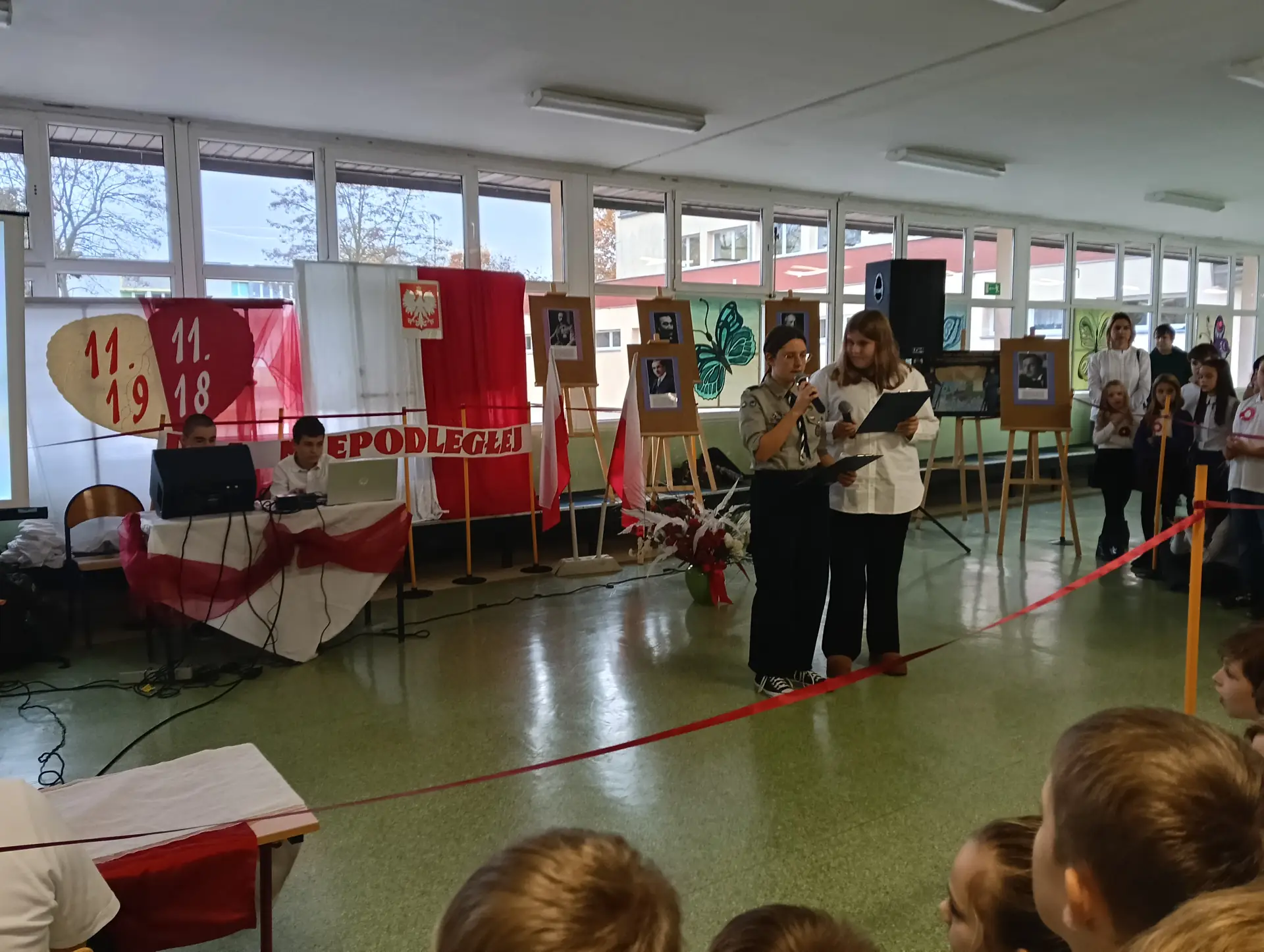 11 listopada 1918 r. zakończyła się I wojna światowa. Tego dnia, po 123 latach niewoli, nasza Ojczyzna odzyskała wolność. Tegoroczne obchody Narodowego Święta Niepodległości w naszej szkole miały ciekawy przebieg. W piątek 8 listopada 2024 r. mogliśmy oglądać wystawę poświęconą Bohaterom Tamtych Dni oraz prezentacje multimedialne dotyczące odzyskania przez Polskę niepodległości. W czasie przerw towarzyszyła nam muzyka patriotyczna. Ponadto nasza szkoła przystąpiła do ogólnopolskiej akcji "Szkoła do Hymnu". O godzinie 11.11 uczniowie zgromadzili się na holu, aby wspólnie z nauczycielami odśpiewać tę ważną dla naszego kraju pieśń - hymn Polski - "Mazurek Dąbrowskiego". Uczniowie i nauczyciele, aby podkreślić uroczysty charakter tego dnia, ubrali się w stroje galowe i przypięli kotyliony. Tegoroczną akcję wspaniale przygotowali i poprowadzili uczniowie z klasy 6c - Jagoda, Magda i Bartek. Przy obsłudze szkolnego sprzętu nagłaśniającego pomagali chłopcy z klasy 6c i 7a. Serdecznie dziękujemy.