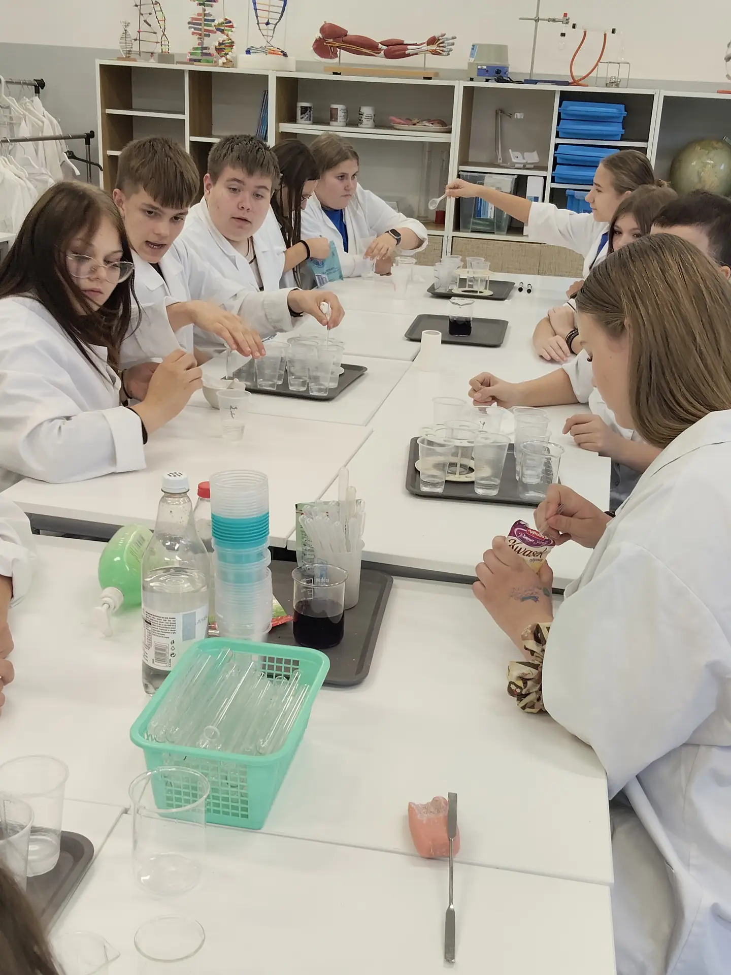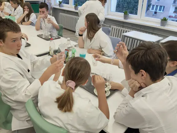 Młodzi Adepci Chemii przeprowadzili fascynujące doświadczenie z wykorzystaniem wywaru z czerwonej kapusty jako naturalnego wskaźnika pH.