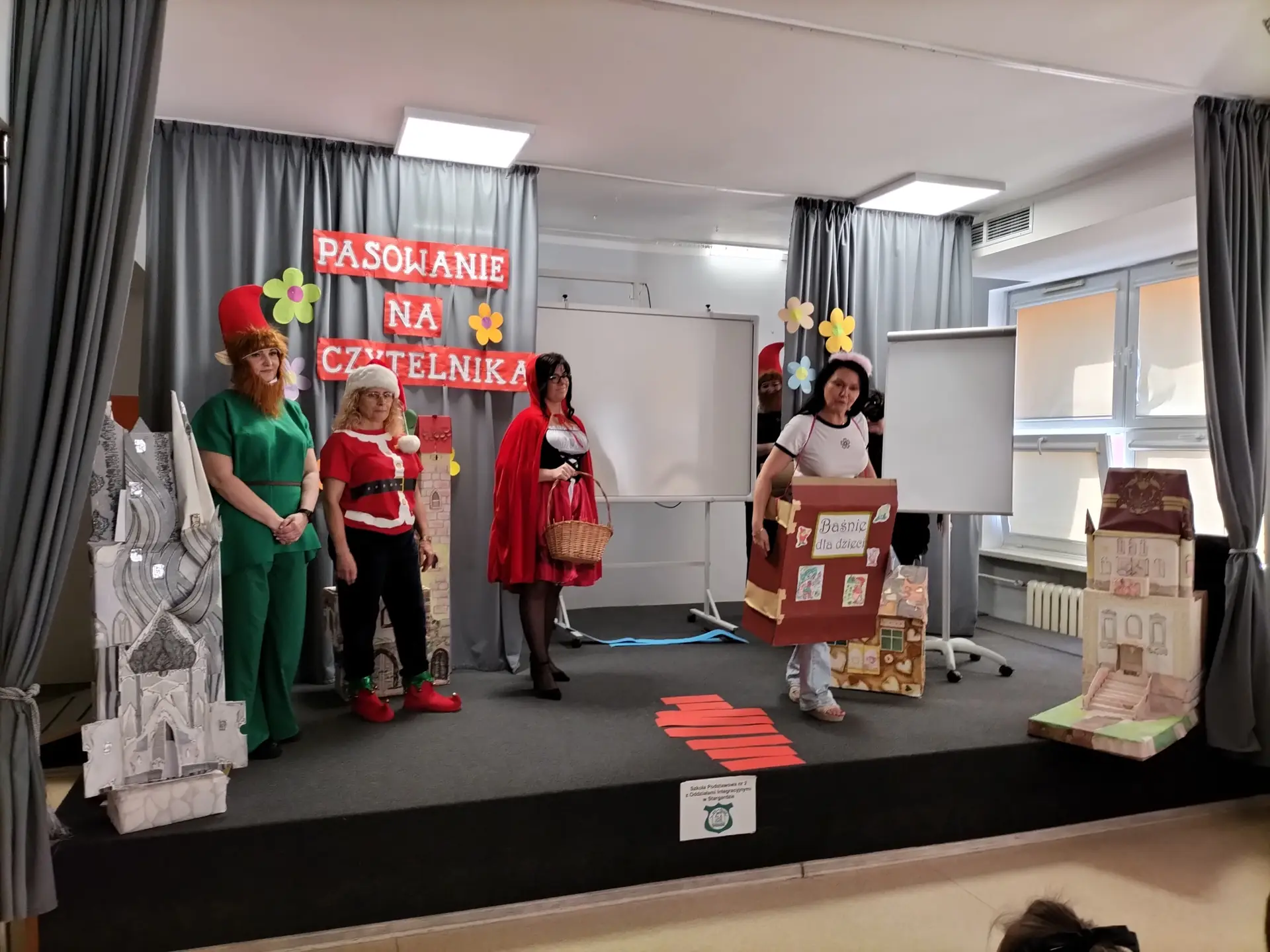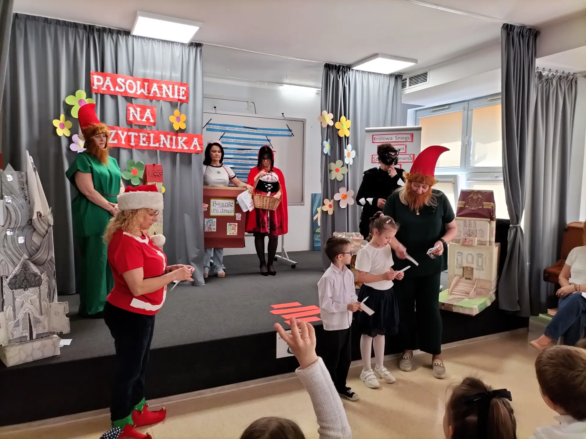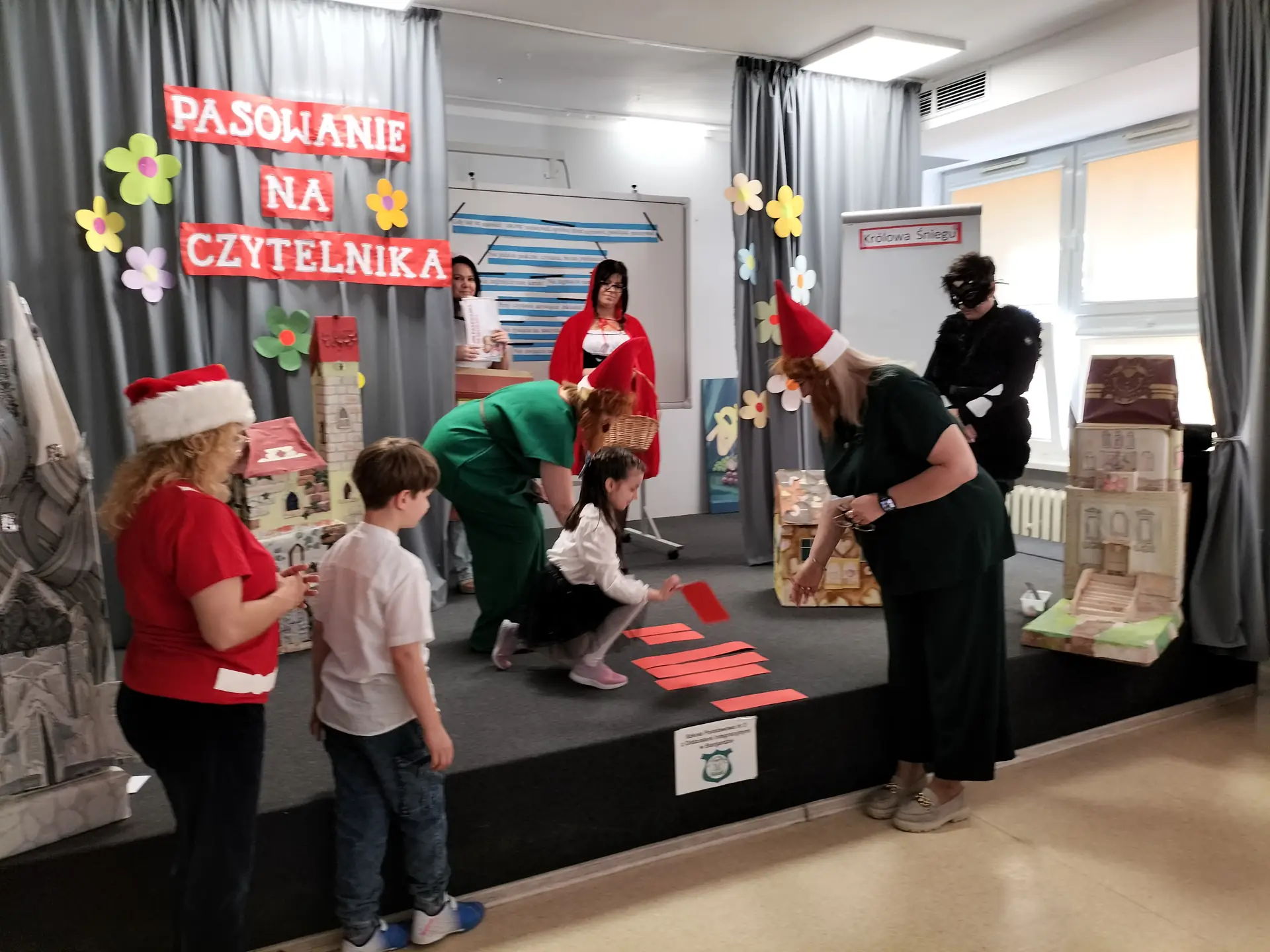 30 kwietnia 2025 r. w naszej szkole odbyło się uroczyste Pasowanie na Czytelnika uczniów klas I. Wydarzenie było dla pierwszoklasistów wyjątkowym momentem, który na długo pozostanie w ich pamięci. Podczas uroczystości dzieci obejrzały przedstawienie pt. „Spotkanie z bohaterami z bajek”, w którym udział wzięły: p. wicedyrektor Małgorzata Lewandowska, wychowawczynie klas I: p. Beata Skupińska, p. Alicja Laskowska-Maślany, p. Agnieszka Borowska, p. Małgorzata Gawrysiak oraz nauczycielka świetlicy p. Barbara Kwacz.