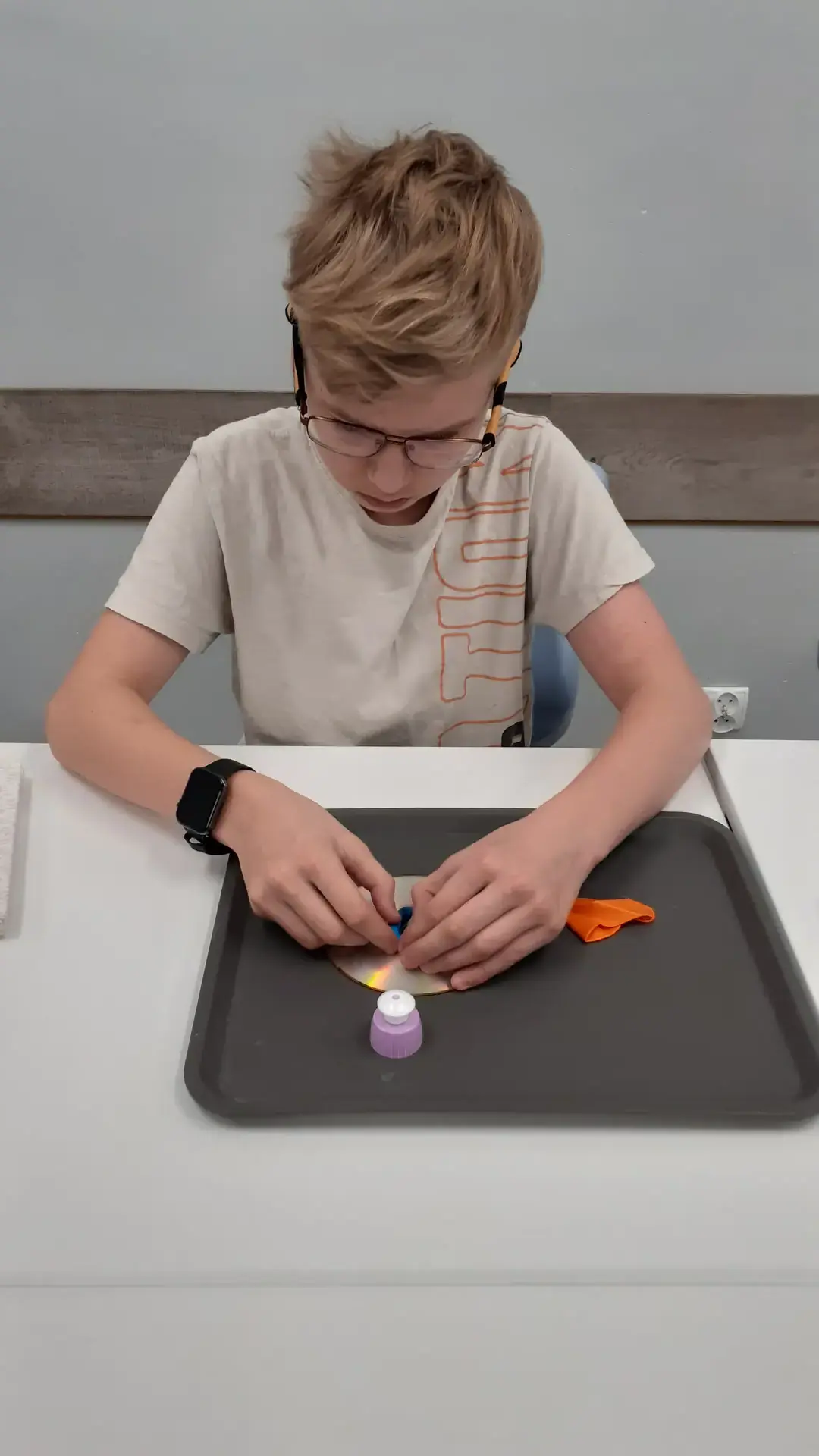 Przygotowaliśmy proste materiały: balon, płyta CD, korek od płynu do naczyń, kawałek plasteliny. Płyta CD to platforma, na której umieściliśmy korek i balon wypełniony powietrzem. Aby model mógł się poruszać konieczne było utworzenie przepływu powietrza między korkiem a balonikiem. Dopóki w baloniku było powietrze poduszkowiec poruszał się. To jak długo poduszkowiec unosi się nad blatem, zależy od ilości powietrza w baloniku oraz od wielkości otworu przez który ono się wydostaje. Wysokość, na którą się unosił była niewielka, ponieważ siła parcia szybko malała. Szukaliśmy różnych powierzchni dla naszych poduszkowców. Podróżował po ławkach i podłodze. Najlepszym podłożem jest gładka powierzchnia.