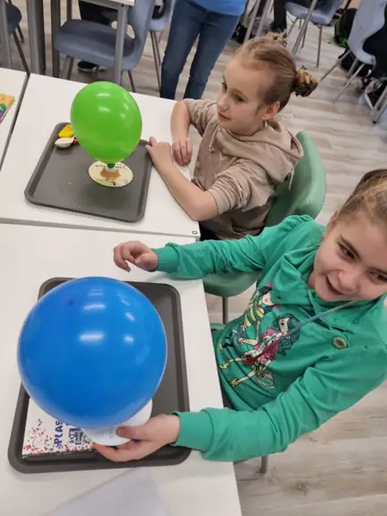 Podczas zajęć koła przyrodniczego uczniowie postanowili wykonali eksperyment naukowy obrazujący siłę powietrza, poznać wady i zalety pojazdów wykorzystujących tę moc.