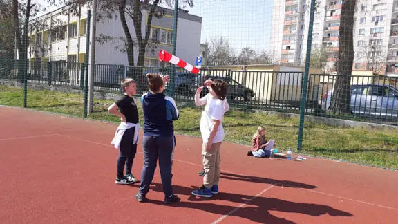 - uczniowie dokonywali pomiarów: temperatury powietrza (termometr cieczowy), kierunku i prędkości wiatru (wiatrowskaz, anemometr) zachmurzenia nieba i nasłonecznienia,