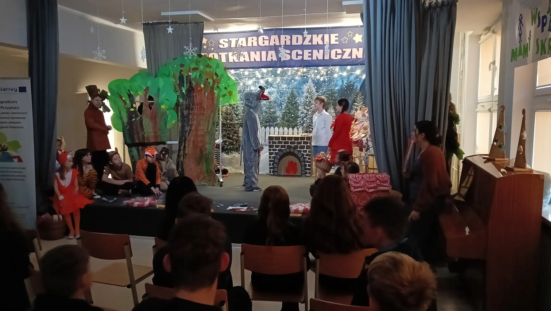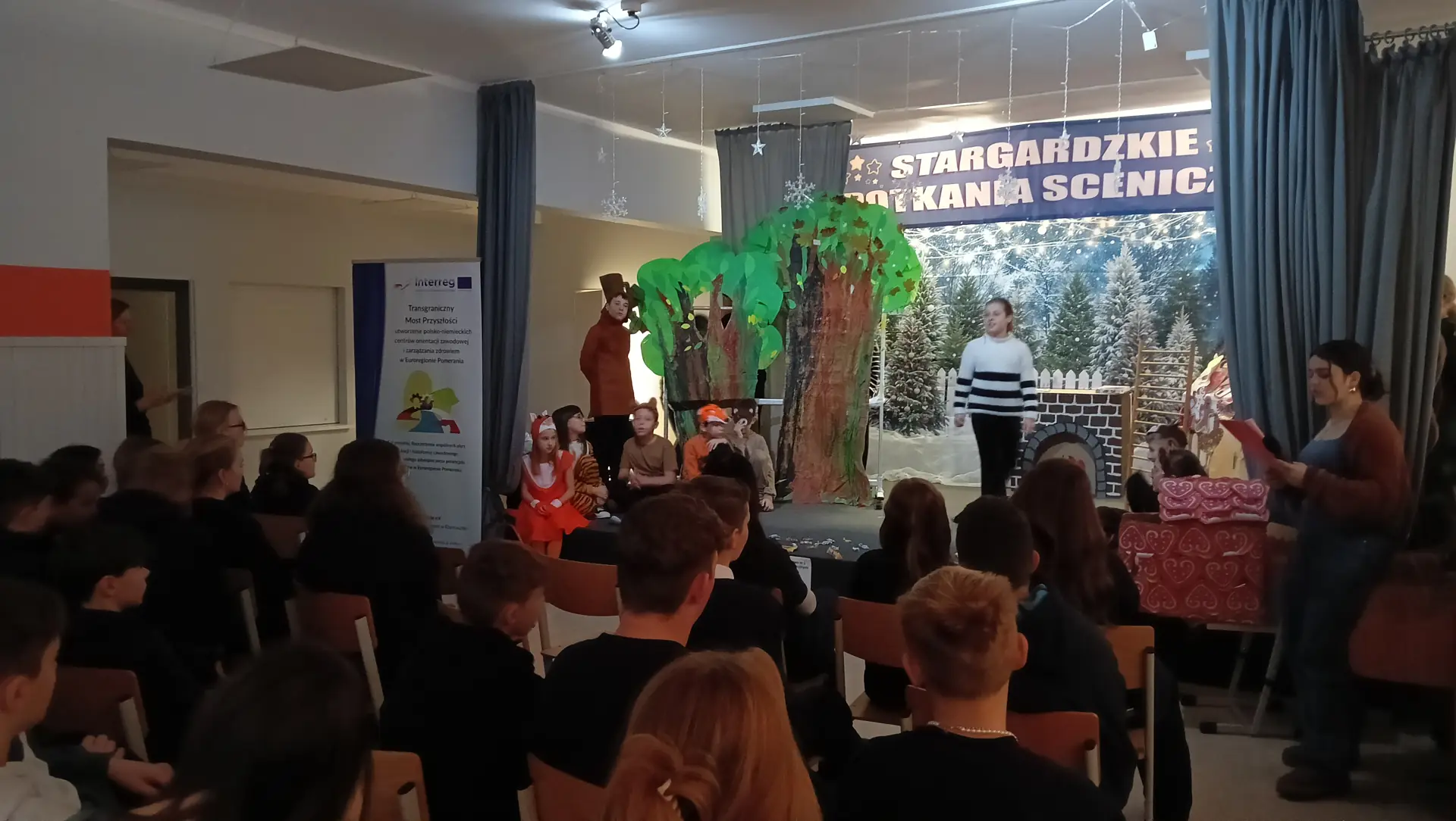 W dniu 10 grudnia do naszej szkoły przyjechali z wizytą uczniowie ze szkoły Oberbarnimschulen w Eberswalde. Celem spotkania, które wynikało z realizacji projektu Transgraniczny Most Przyszłości, był teatr. Podczas spotkania można było obejrzeć dwa przedstawienia przygotowane przez uczniów obu szkół. Klasa 4b z naszej szkoły przedstawiła sztukę: "Jaś i Małgosia", a uczniowie z Niemiec -" Kopciuszka". Po występach na scenie, odbyła się dyskusja, podczas której uczniowie rozmawiali o teatrze, jego roli w życiu człowieka oraz o swoich doświadczeniach i odczuciach związanych z grą aktorską. Był także czas na wspólny obiad- degustację pierogów, a także na oprowadzenie przyjaciół z Niemiec po naszej szkole. To spotkanie było kolejną okazją by lepiej się poznać oraz spróbować swoich sił na scenie przed międzynarodową publicznością.