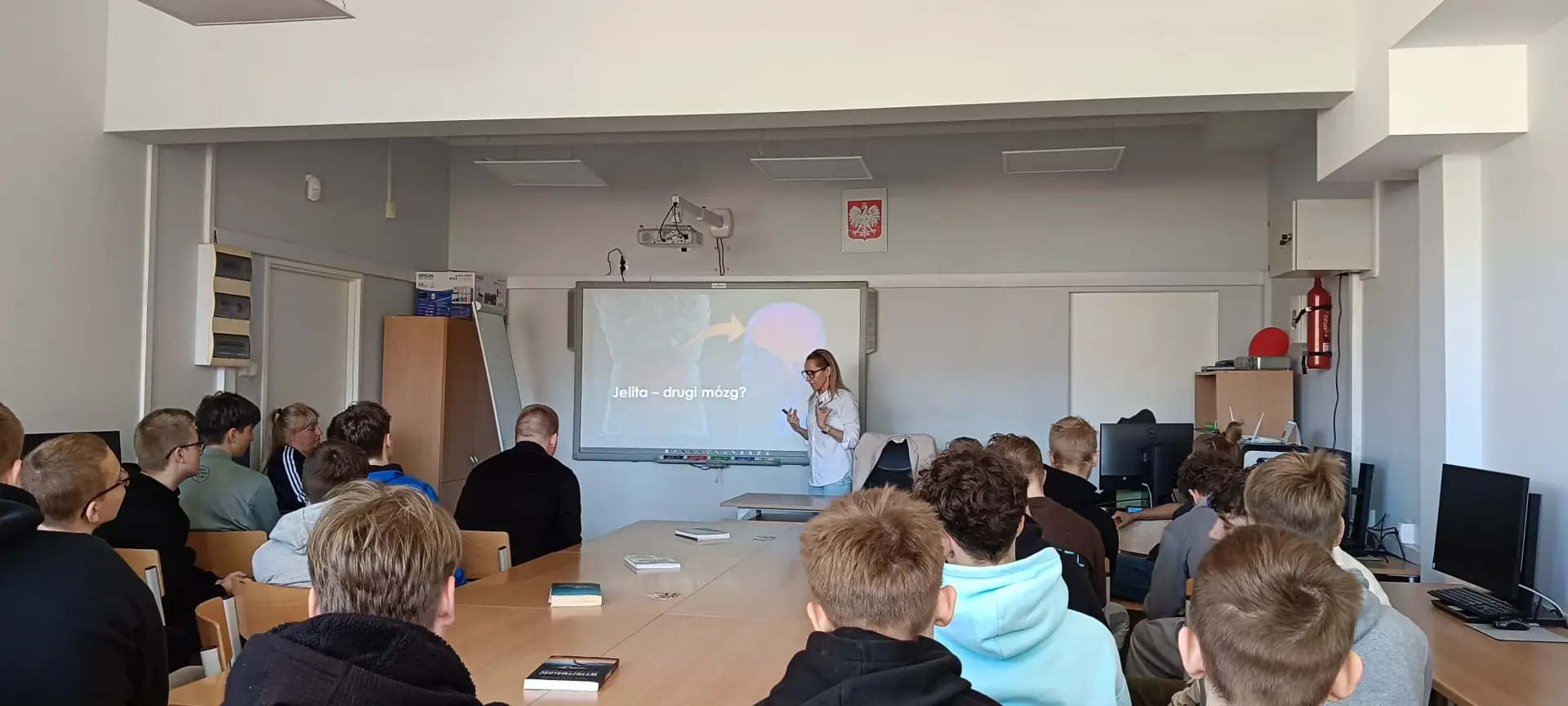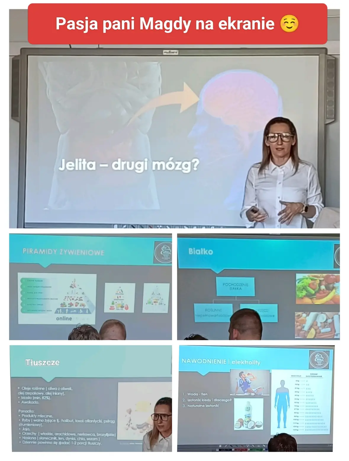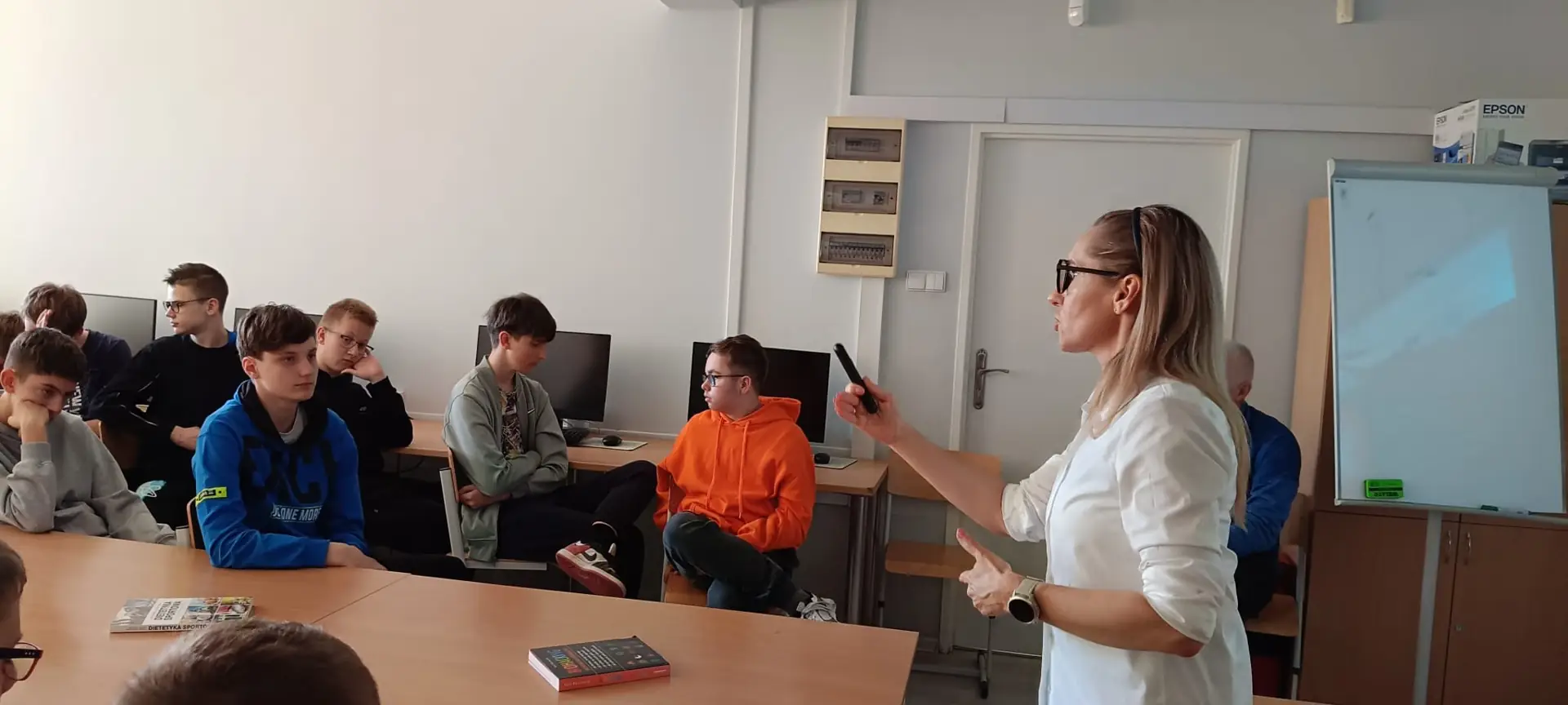 Nie zabrakło również pytań ze strony uczniów – pani Magda chętnie rozwiała wątpliwości dotyczące odżywek białkowych, elektrolitów oraz napojów energetycznych. Wielokrotnie podkreślała, jak ważne jest świadome i odpowiedzialne podejście do ich stosowania.
