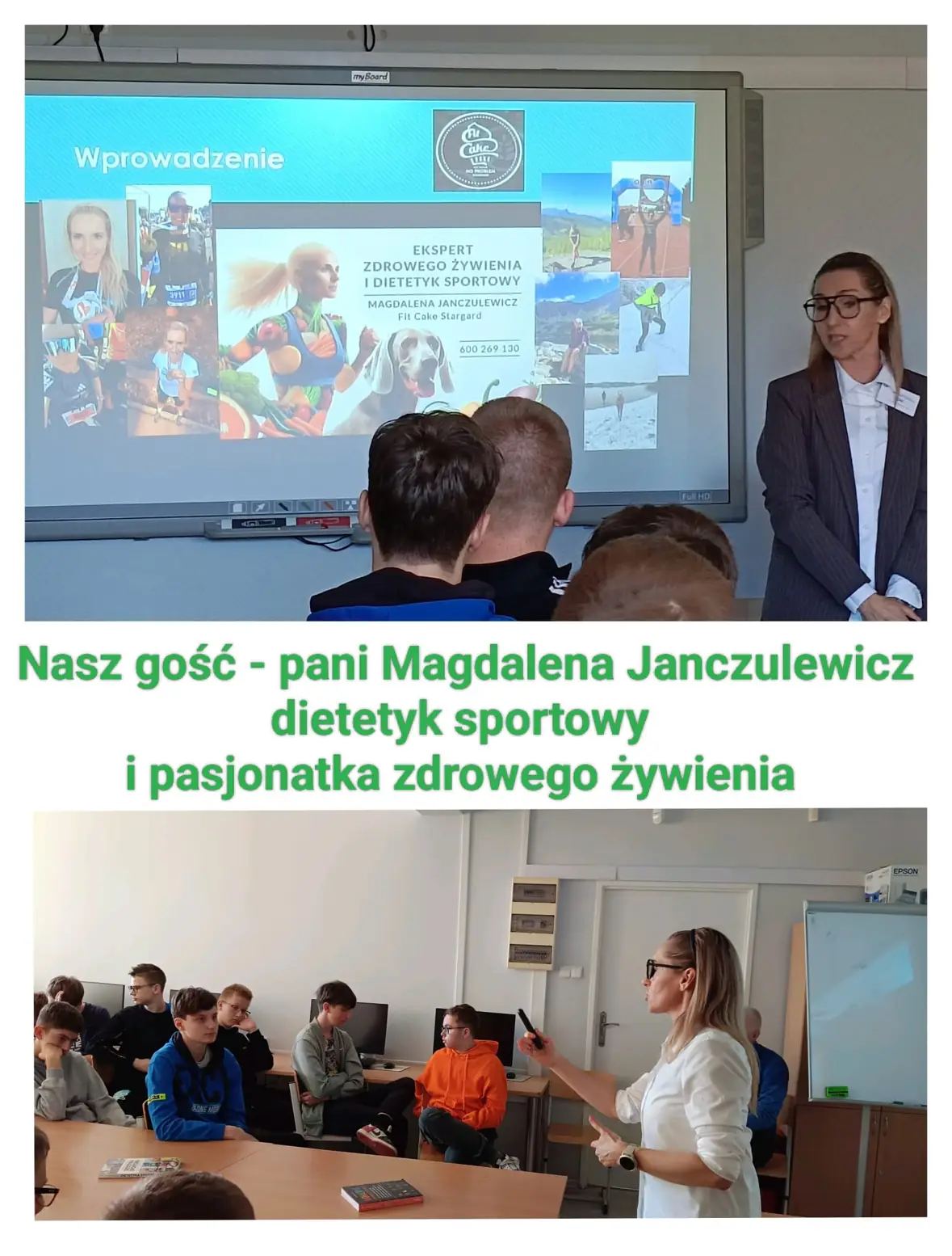 Dnia 28.04.2026r., w ramach "Tygodnia Szkoły Promującej Zdrowie" mieliśmy przyjemność gościć wyjątkową osobę – dietetyka sportowego oraz pasjonatkę zdrowego stylu życia, panią Magdalenę Janczulewicz, właścicielkę Fit Cake
