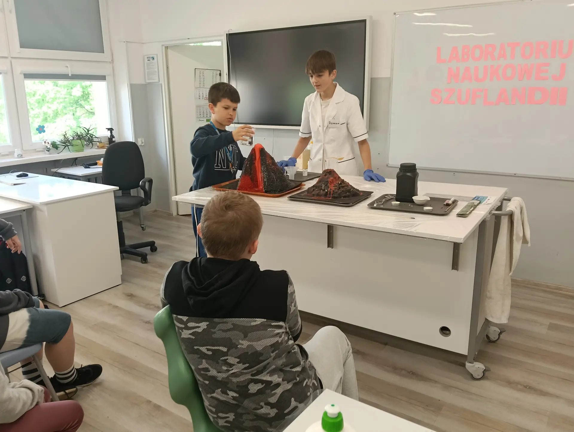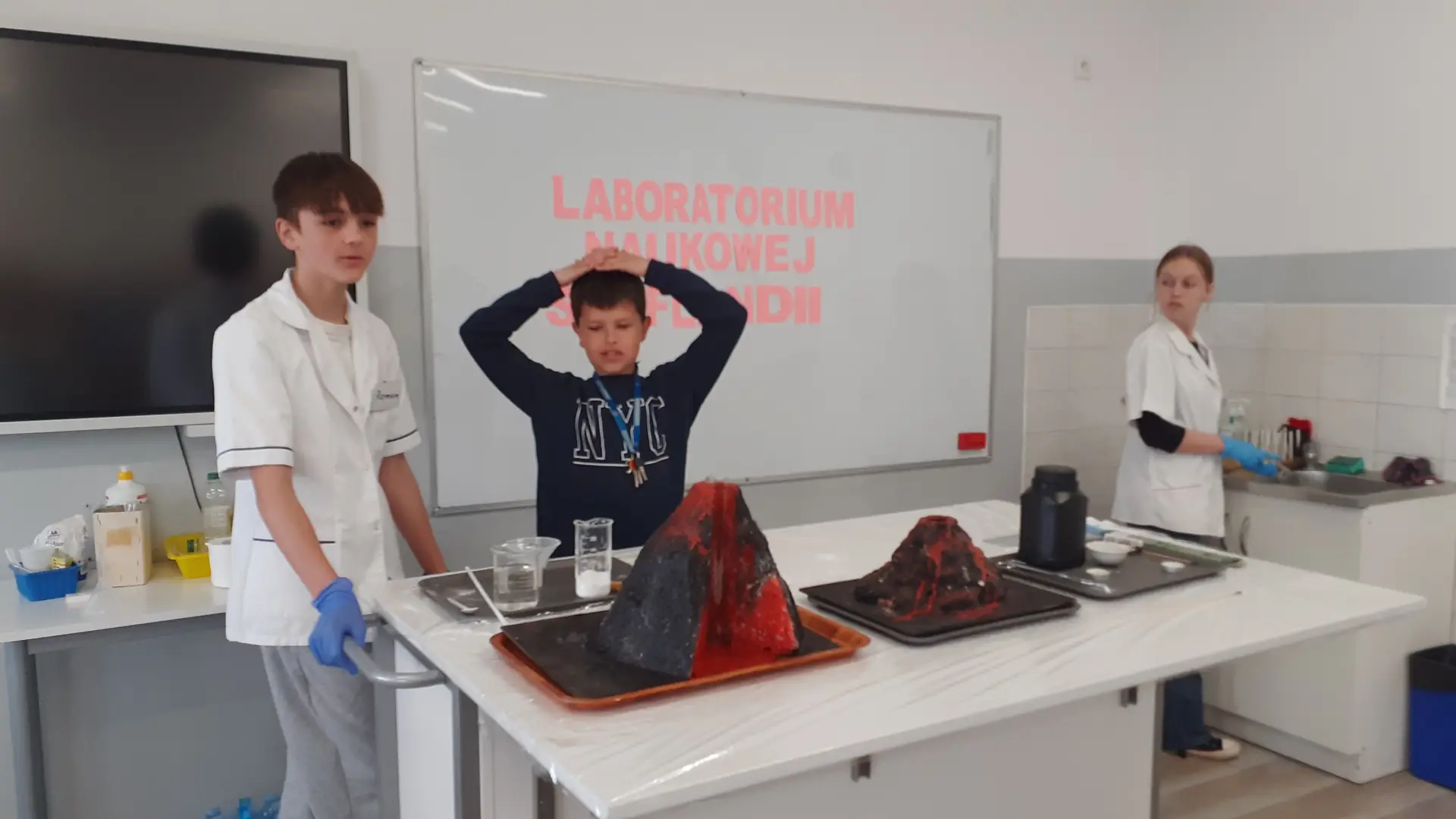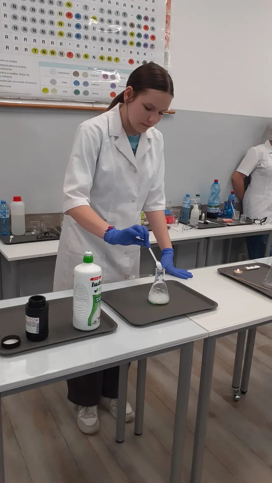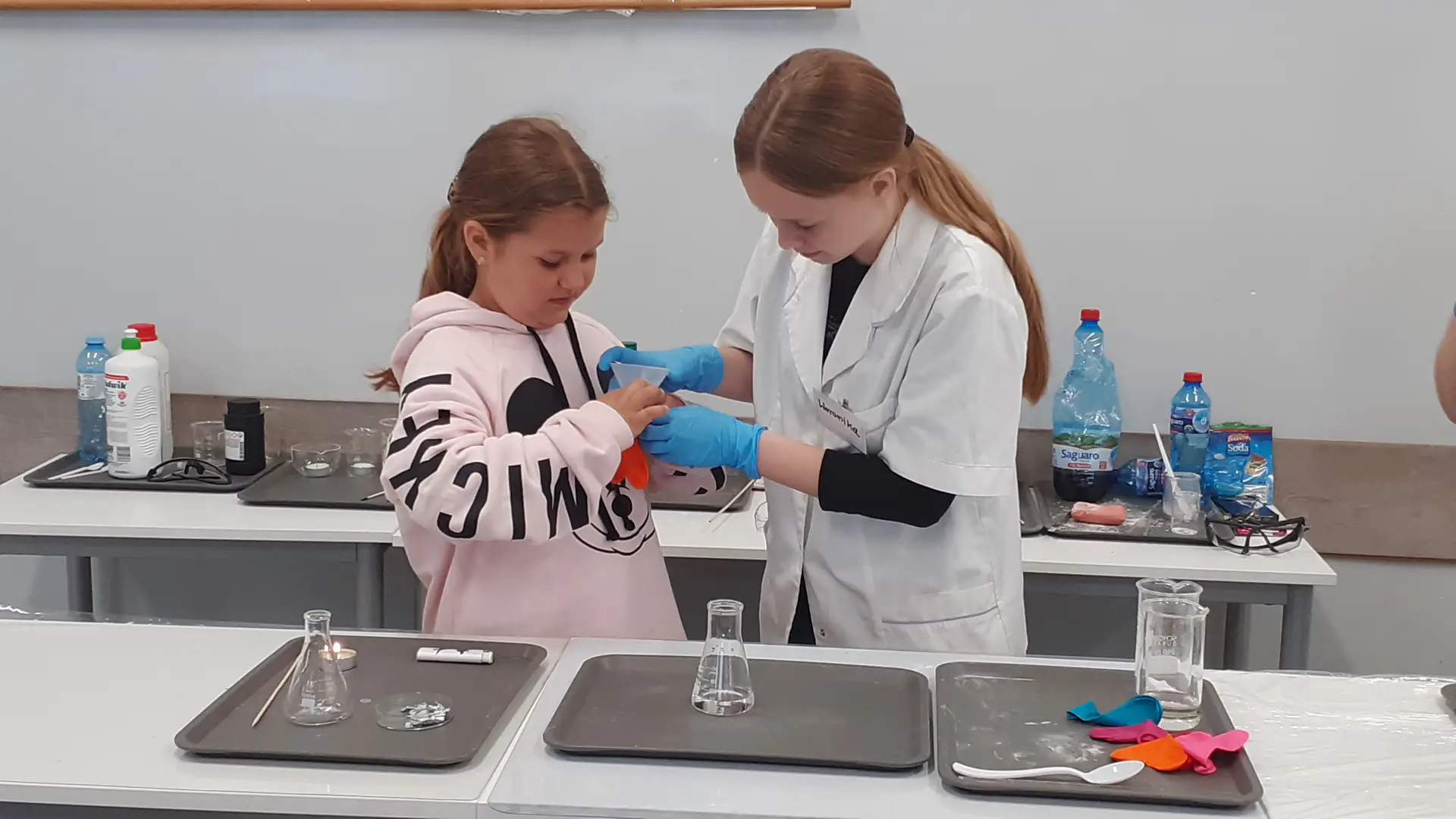 Młodzi Adepci Chemii (koło chemiczne) pod kierunkiem Pani Moniki Sikorskiej przygotowali dla swoich kolegów i koleżanek z klas IV-tych pokaz doświadczeń chemicznych. Uczniowie wzięli również udział w pokazie eksperymentów fizycznych przygotowanych przez uczniów z klas: VIII a i VIII b pod kierunkiem Pani Moniki Walewskiej.
