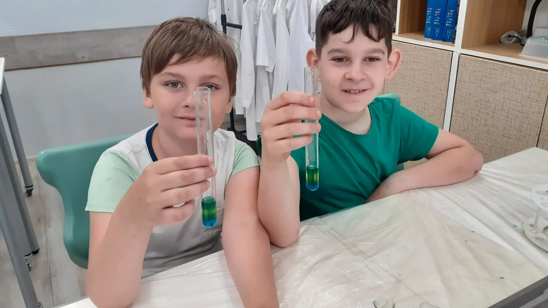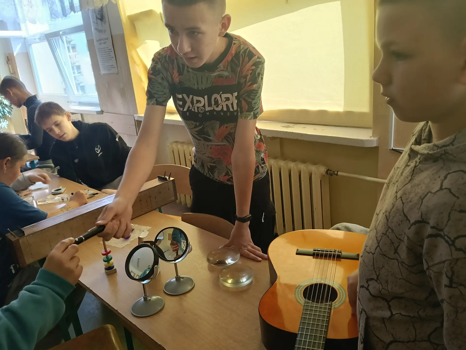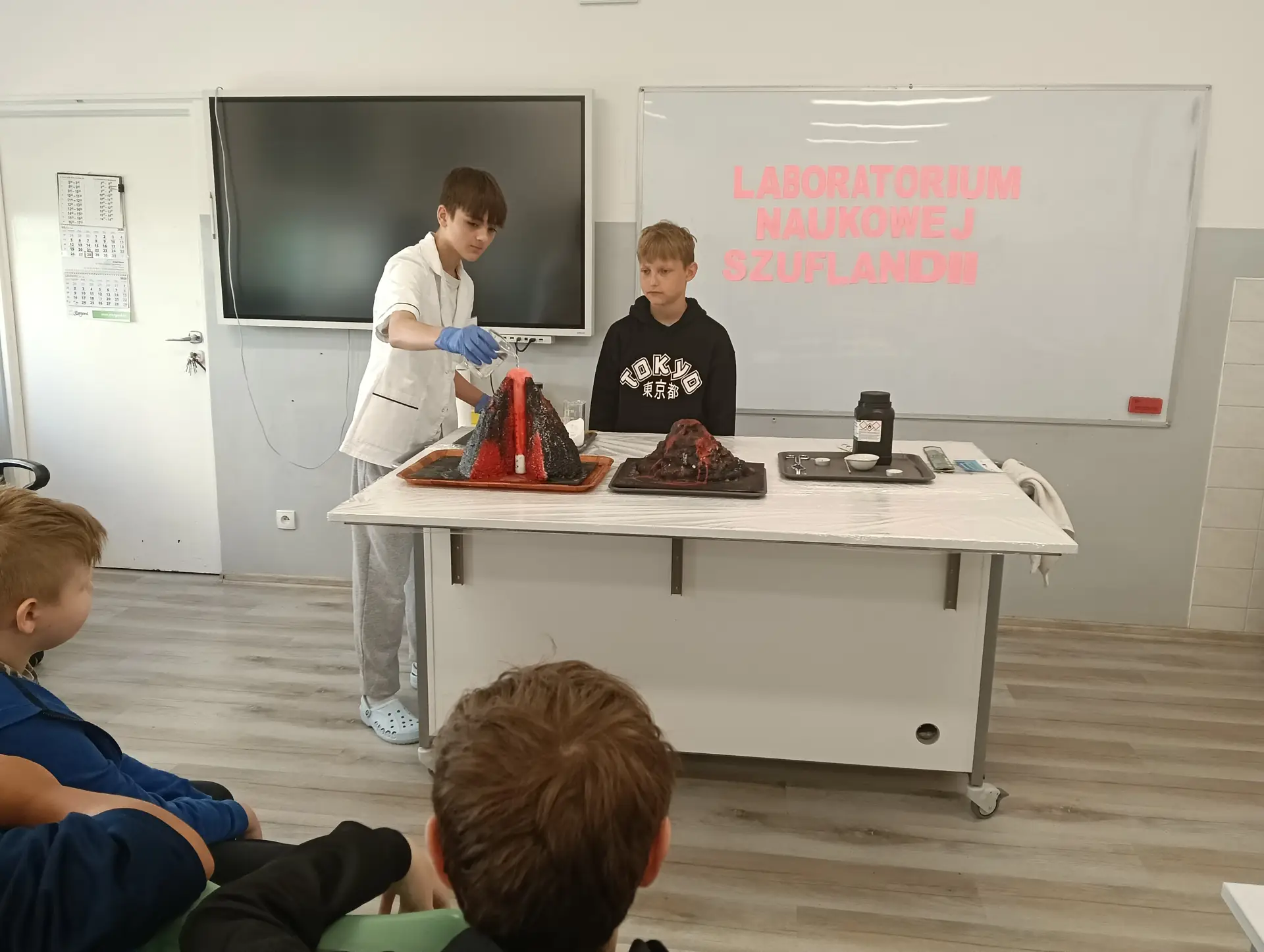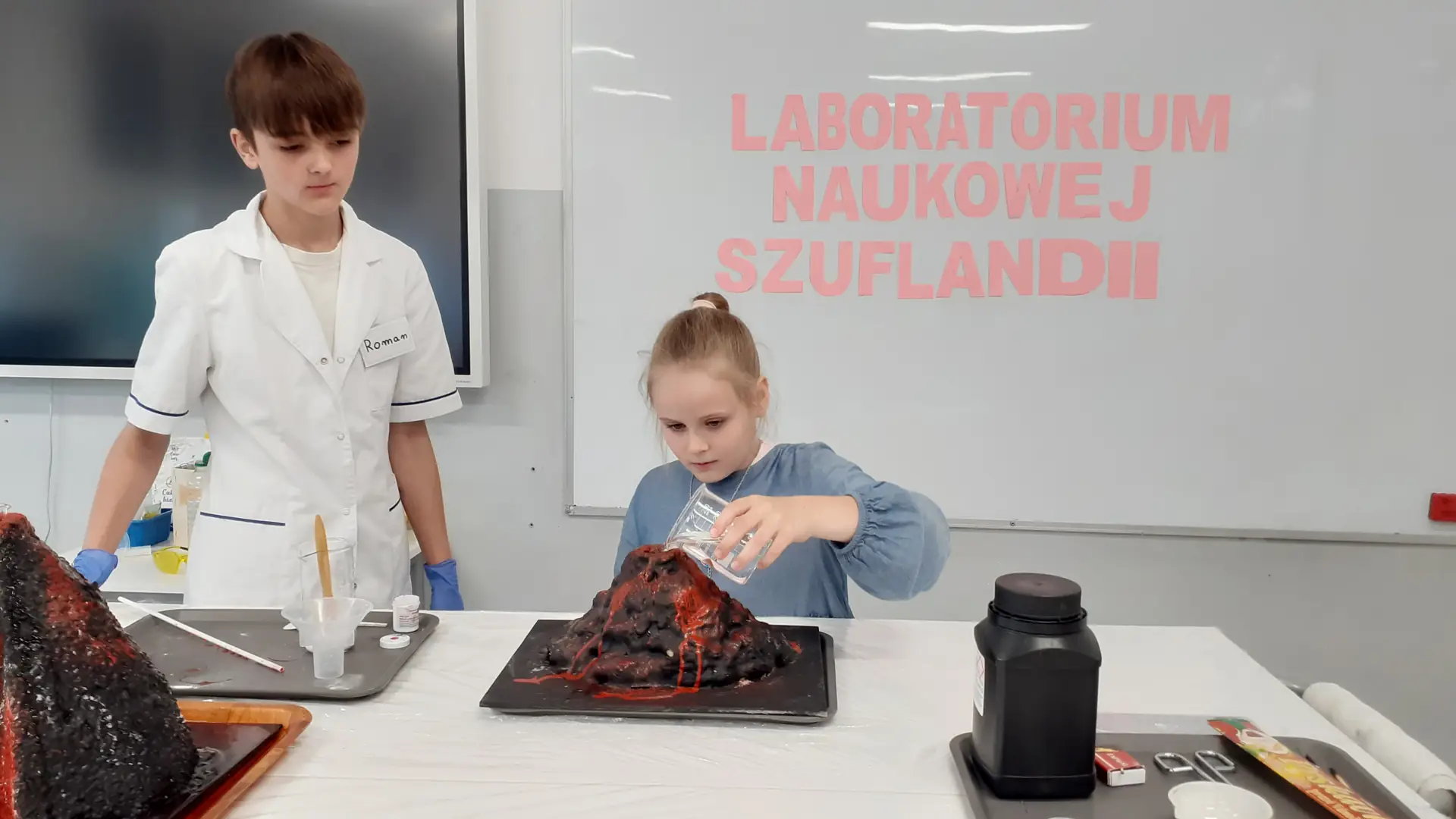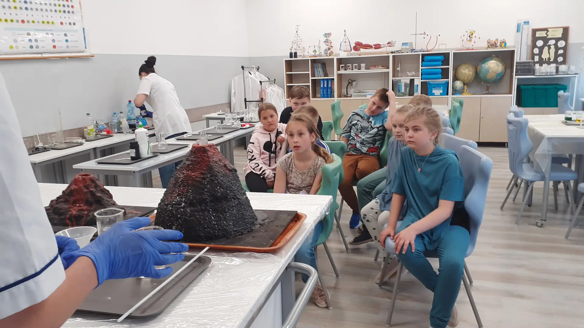 Młodzi Adepci Chemii (koło chemiczne) pod kierunkiem Pani Moniki Sikorskiej przygotowali dla swoich kolegów i koleżanek z klas IV-tych pokaz doświadczeń chemicznych. Uczniowie wzięli również udział w pokazie eksperymentów fizycznych przygotowanych przez uczniów z klas: VIII a i VIII b pod kierunkiem Pani Moniki Walewskiej.