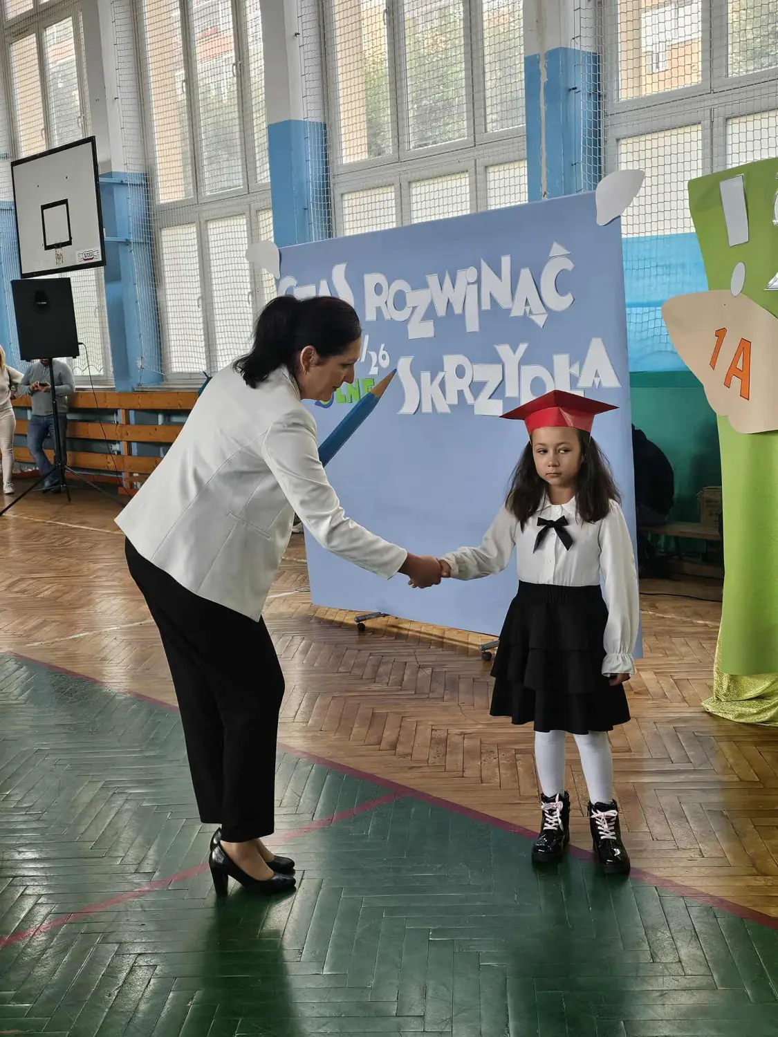 10 października 2025 roku w naszej szkole odbyło się uroczyste ślubowanie uczniów klas pierwszych. To wyjątkowe wydarzenie zgromadziło nie tylko pierwszoklasistów, ale również ich rodziców, nauczycieli oraz dyrekcję szkoły. Uroczystość rozpoczęła się od części artystycznej przygotowanej przez uczniów klas pierwszych, którzy z dumą zaprezentowali swoje umiejętności wokalne. Następnie odbył się uroczysty akt ślubowania, podczas którego dzieci przyrzekały być pilnymi uczniami, szanować nauczycieli i kolegów oraz dbać o dobre imię szkoły. Po złożeniu ślubowania wychowawcy klas dokonali symbolicznego pasowania na ucznia, dotykając ramienia każdego pierwszoklasisty wielkim ołówkiem. Wszyscy nowi uczniowie otrzymali pamiątkowe dyplomy oraz drobne upominki. To był dzień pełen emocji, wzruszeń i radości – zarówno dla dzieci, jak i dla ich rodziców. Gratulujemy wszystkim pierwszoklasistom i życzymy im wielu sukcesów w szkolnej przygodzie!