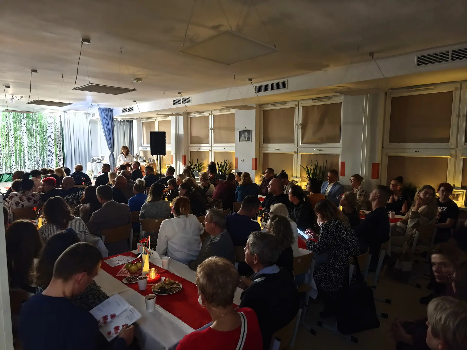 Czwartkowy wieczór w naszej szkole pachniał makami, brzmiał dźwiękiem pianina, akordeonu i szeptem brzozowych gałązek. W blasku świec, pośród białych obrusów i ciepłych świateł, zabrzmiały słowa i melodie, które niosły w sobie pamięć – o tych, którzy śpiewali, gdy wolność była marzeniem.