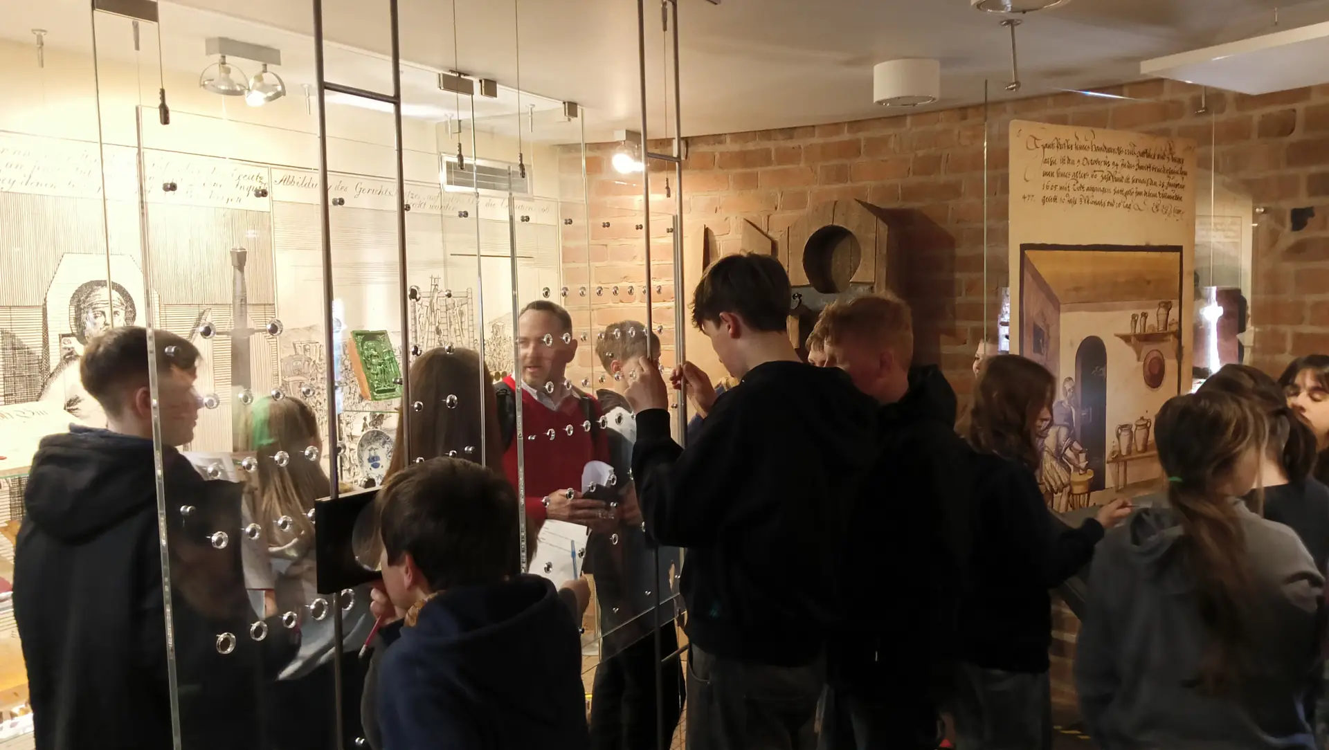 Podzieleni na cztery polsko-niemieckie grupy, uczniowie rozpoczęli dzień w Muzeum Archeologiczno-Historycznym - w Bastei, gdzie wykonywali zadania w kartach pracy i poznawali historię naszego regionu. Wśród eksponatów trzeba było odszukać np. atrybuty kata, portret Petera Gröninga- dawnego burmistrza Stargardu czy odszukać na globusie miasta, przez które przebiega Południk 15° wsch. Następnie grupy ruszyły na spacer po Stargardzie, odkrywając jego zabytki i urokliwe zakątki. Podczas spaceru uczniowie mieli kolejne wyzwania do wykonania- np. odczytanie czasu na zegarze słonecznym czy ułożenie puzzli z herbem naszego miasta.