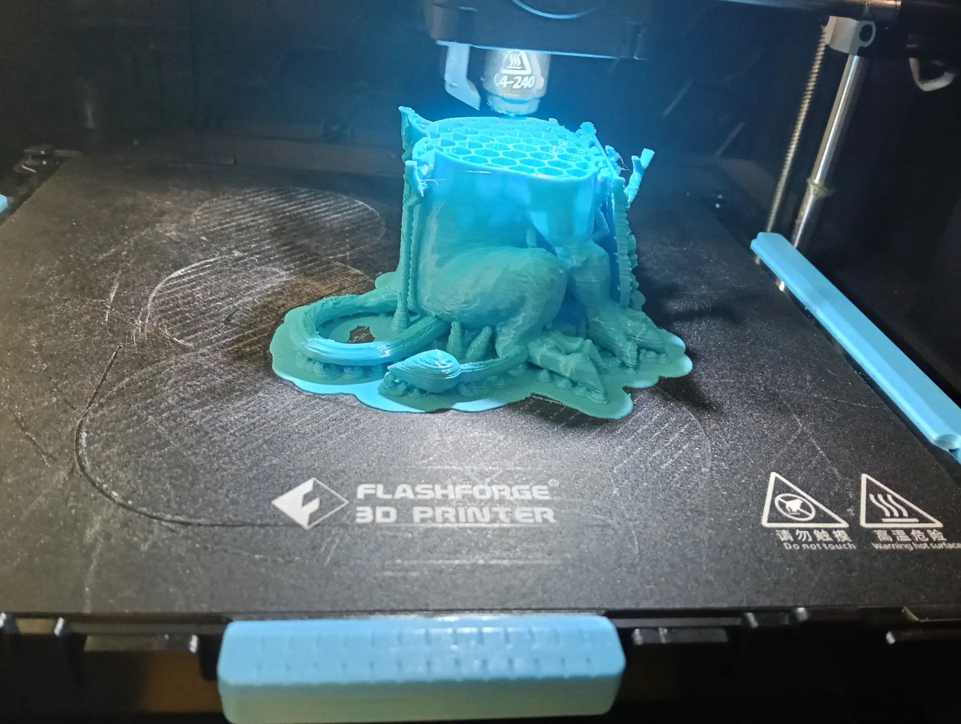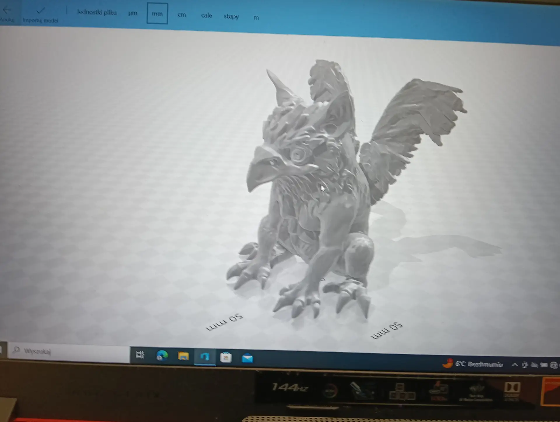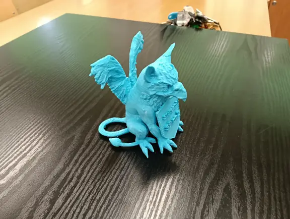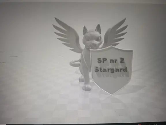 Druga połowa września i październik upłynęły nam na opracowywaniu projektu szkolnego Gryfika (w oparciu o Gryfika stargardzkiego) a także małych Gryfików w postaci bryloczków lub statuetek, w ramach wspólnego projektu historyczno-informatycznego. Obydwa zadania okazały się bardzo trudne. Od razu zostaliśmy rzuceni na „głęboką wodę”. Wymodelowanie złożonego kształtu Gryfika w programie 3D wymaga jednocześnie bardzo wysokich umiejętności technicznych i artystycznych. Realizacja tego projektu nie była by możliwa, gdyby nie zaawansowane i dedykowane do takich zastosowań aplikacje AI. Sięgnęliśmy zatem po rozwiązania z obszaru Sztucznej Inteligencji. Odszukaliśmy program o nazwie tripo3D.ai, który umożliwił nam wygenerowanie modelu 3D Gryfika z dwuwymiarowego zdjęcia. Program jest częściowo darmowy w wersji podstawowej i pozwala w ramach tzw. „kredytów” wygenerować kilka modeli 3D. Warunkiem jest zarejestrowanie się w programie. Choć program ma bardzo duże możliwości, nie jest idealny i czasami popełnia błędy. Za którymś razem, kiedy podejmowaliśmy kolejną próbę generowania modelu, otrzymaliśmy Gryfika, który miał aż pięć! (zamiast czterech) kończyn. Dużym ułatwieniem pracy w tym programie jest interfejs dostępny w języku polskim, a także możliwość wprowadzenia dodatkowego opisu słownego, dotyczącego tworzonego modele 3D. Jednak naszym celem nie było zwyczajne powielenie oryginalnego stargardzkiego Gryfika, ale stworzenie własnego. Należało zatem połączyć wiele różnych cech różnych Gryfików w jeden wyjątkowy nowatorski projekt. Wykorzystaliśmy do tego programy 3D Builder i Tincercad – i tak powstał nasz szkolny (na razie prototyp) Gryfik z innym ogonem, innymi skrzydłami i z zaprojektowaną tarczą szkoły (wraz z logo szkoły). Skalowanie modelu okazało się równie trudne, co jego wygenerowanie. Podczas zmniejszania do wielkości bryloczków lub statuetek, ujawniły się różne niedoskonałości wygenerowanego modelu, np. cienka i krucha, a przez to delikatna jego struktura. Jednak po wielu próbach i przeróbkach, udało nam się znaleźć optymalny model.