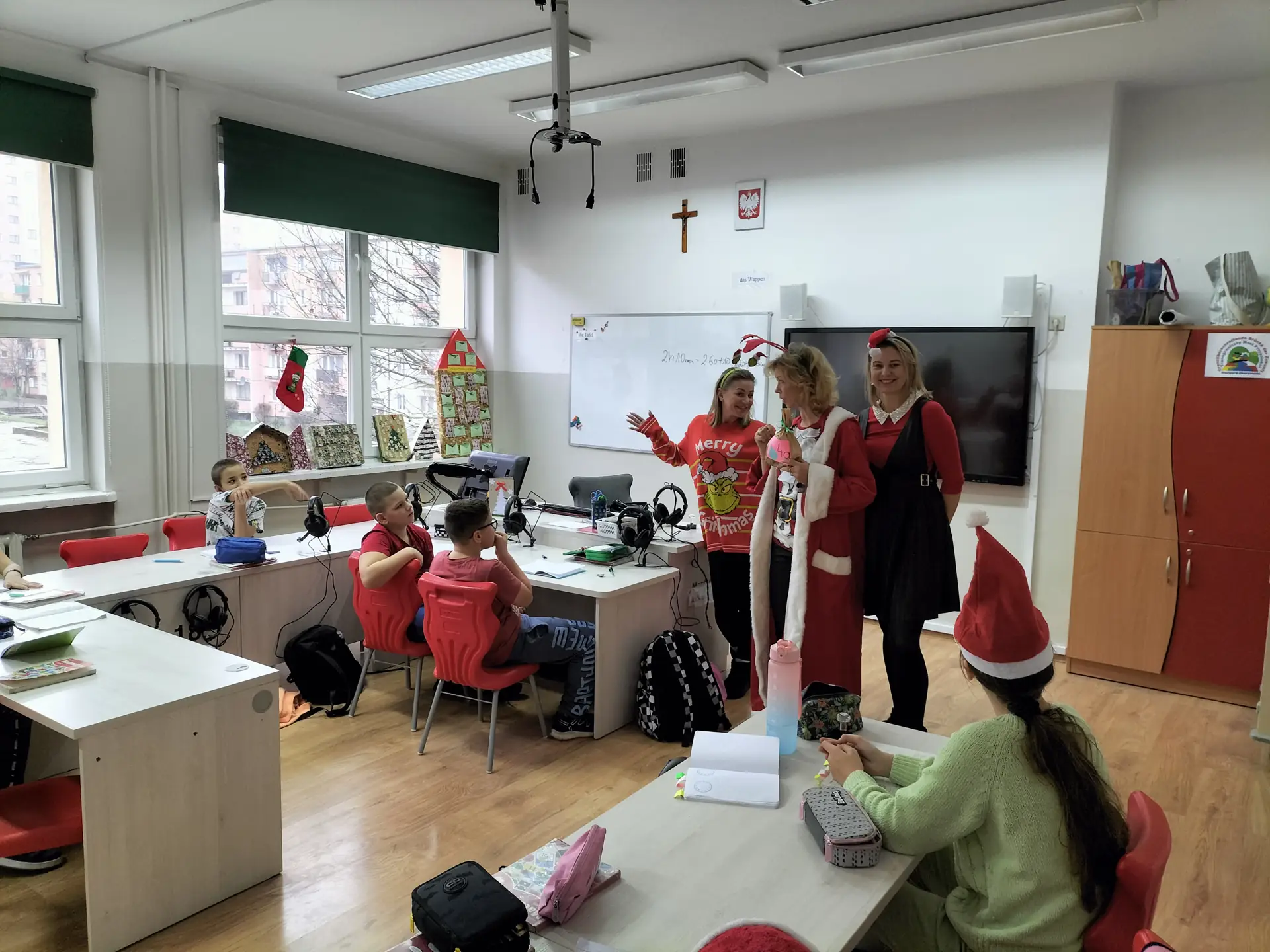 6 grudnia p. bibliotekarki w strojach mikołajkowych odwiedziły wszystkie klasy i obdarowały dzieci i młodzież smakołykami. Zachęcały wszystkich uczniów do udziału w działaniach czytelniczych mających na celu propagowanie czytelnictwa wśród rówieśników. Zaproponowały wszystkim uczniom udział w pisaniu recenzji na podstawie przeczytanej przez siebie książki. Propozycje uczniów będą przedstawione na zorganizowanej w szkole wystawie. Panie Mikołajowe zajrzały również do pokoju nauczycielskiego, gdzie zostawiły dla wszystkich nauczycieli słodkości i zachęcały do odwiedzania biblioteki i wypożyczania nowości czytelniczych. Nie zapomniały o innych pracownikach szkoły, których częstowały