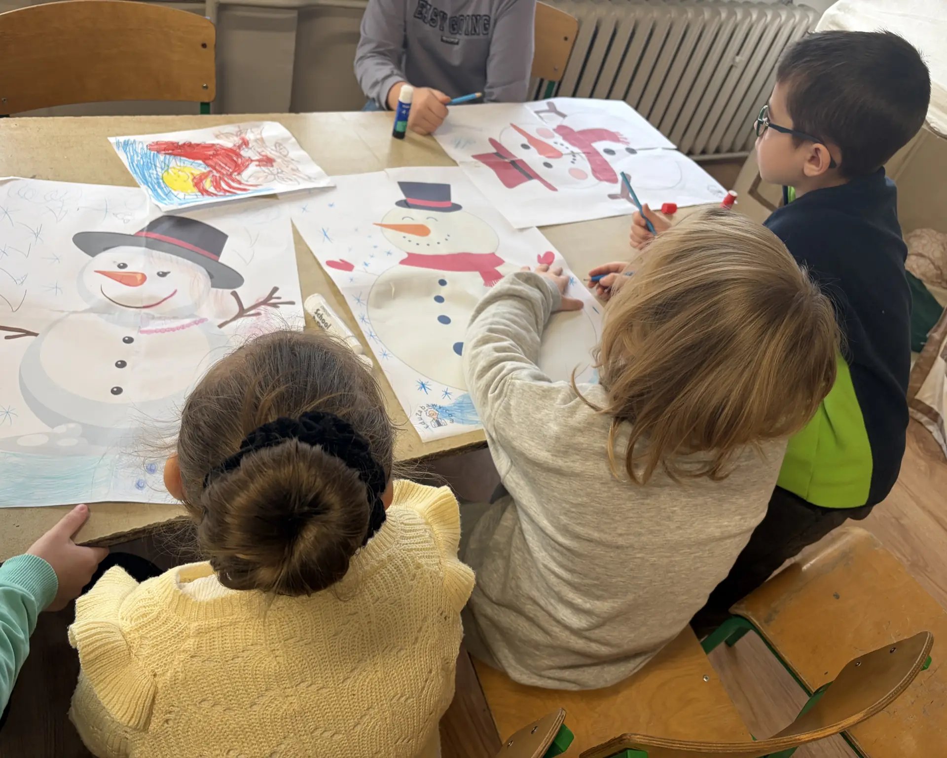 Nie zabrakło też wesołych bałwanków do kolorowania, które szybko zyskały kolorowe czapki, szaliki i szerokie uśmiechy.
