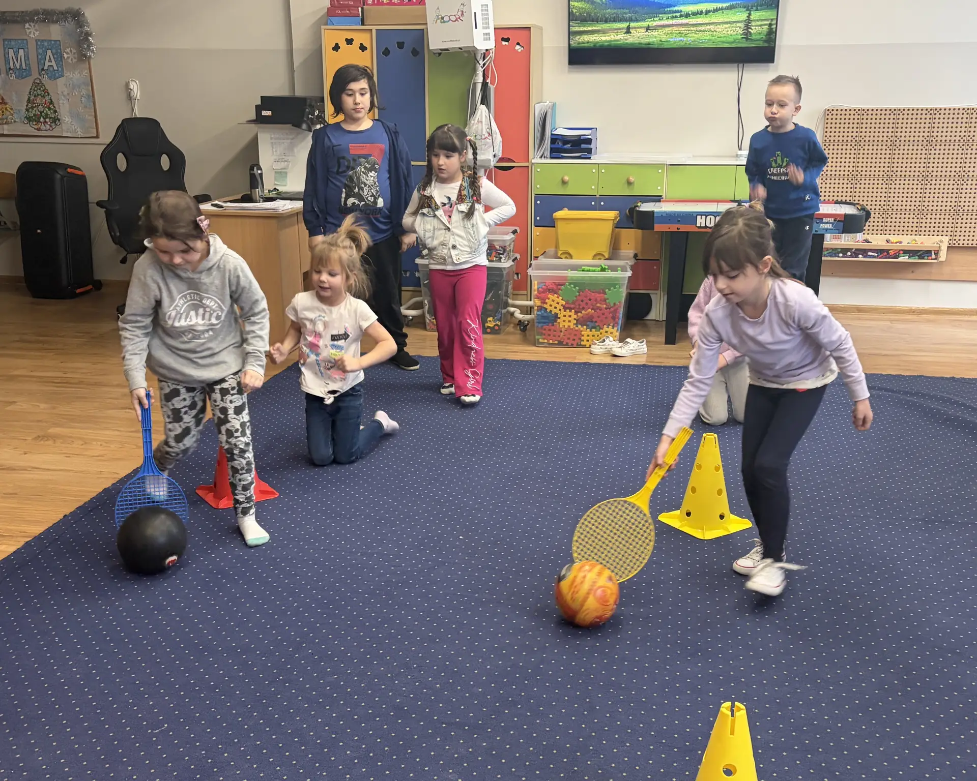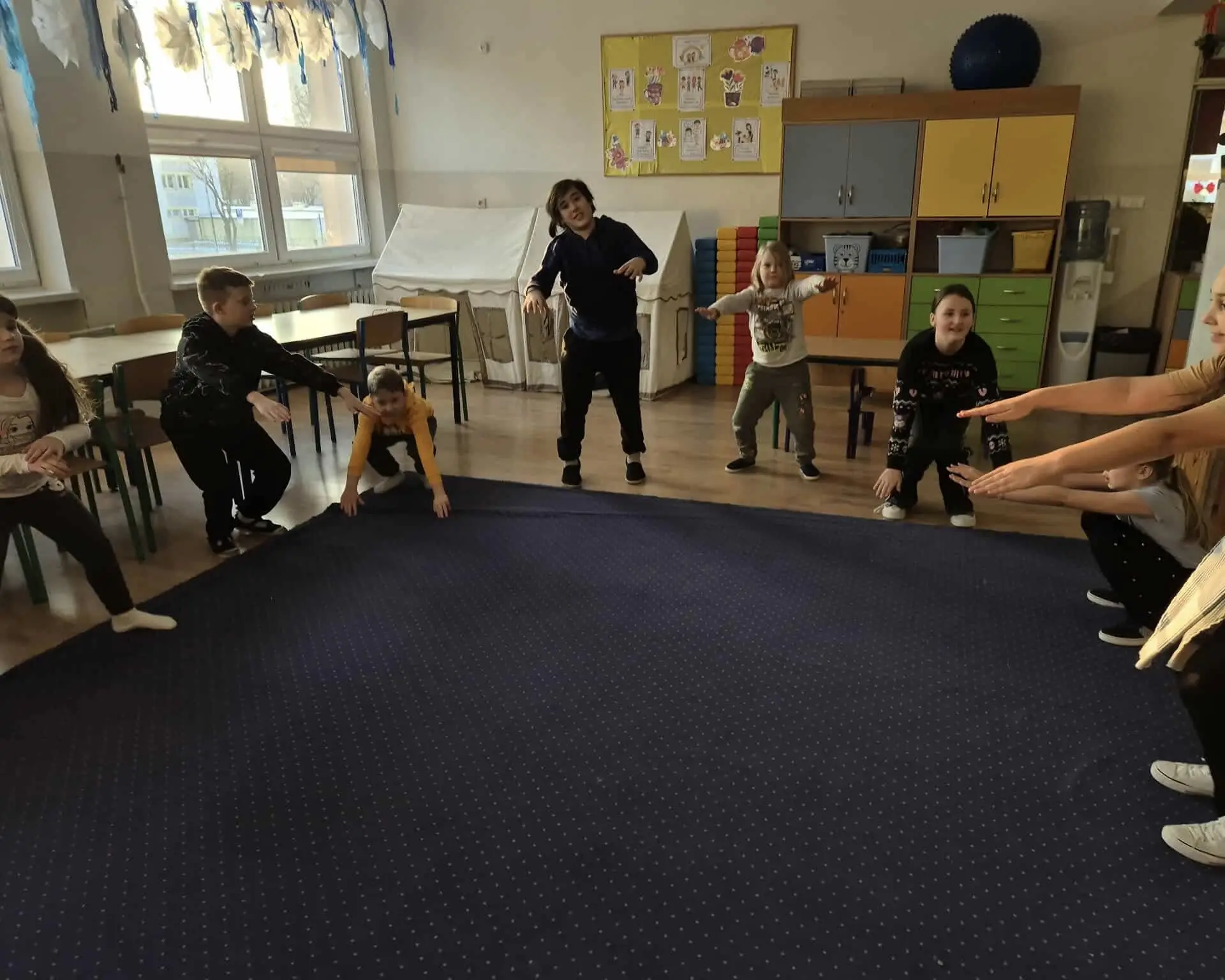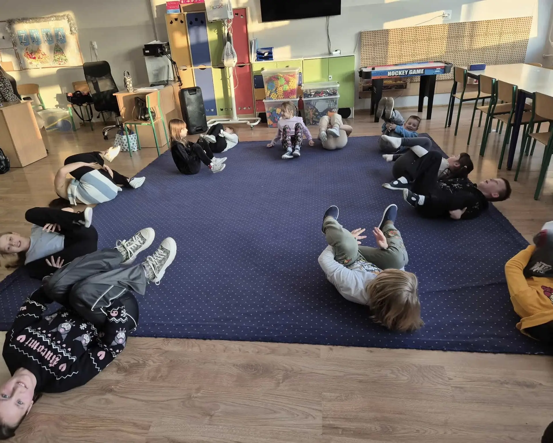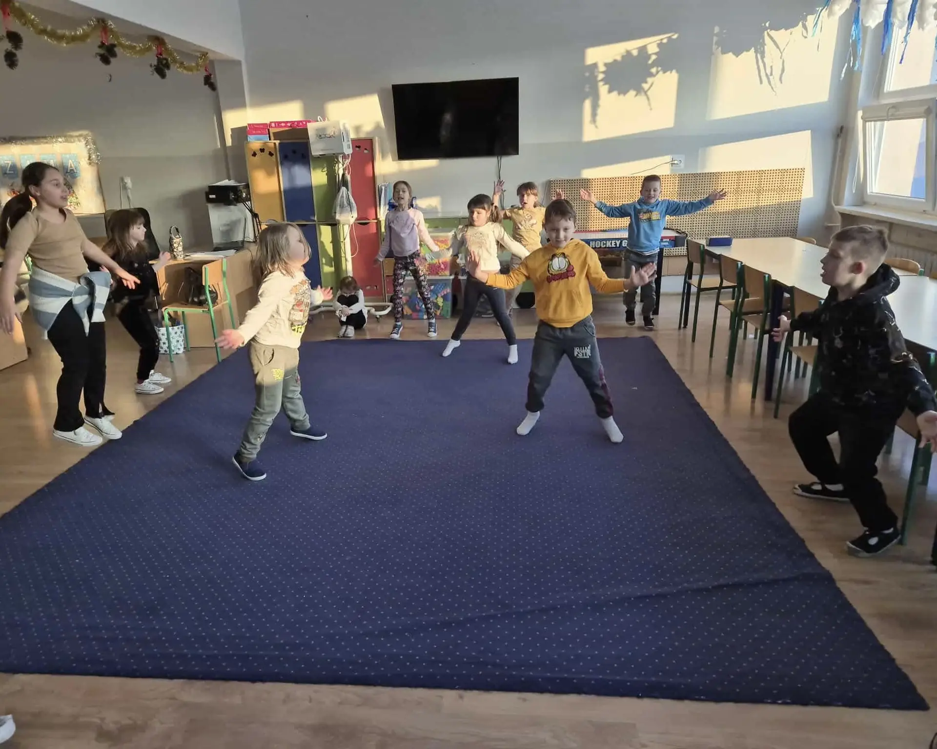 Czwartek upłynął w naszej świetlicy pod znakiem radości, ruchu i zimowej zabawy. Dzieci rozpoczęły dzień od ćwiczeń i wspólnej rozgrzewki, rozwijając sprawność, koordynację oraz ucząc się współpracy w przyjaznej atmosferze.